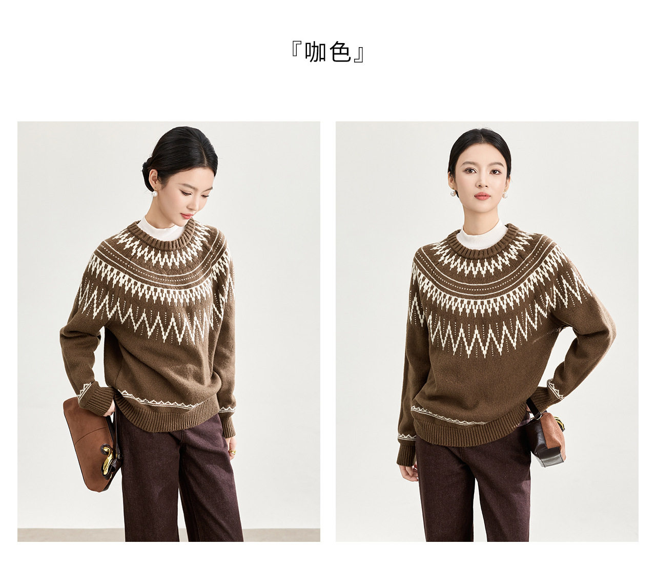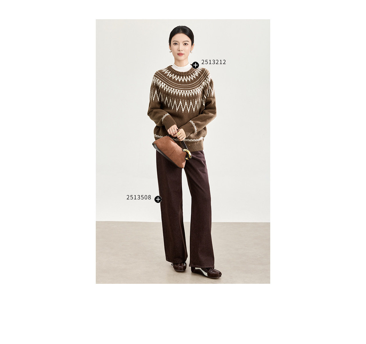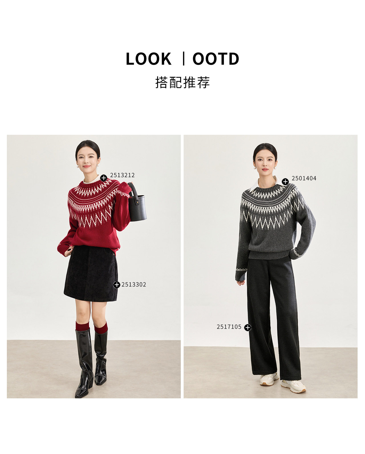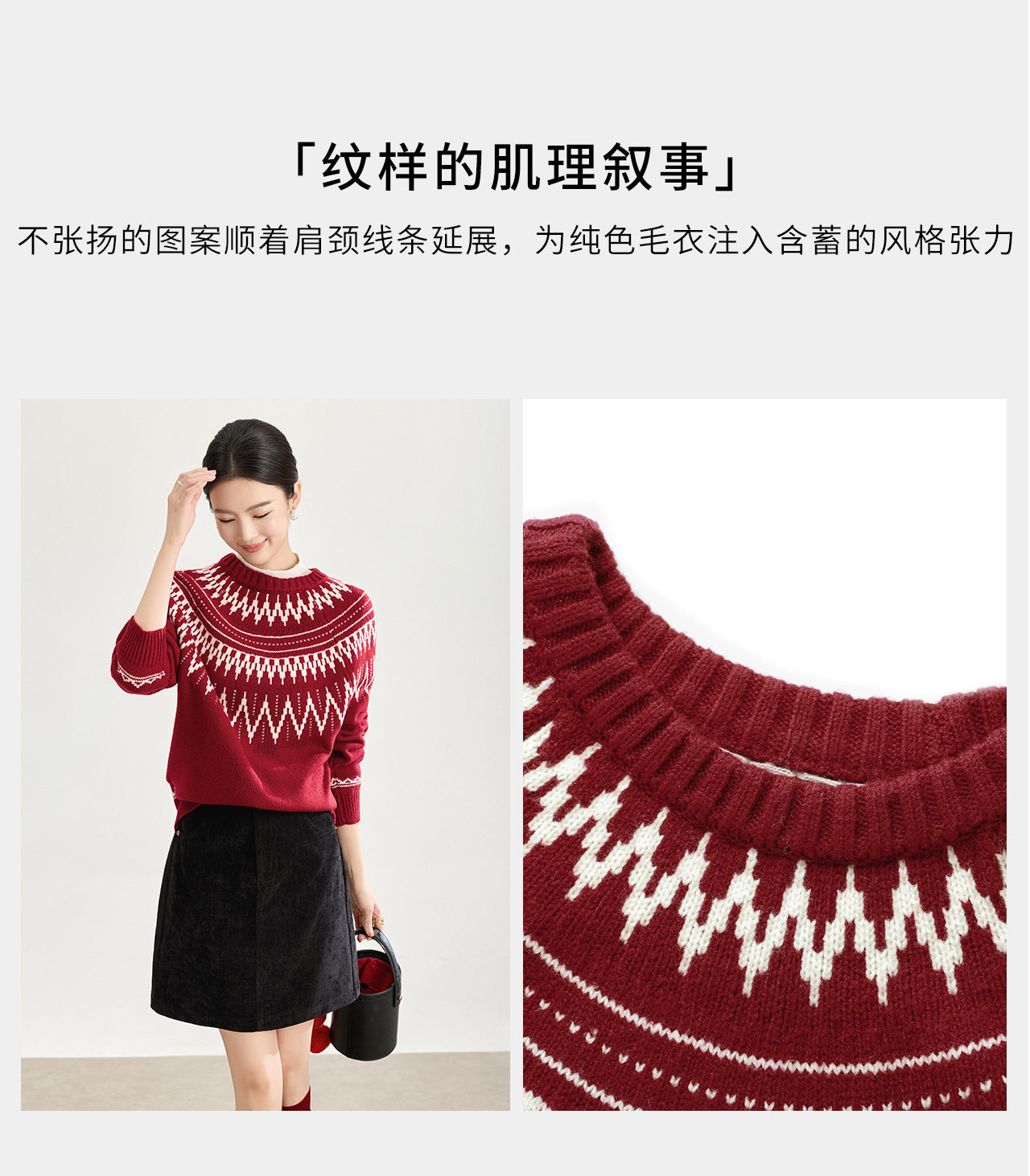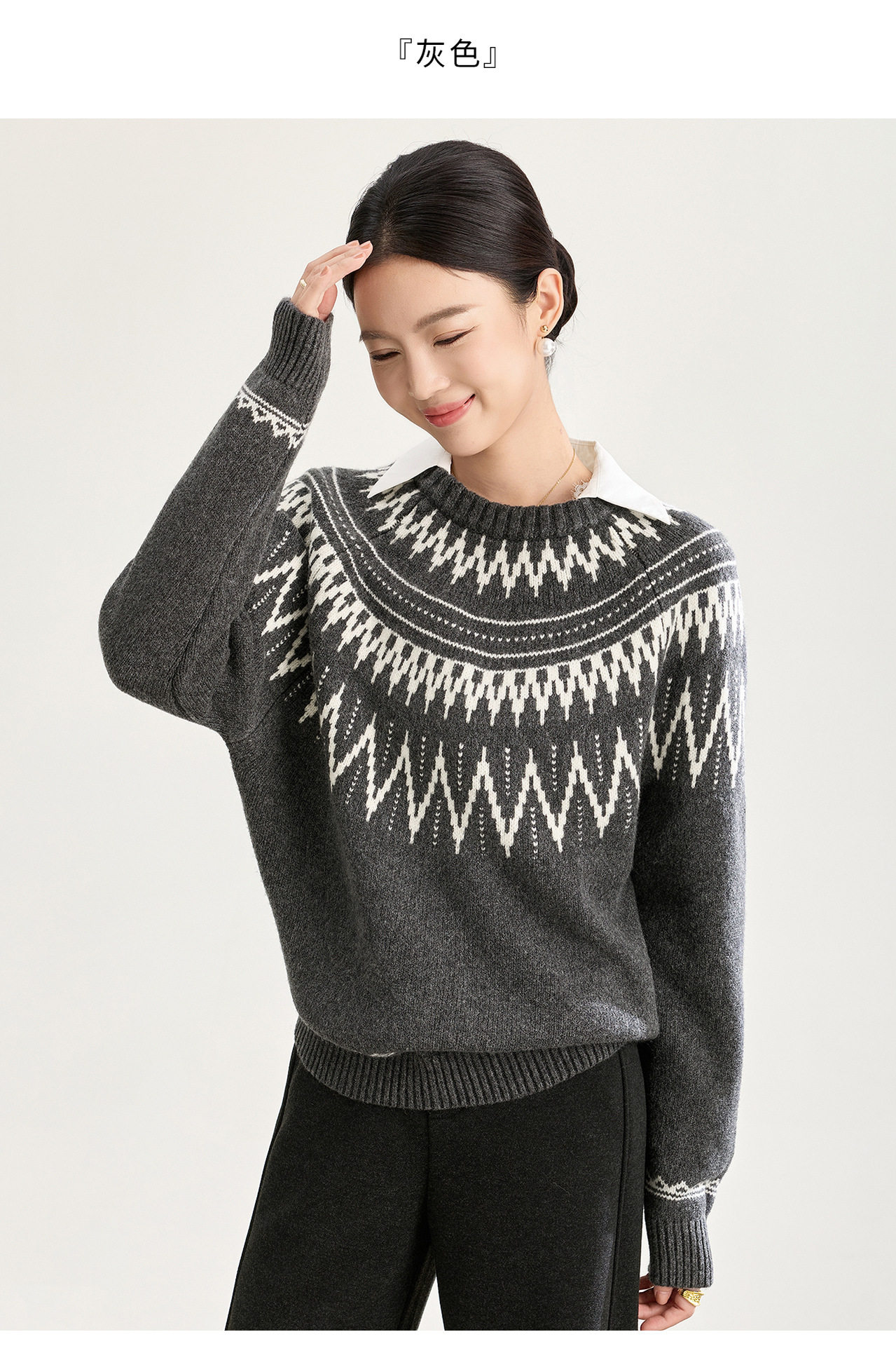「高货wl」全新升级【铂金会员220/天猫299/差价79】(95833)洛诗琳立体织花羊毛混纺上衣2025秋冬费尔岛提花针织毛衣