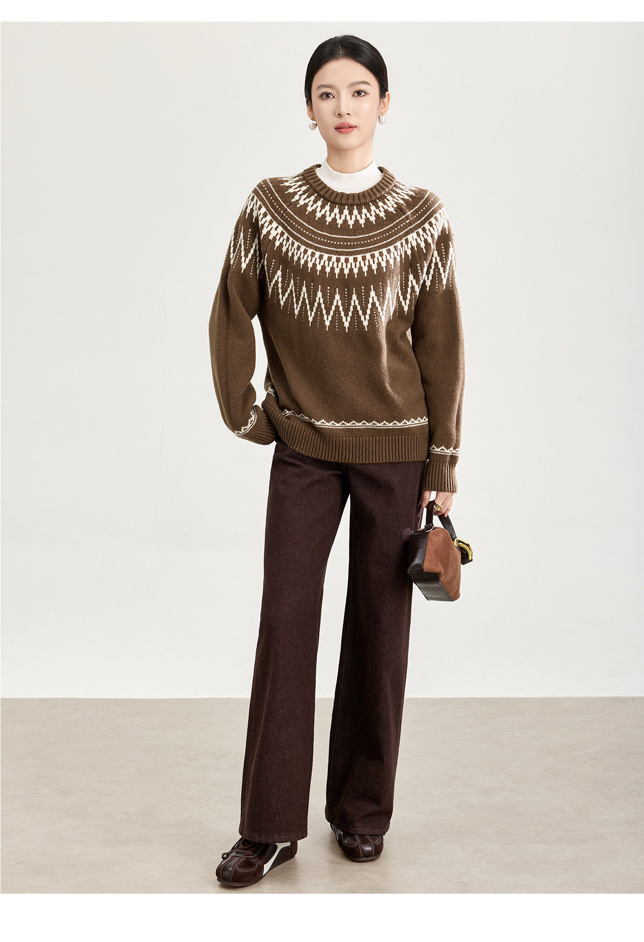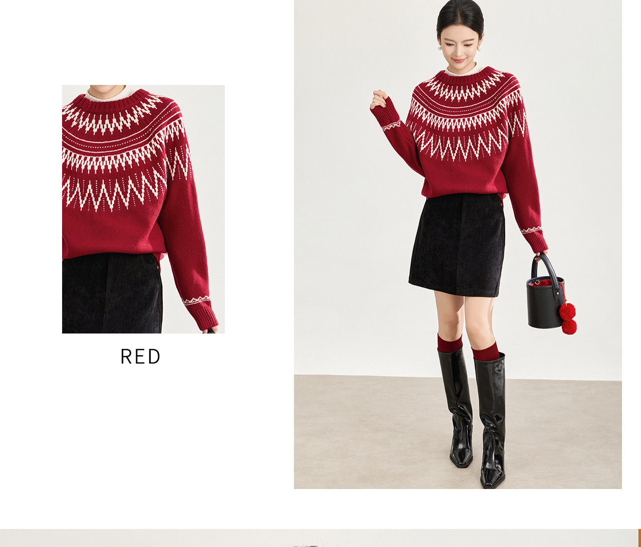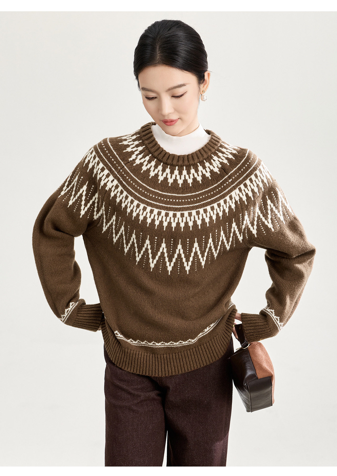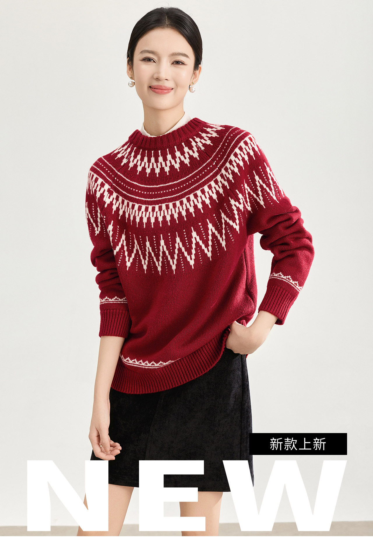 「高货wl」全新升级【铂金会员220/天猫299/差价79】(95833)洛诗琳立体织花羊毛混纺上衣2025秋冬费尔岛提花针织毛衣
