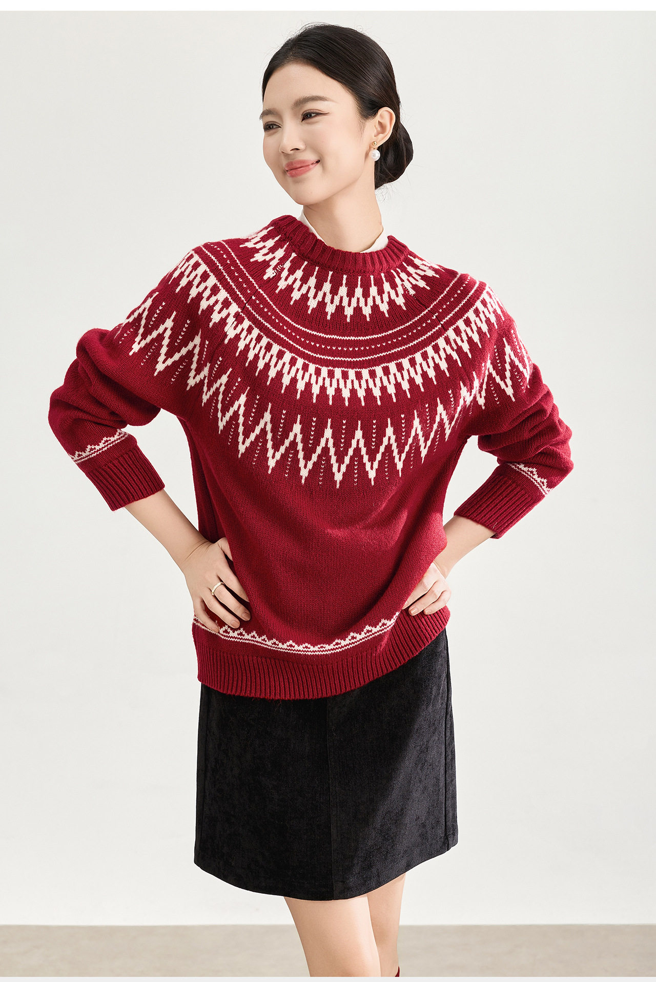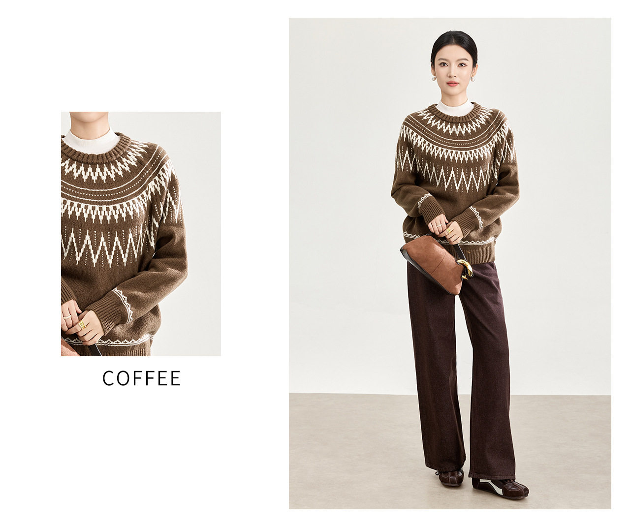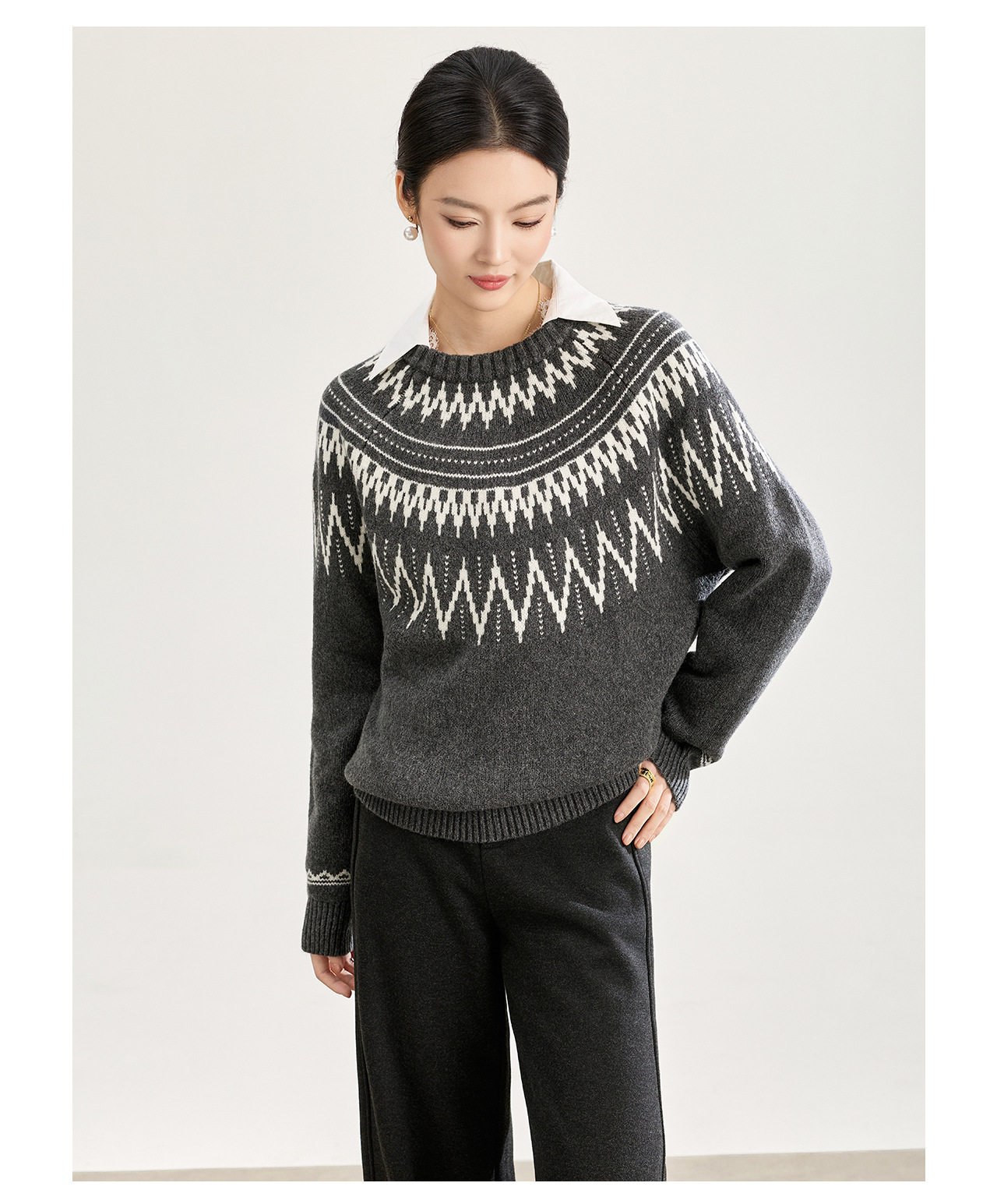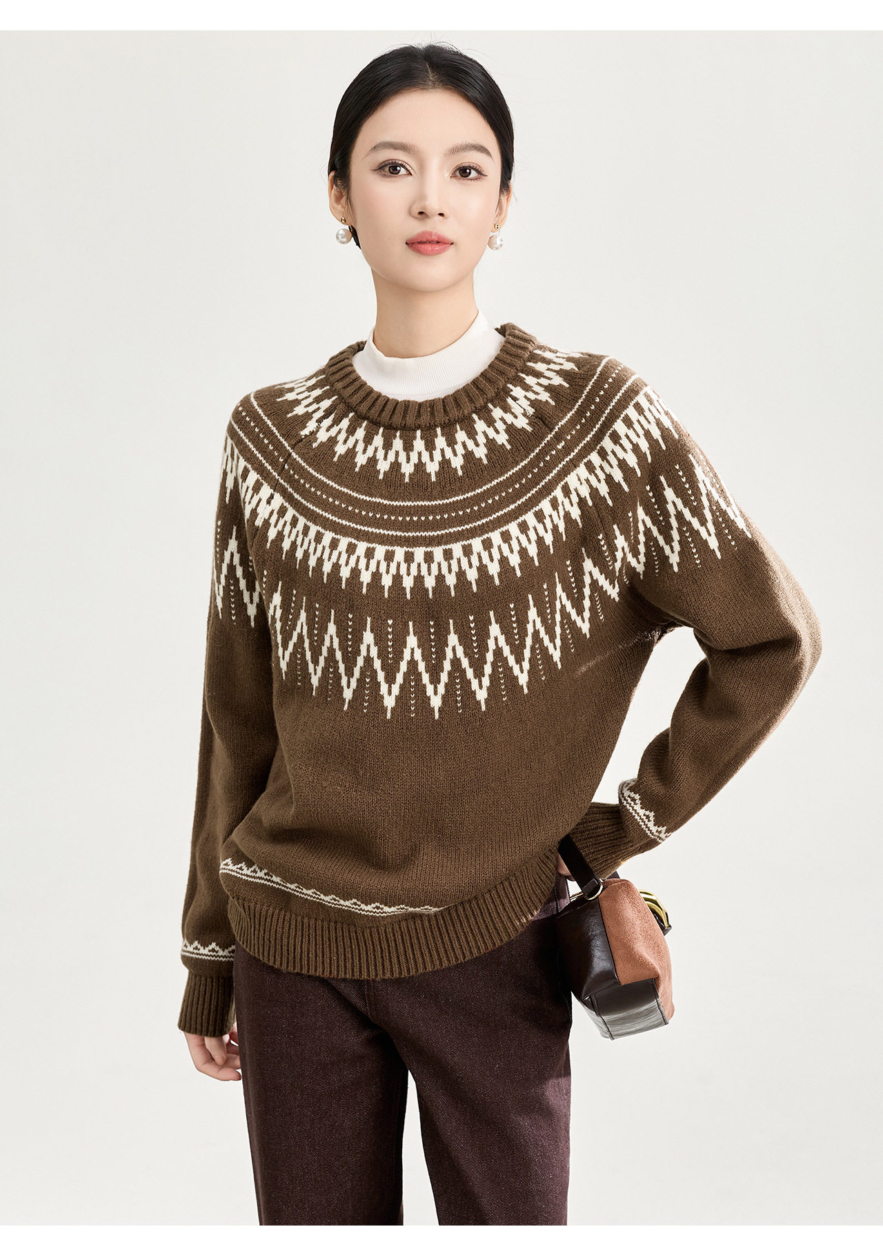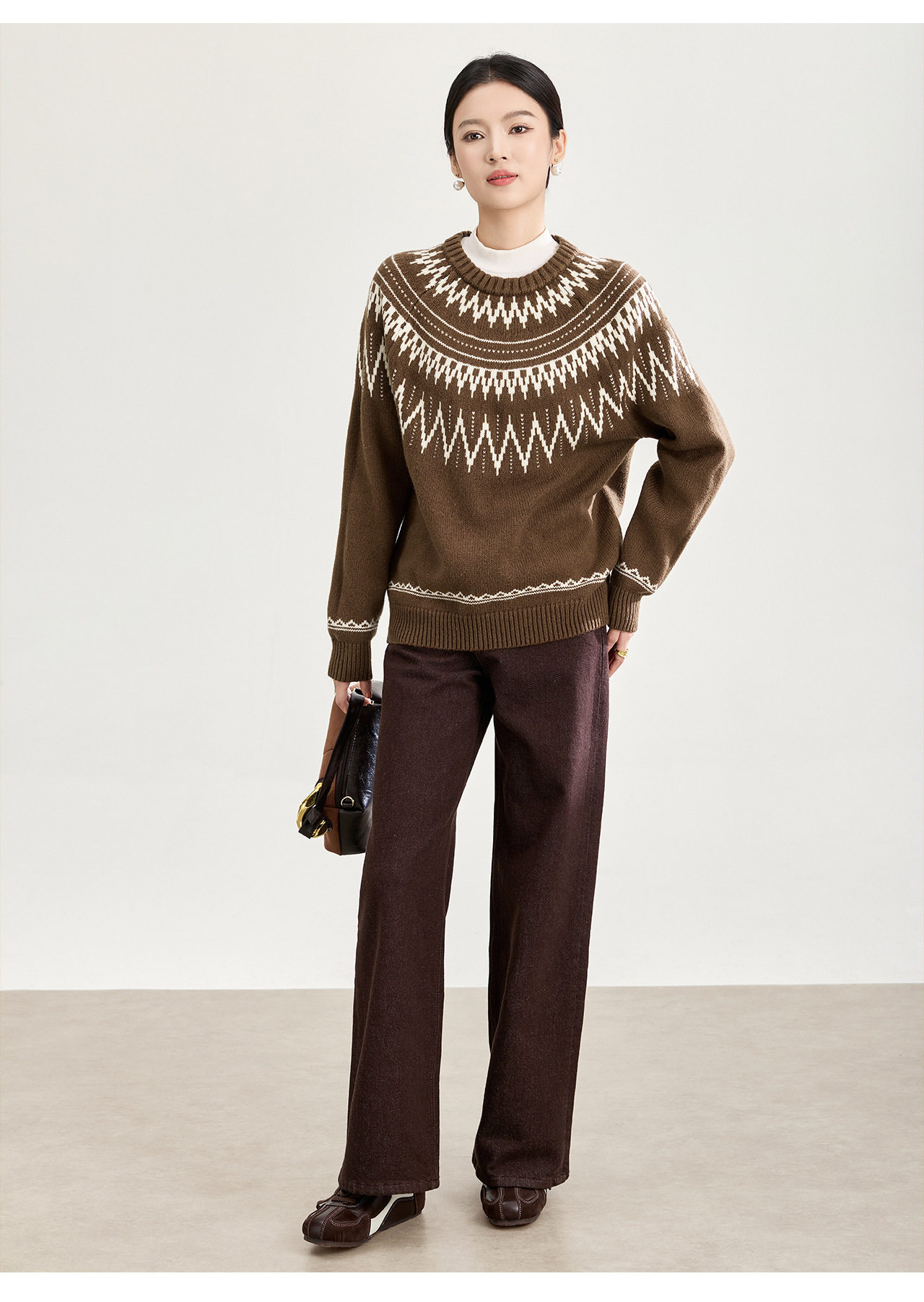 「高货wl」全新升级【铂金会员220/天猫299/差价79】(95833)洛诗琳立体织花羊毛混纺上衣2025秋冬费尔岛提花针织毛衣
