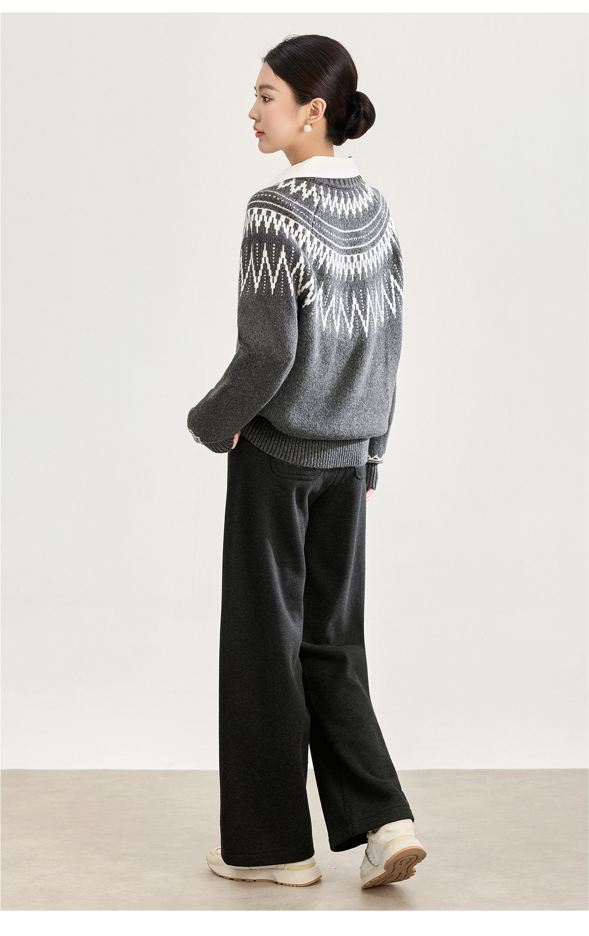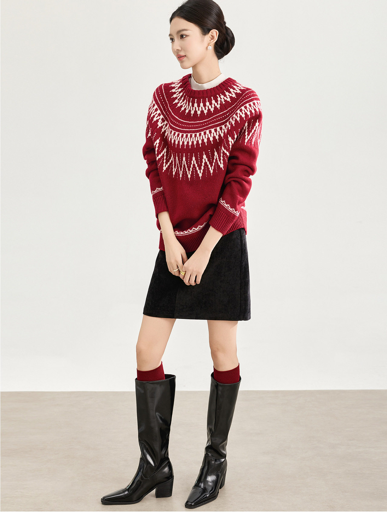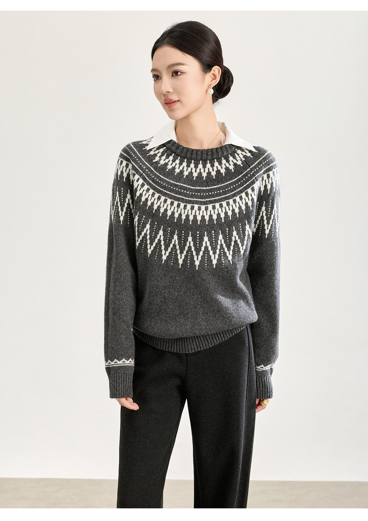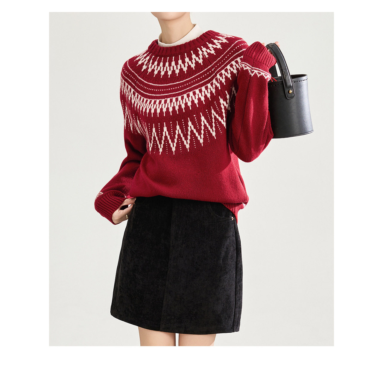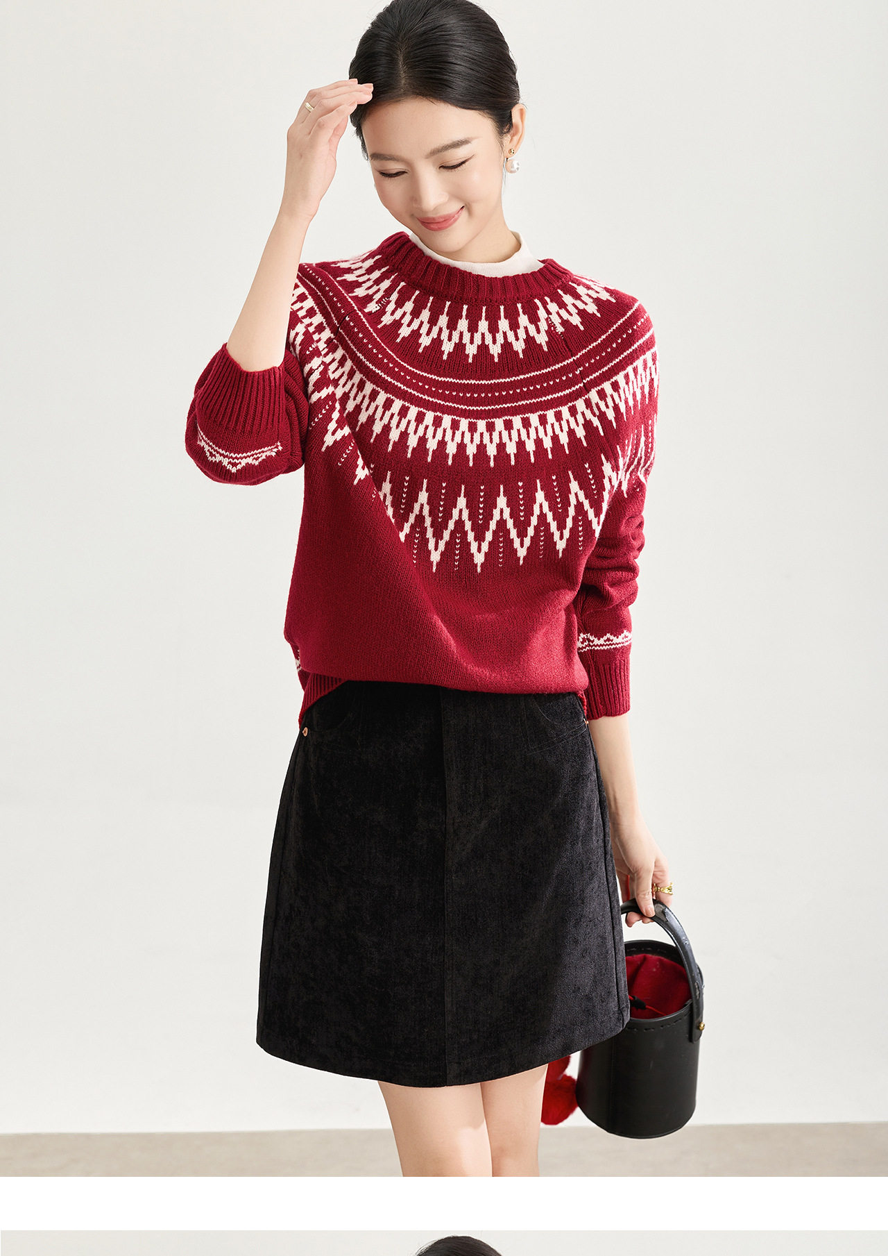 「高货wl」全新升级【铂金会员220/天猫299/差价79】(95833)洛诗琳立体织花羊毛混纺上衣2025秋冬费尔岛提花针织毛衣