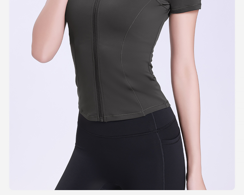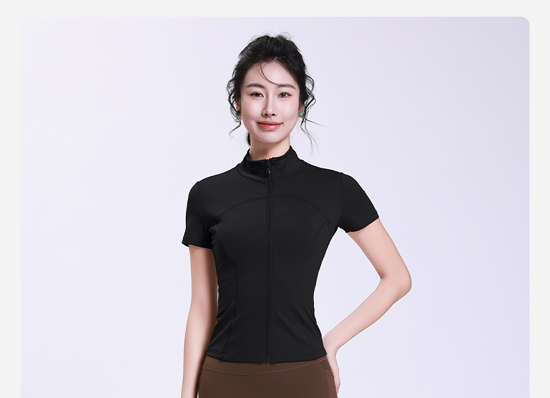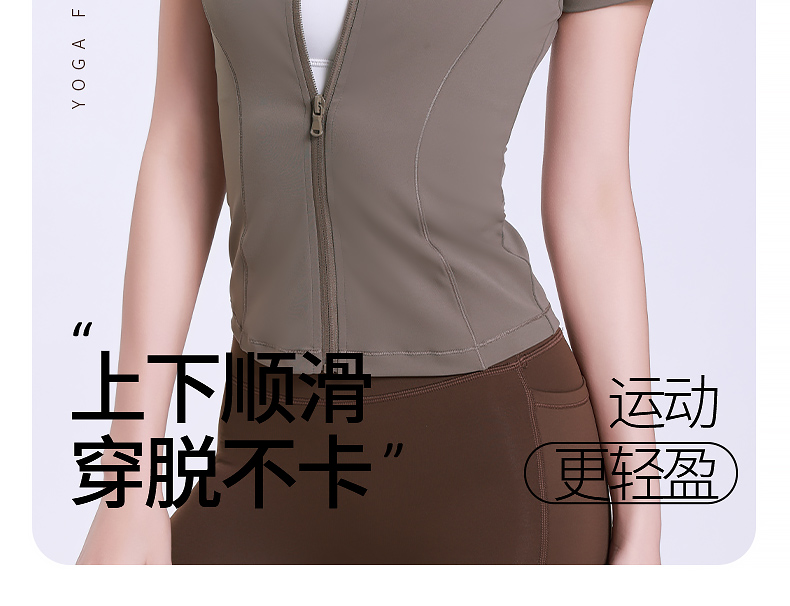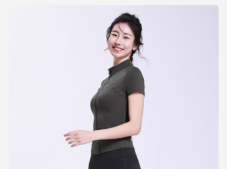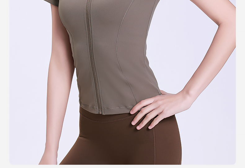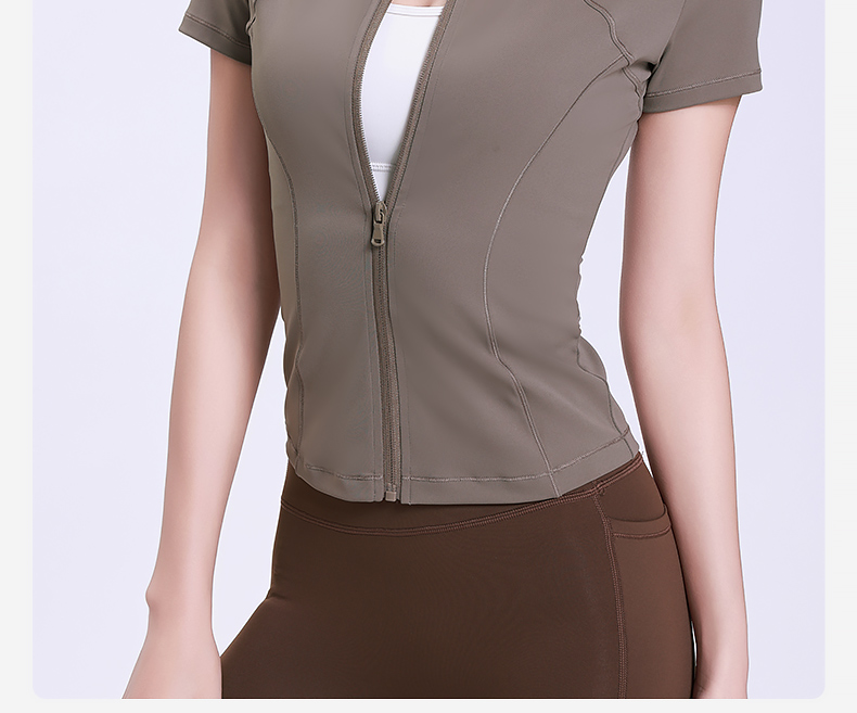 梵美人 F1266 瑜伽拉链短袖 莱卡云柔 无胸垫