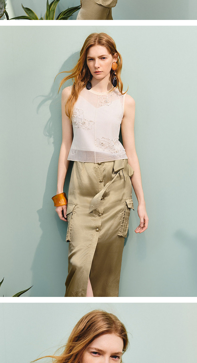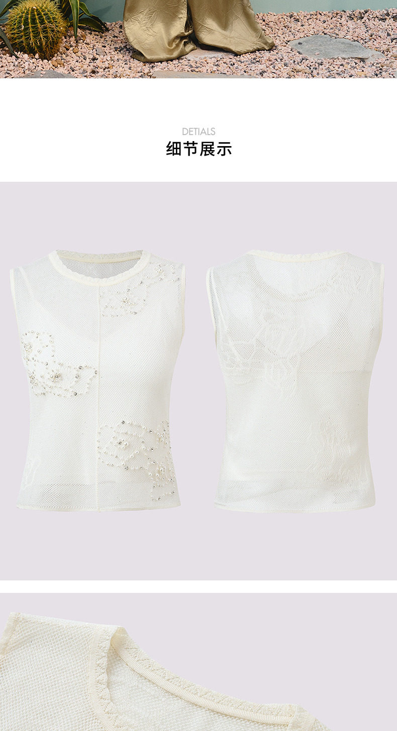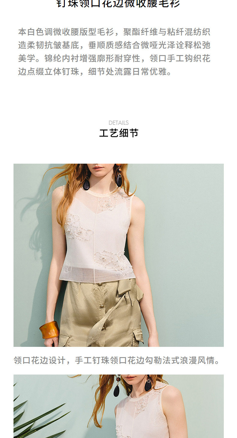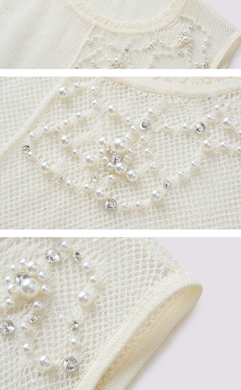 【商场同款】MAXRIENY法式优雅钉珠镂空毛衫女25夏修身显瘦上衣女(货号:MC86SW269)