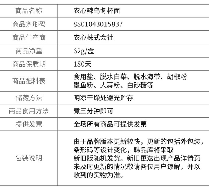 너구리컵라면农心辣浣熊拉面