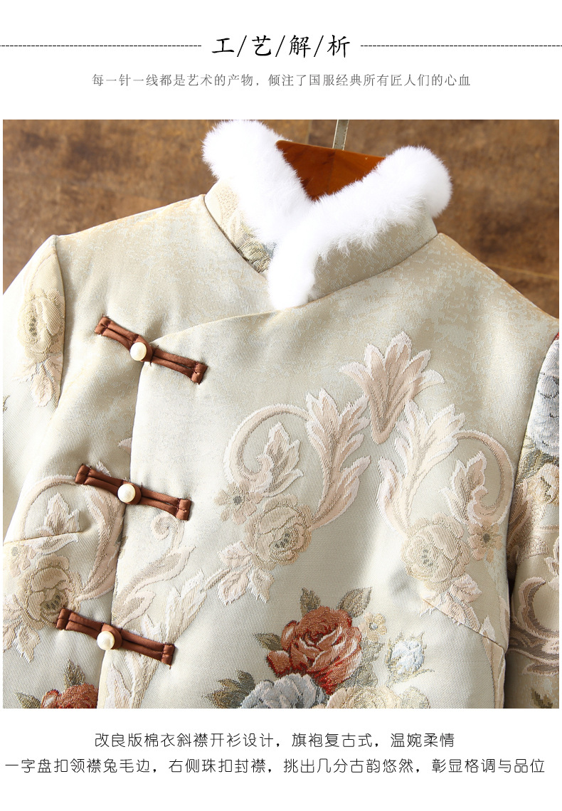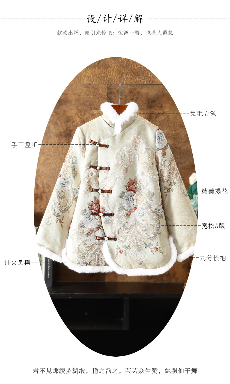 中式牡丹提花刺绣唐装上衣,夹棉小袄宽松旗袍外套ZSM- 221110