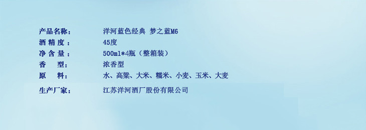 【推荐】洋河蓝色经典 梦之蓝M6 45度 整箱装白酒 500ml*4瓶(内含2个礼袋) 口感绵柔浓香型