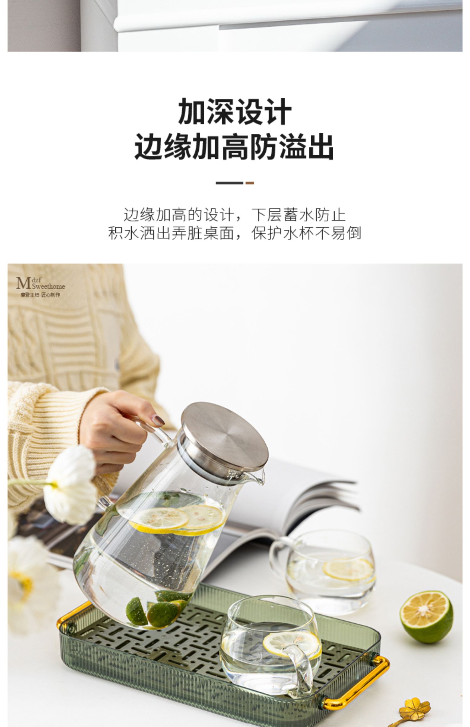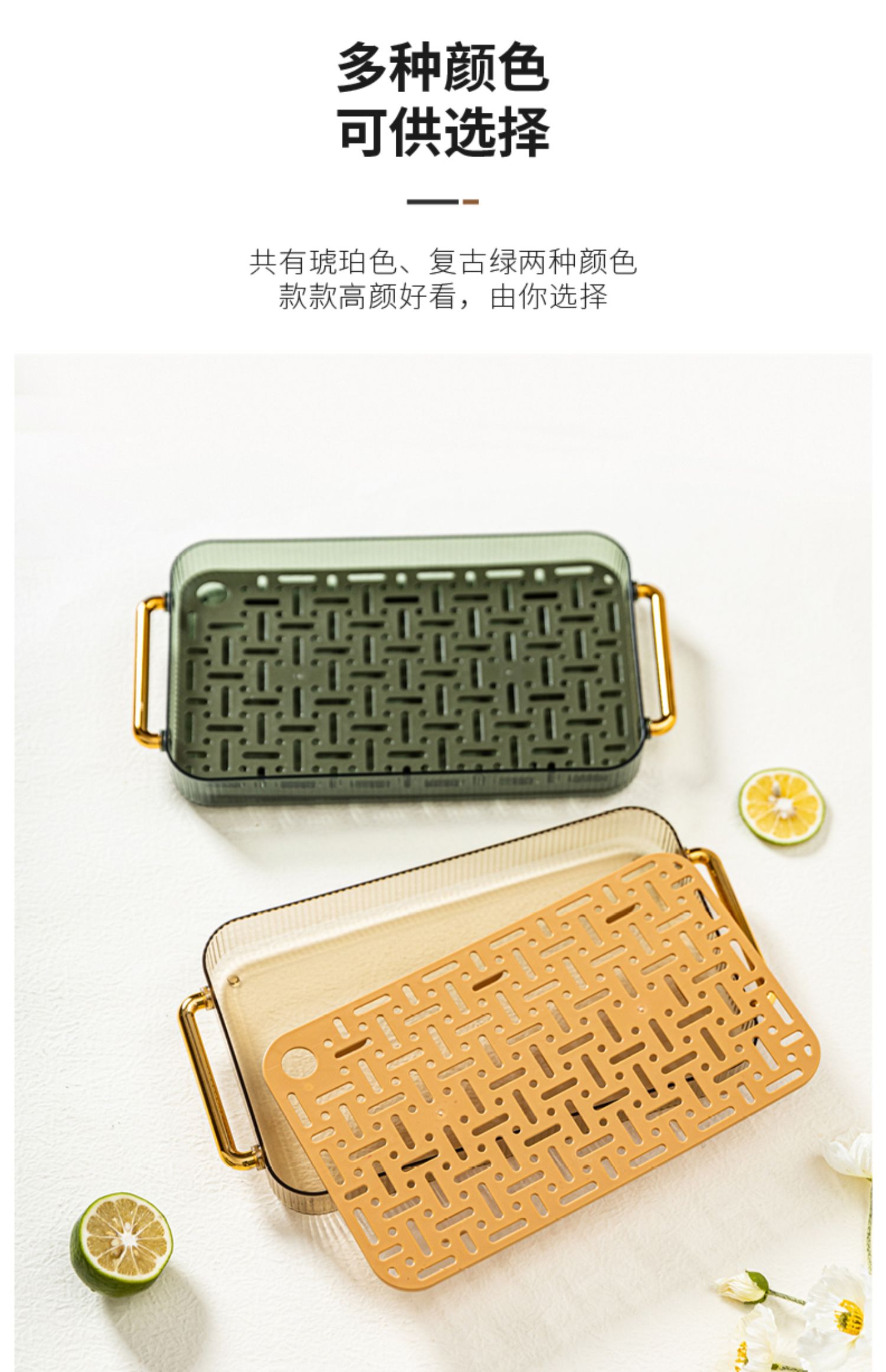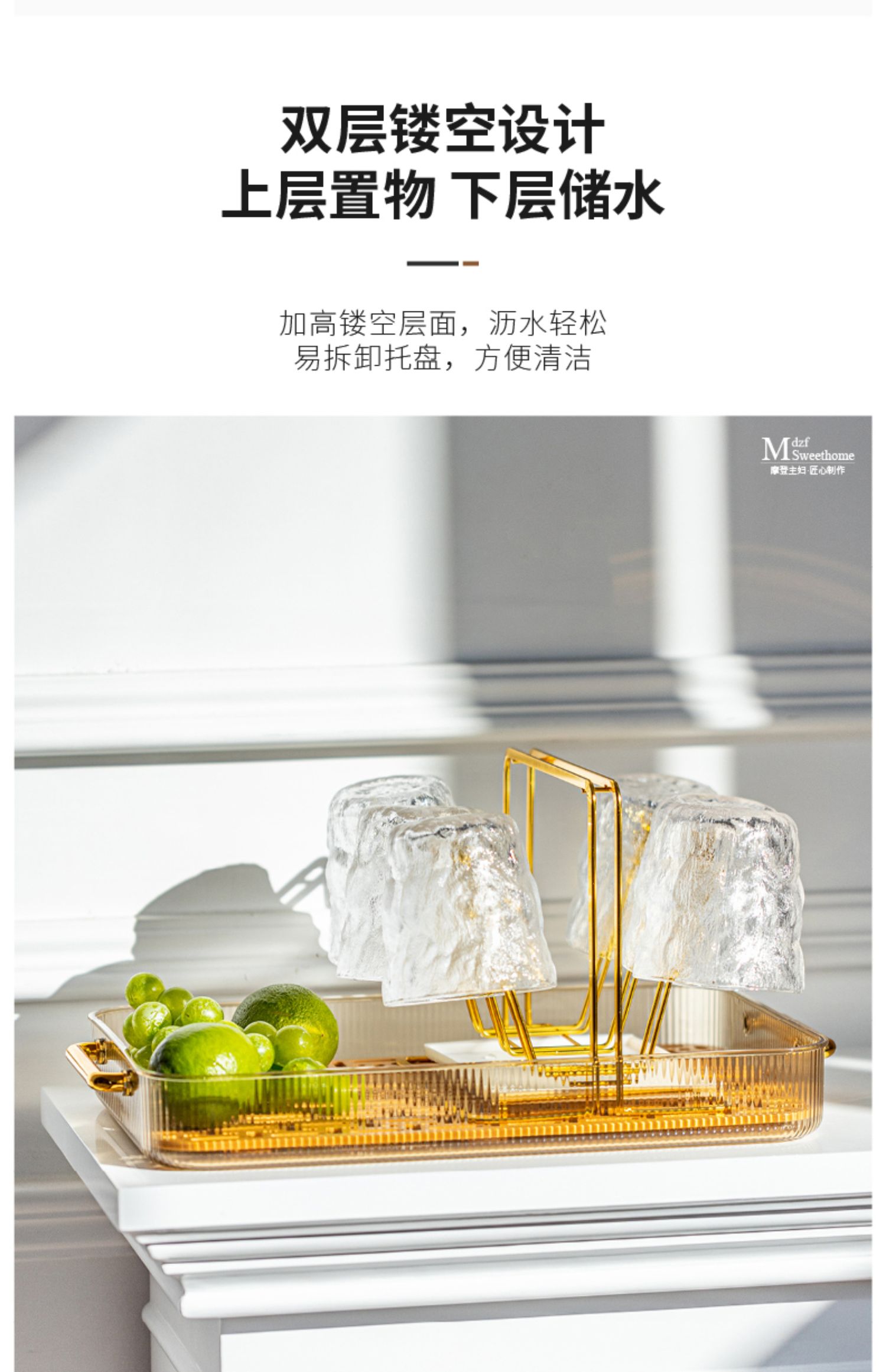 摩登主妇轻奢现代茶盘家用长方形塑料沥水托盘茶杯茶具双层储水盘