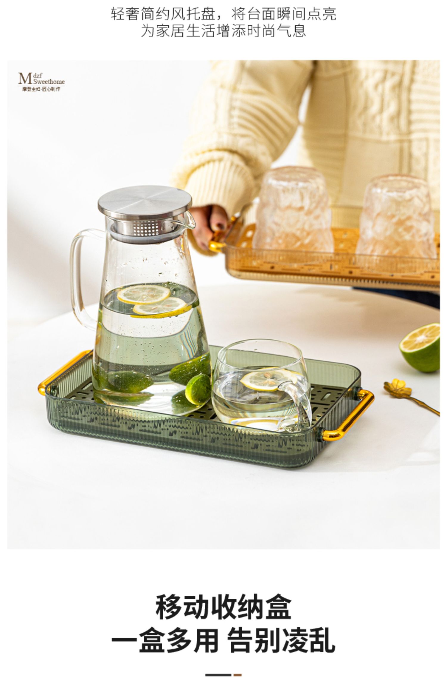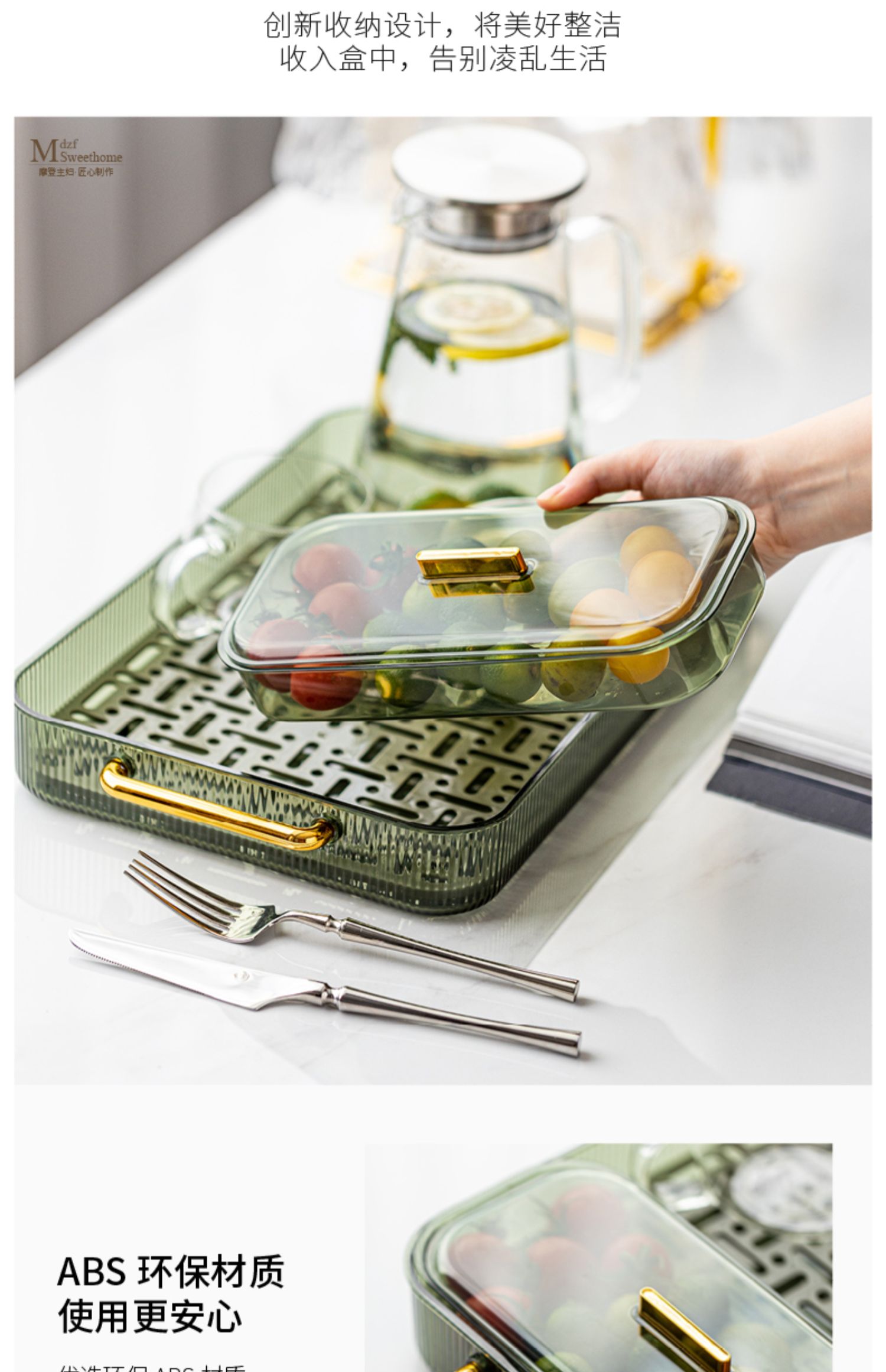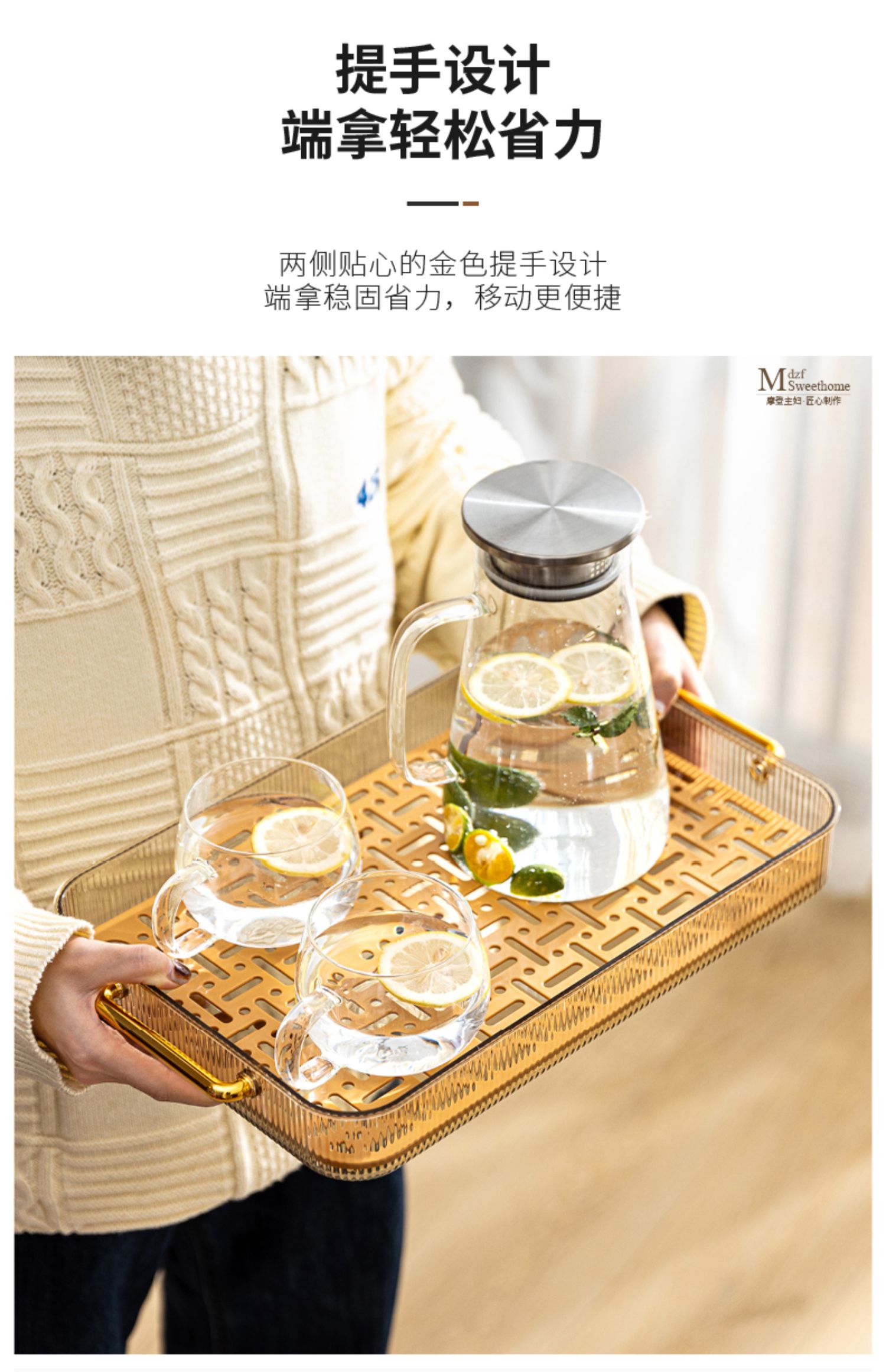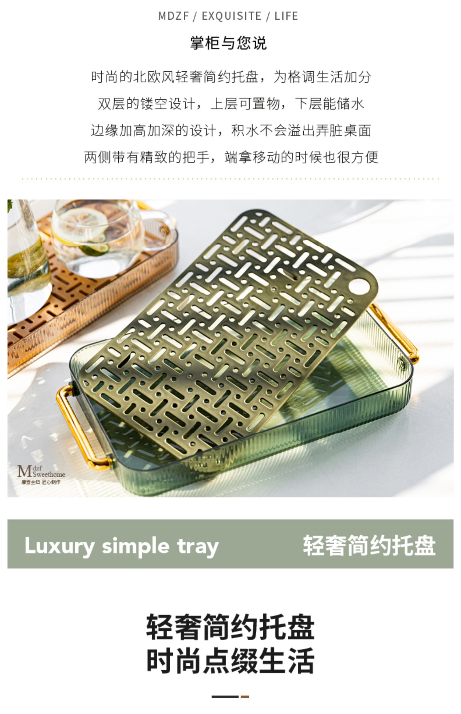 摩登主妇轻奢现代茶盘家用长方形塑料沥水托盘茶杯茶具双层储水盘