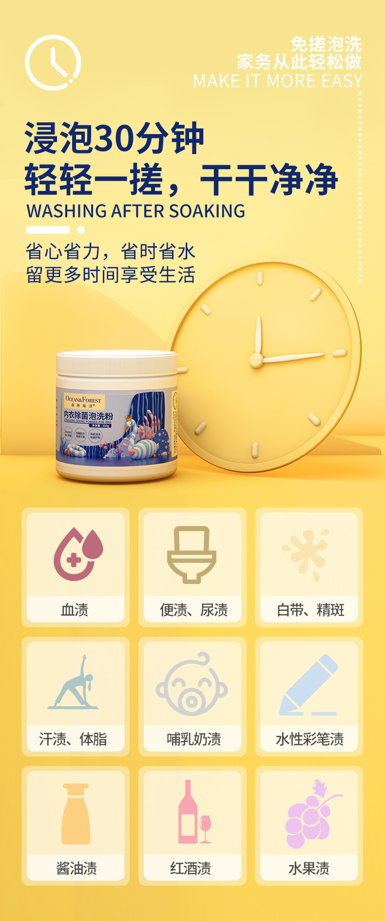 森林海洋 贴身衣物泡洗粉内衣裤专用有氧洗衣粉衣物除菌去污渍