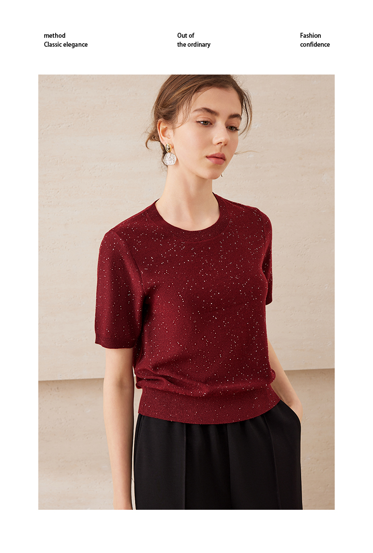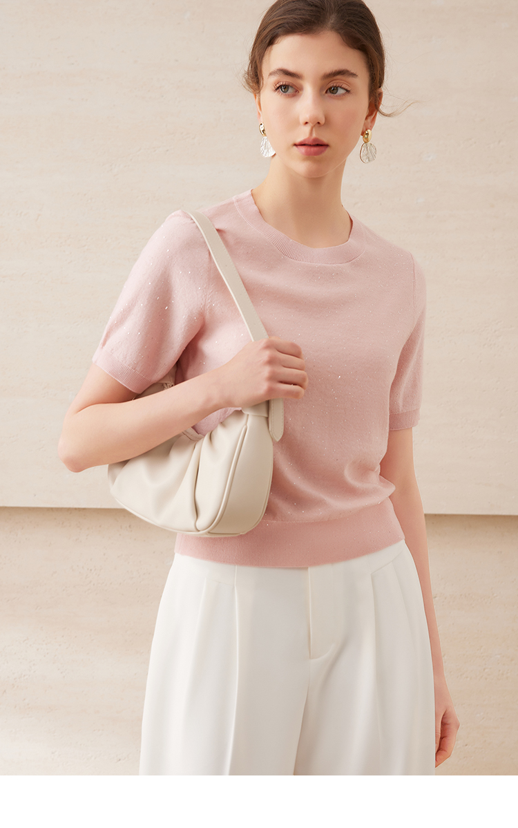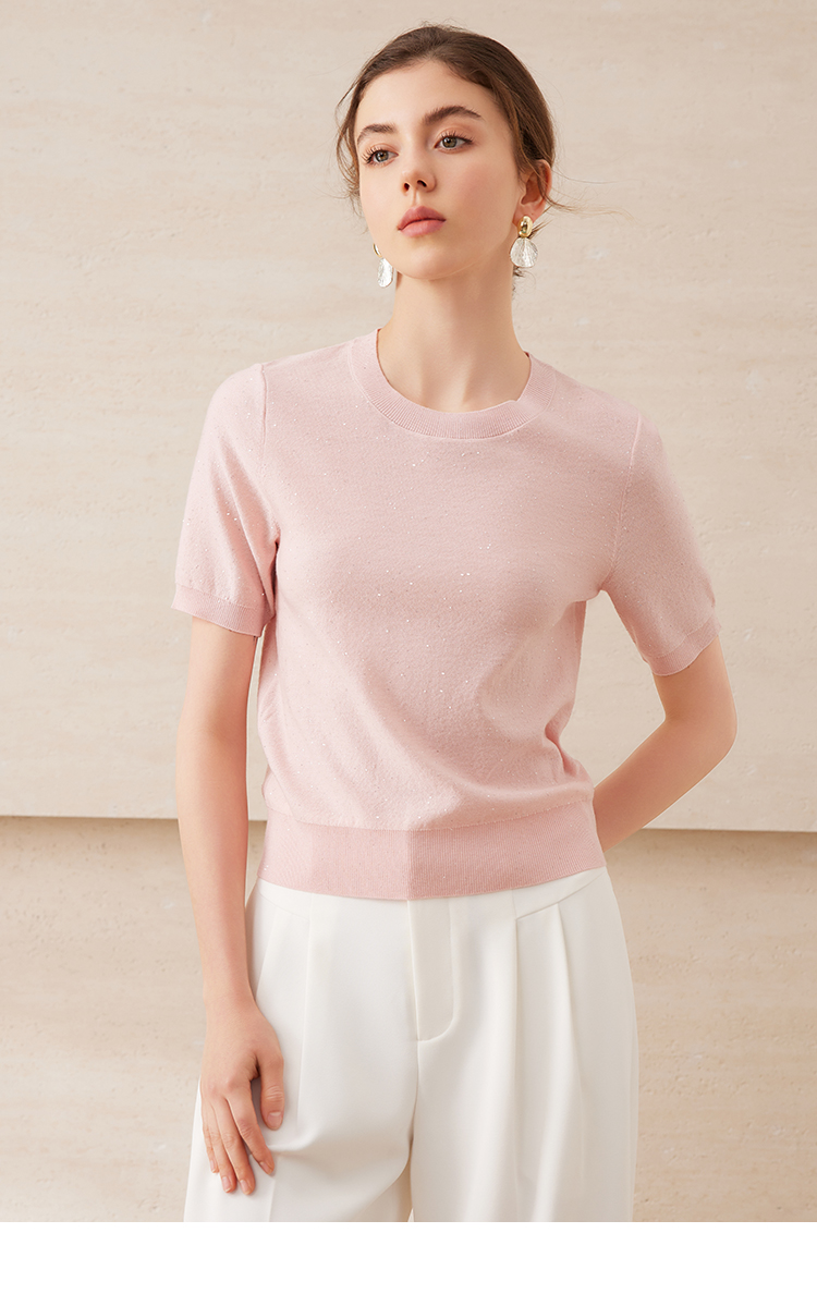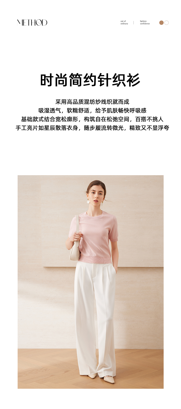 【金葱混纺短袖针织衫】EITIE爱特爱舒适柔软百搭显瘦2025夏新款B2501602