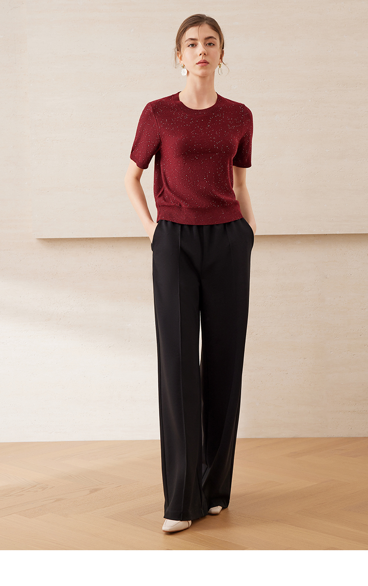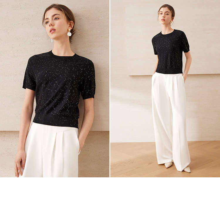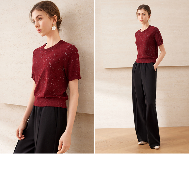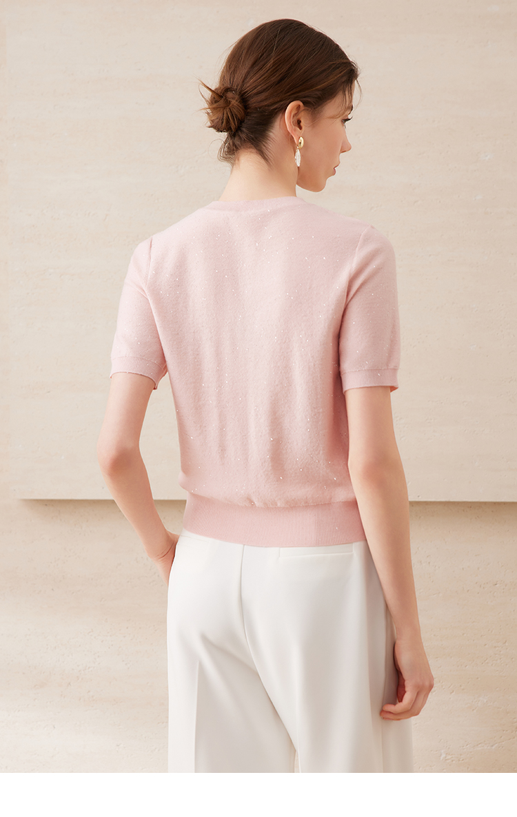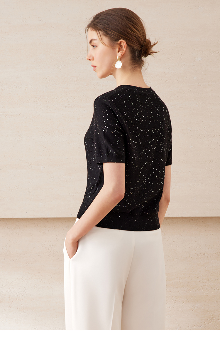 【金葱混纺短袖针织衫】EITIE爱特爱舒适柔软百搭显瘦2025夏新款B2501602