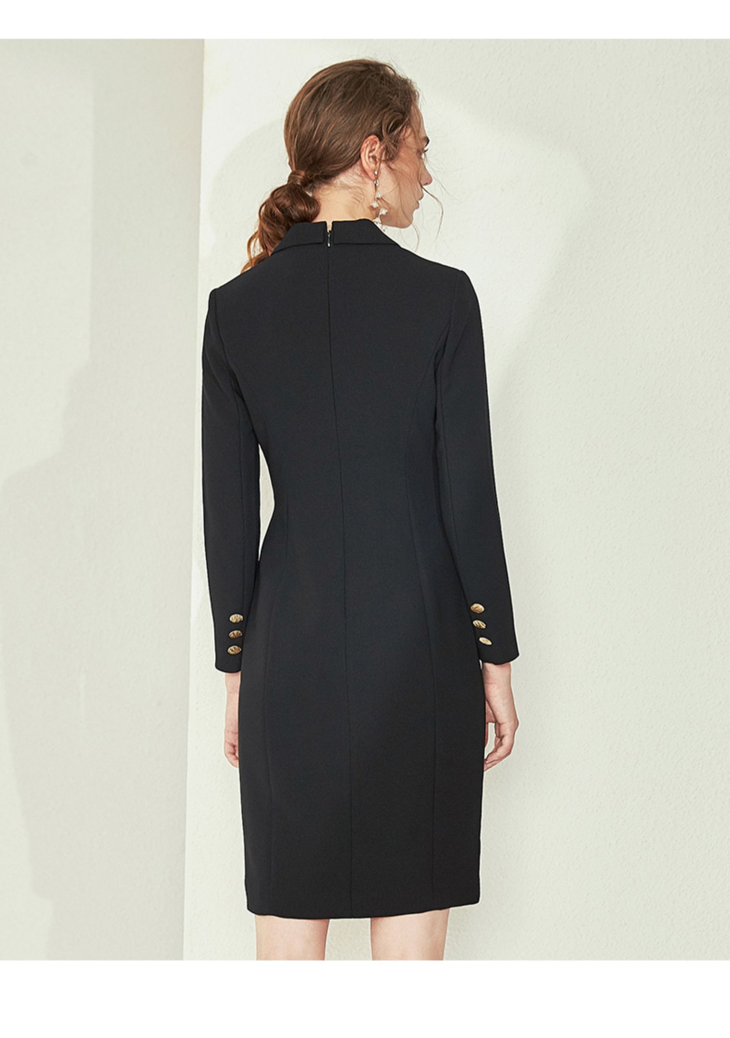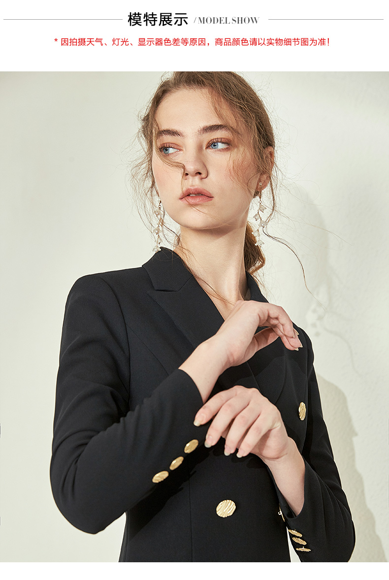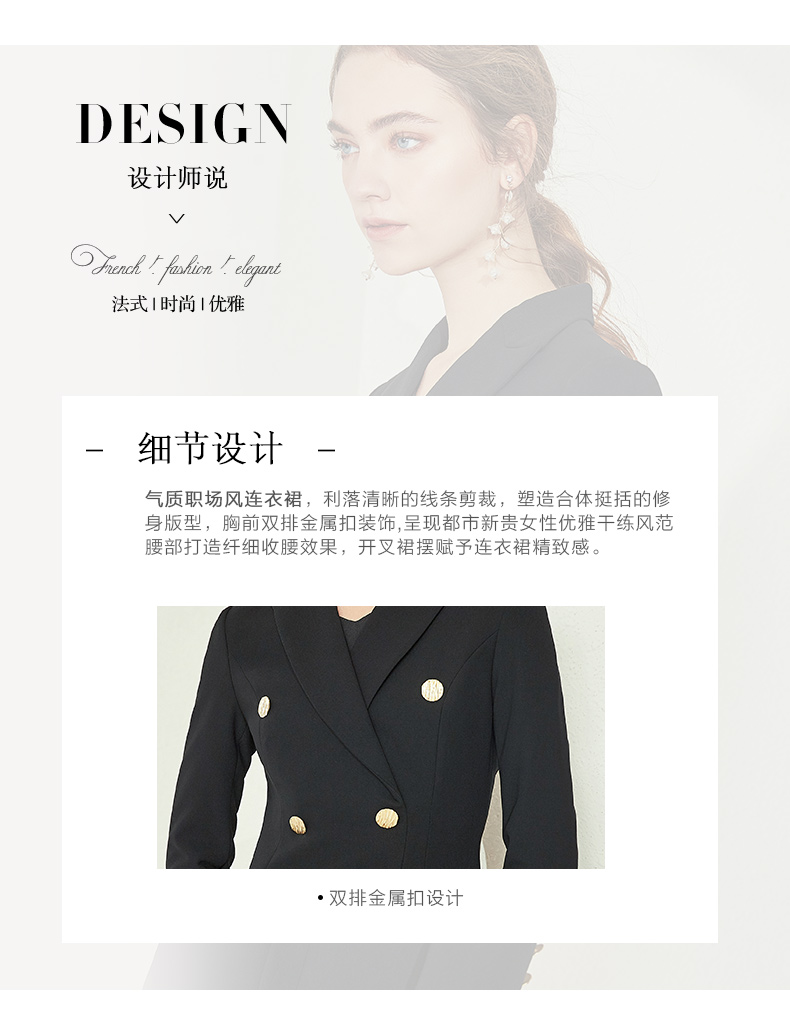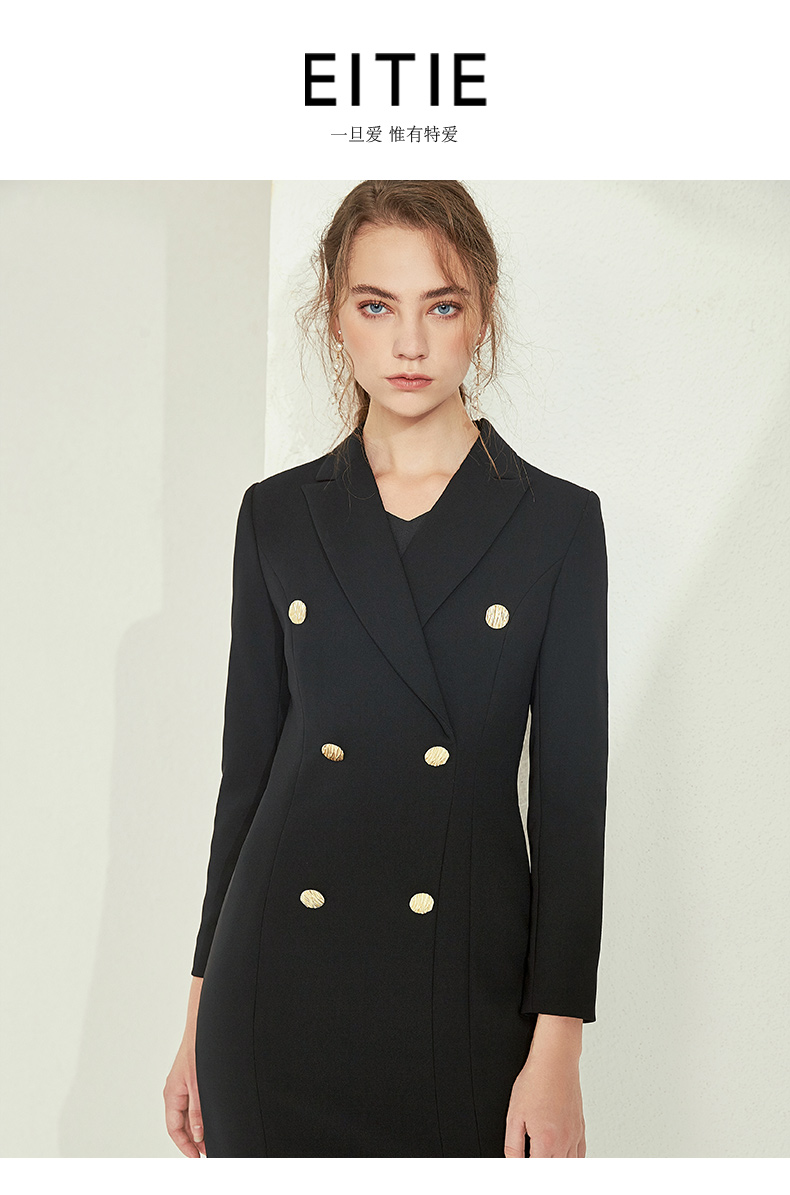 EITIE爱特爱女装春款气质时尚上班族通勤职场OL风开叉连衣裙5807558