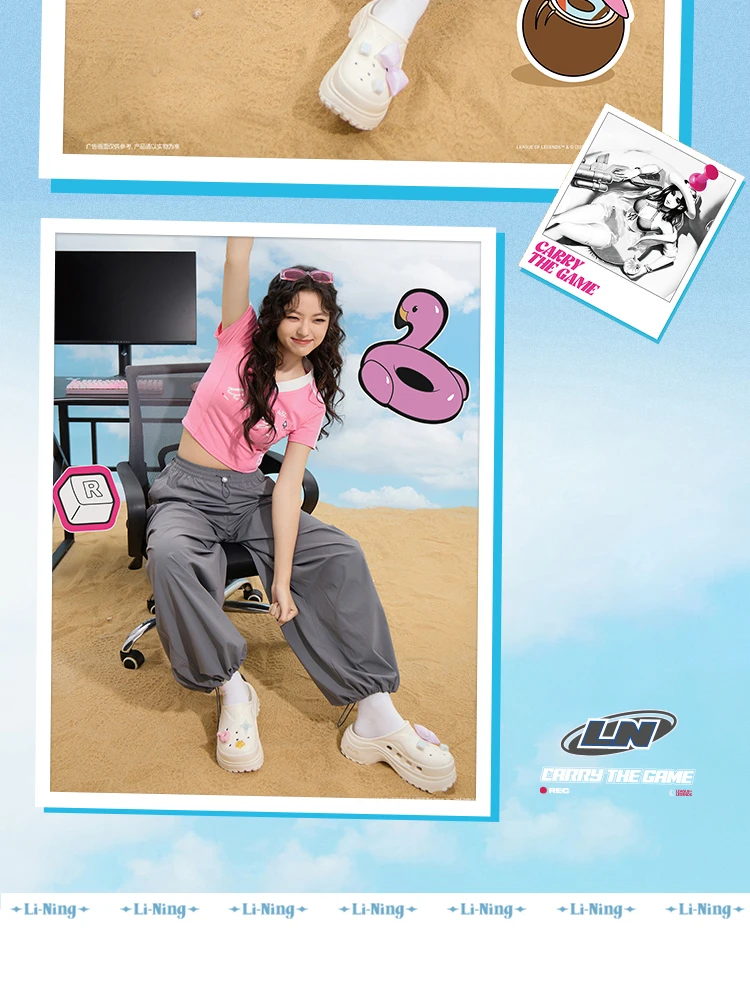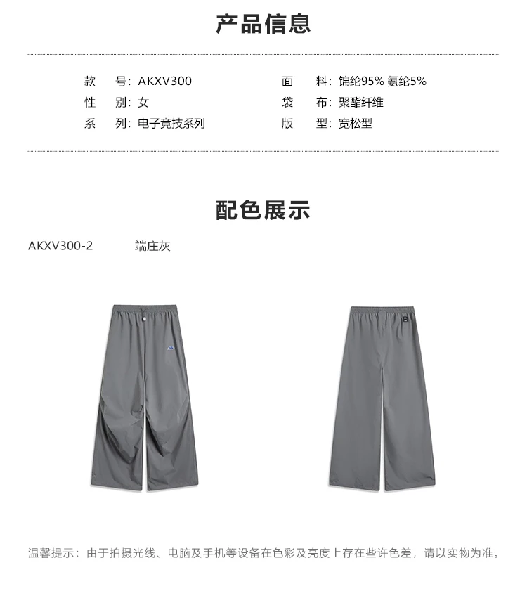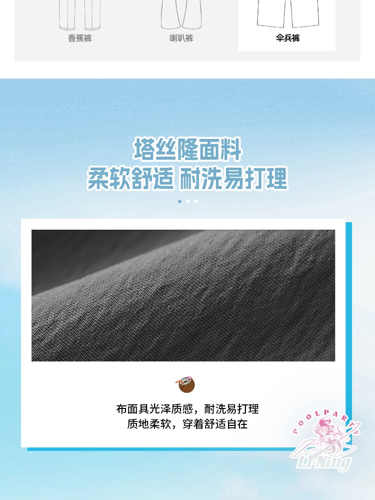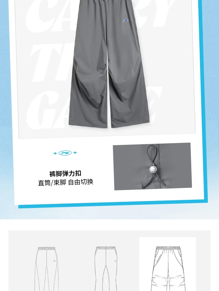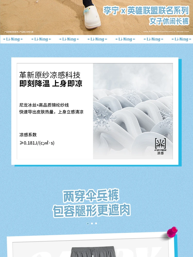 李宁 x 英雄联盟联名系列女子直筒冰感舒适吸湿排汗宽松伞兵裤休闲长裤AKXV300