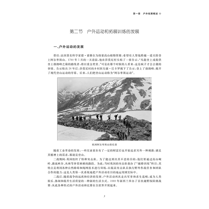 本书主要是从户外拓展专业课程的延伸。随着全球参与户外运动的人日益增多,学生群体也占有非常大的份额,众多年轻的户外爱好者,喜欢徒步、登山、野外露营、攀岩、攀冰、攀树等。户外的知识储备必不可少,学生们通常是一腔热情的参与到户外运动当中,但殊不知户外运动是在充分享受大自然的同时也会带来安全的隐患。本书主要从几个方面分别论述了,户外运动理论知识、运动方式和运动注意事项、安全及其救援等。是一本学生素质拓展的教材,内容包含了体育教育学习的创新式学习理论—体验式学习。通过国内外体验式学习的研究结合多年户外拓展教学经验,将国外先进的经验,亚洲体验教学经历,同时融入大学课堂中新教学方式的探讨,颠覆了传统的体育教与学的观念。本书既有原创理论、亲身的案例、严谨的考证,又有翔实的图文并茂展现。是一本适合师生同时使用的实用性教材。