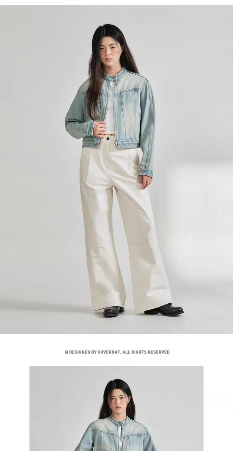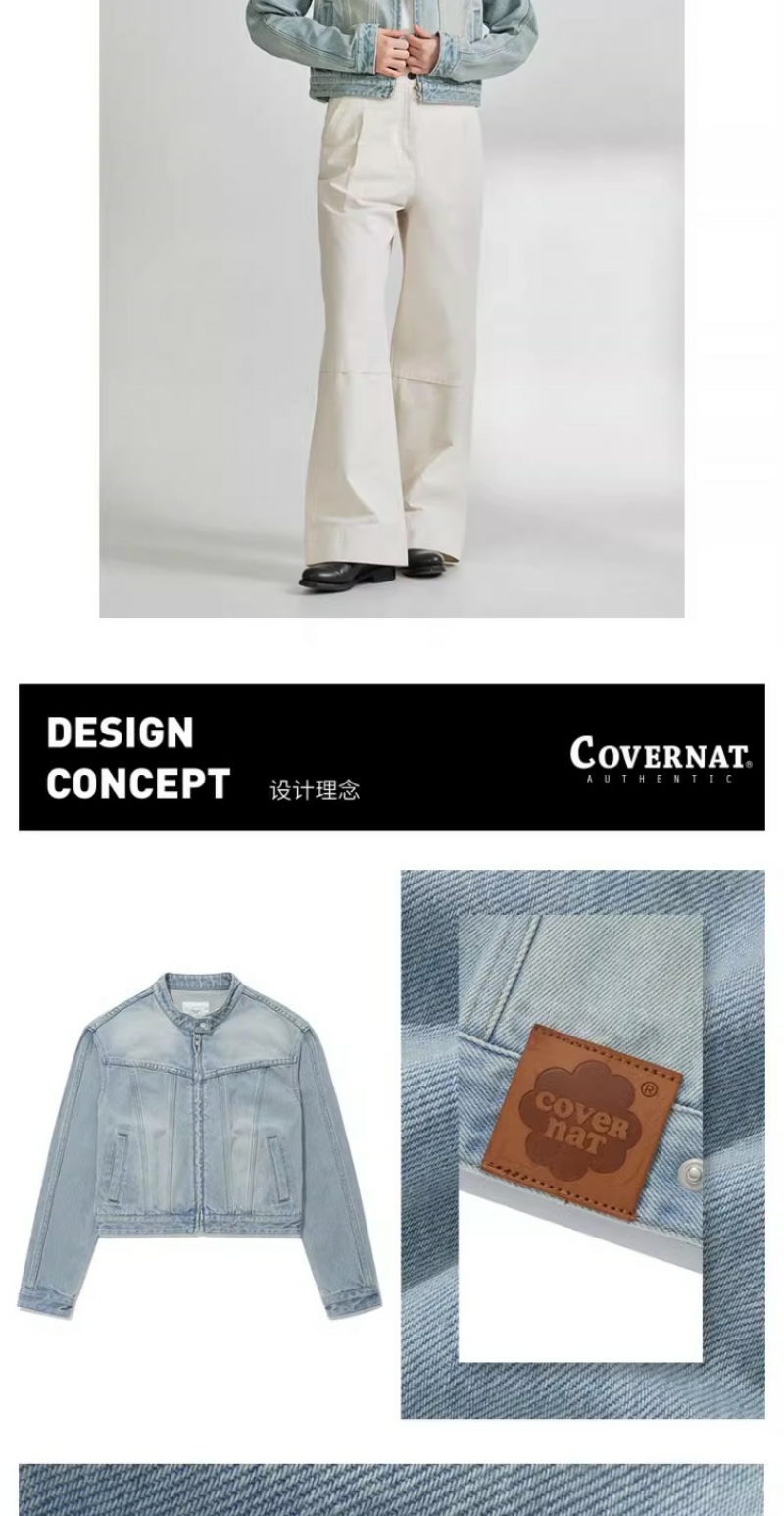 covernat2024春新款女休闲运动单宁短款立领牛仔外套CO2401JK73
