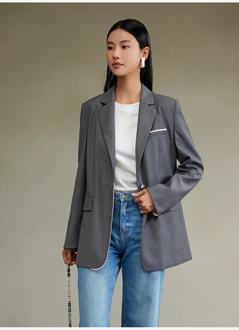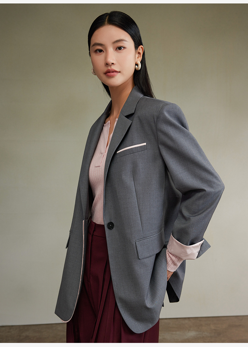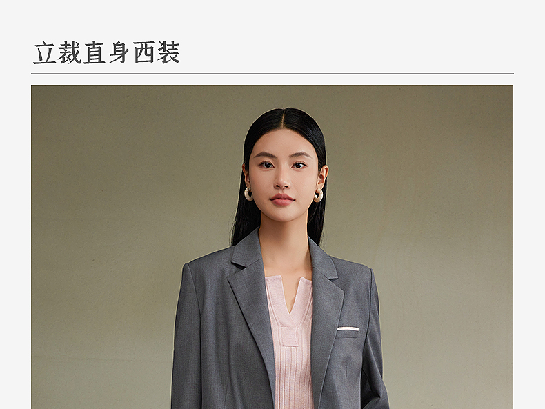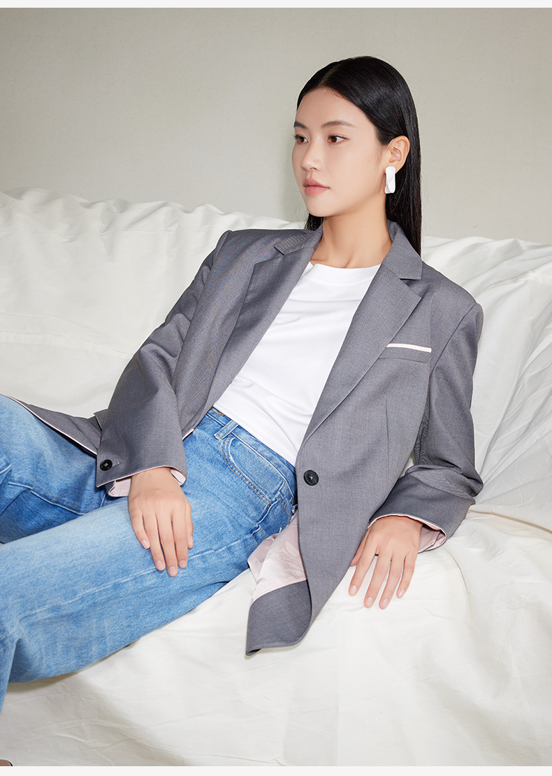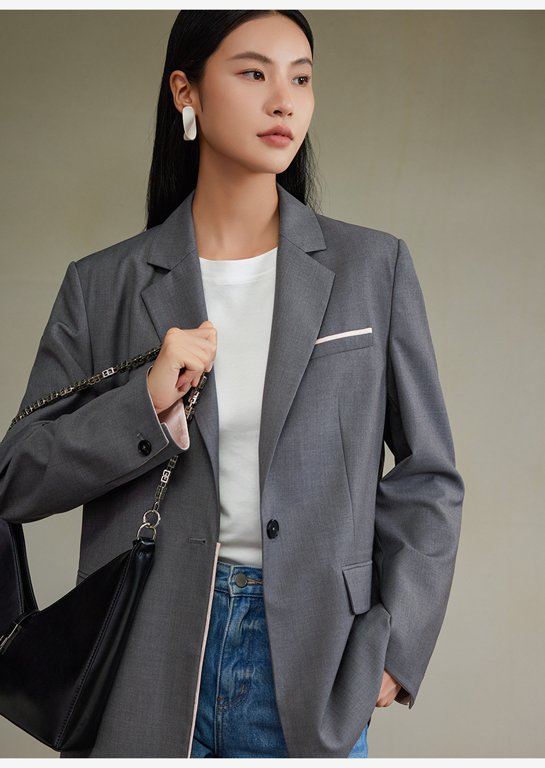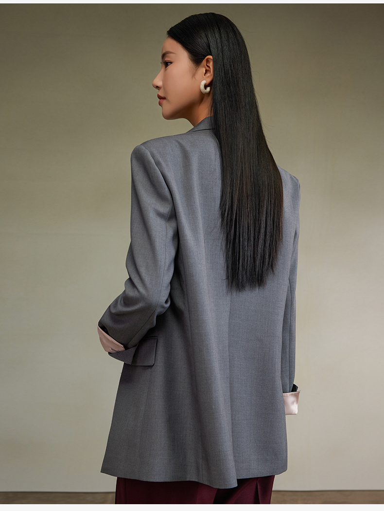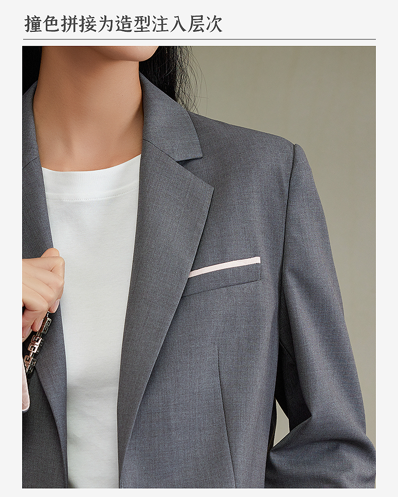 西嘉经典格雷灰轻中式气质拼接撞色设计感西装
