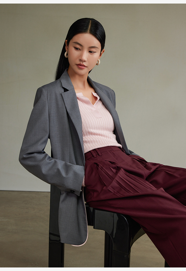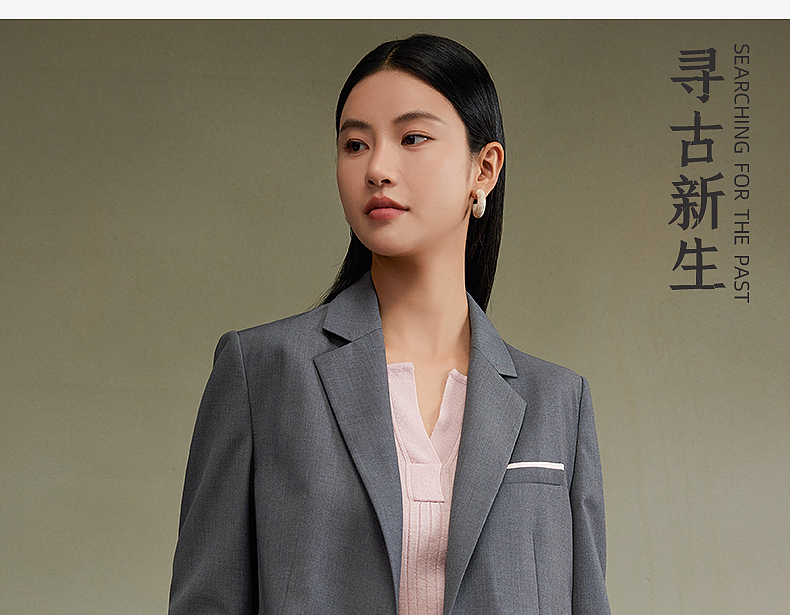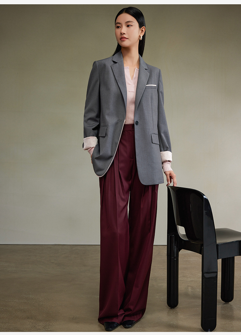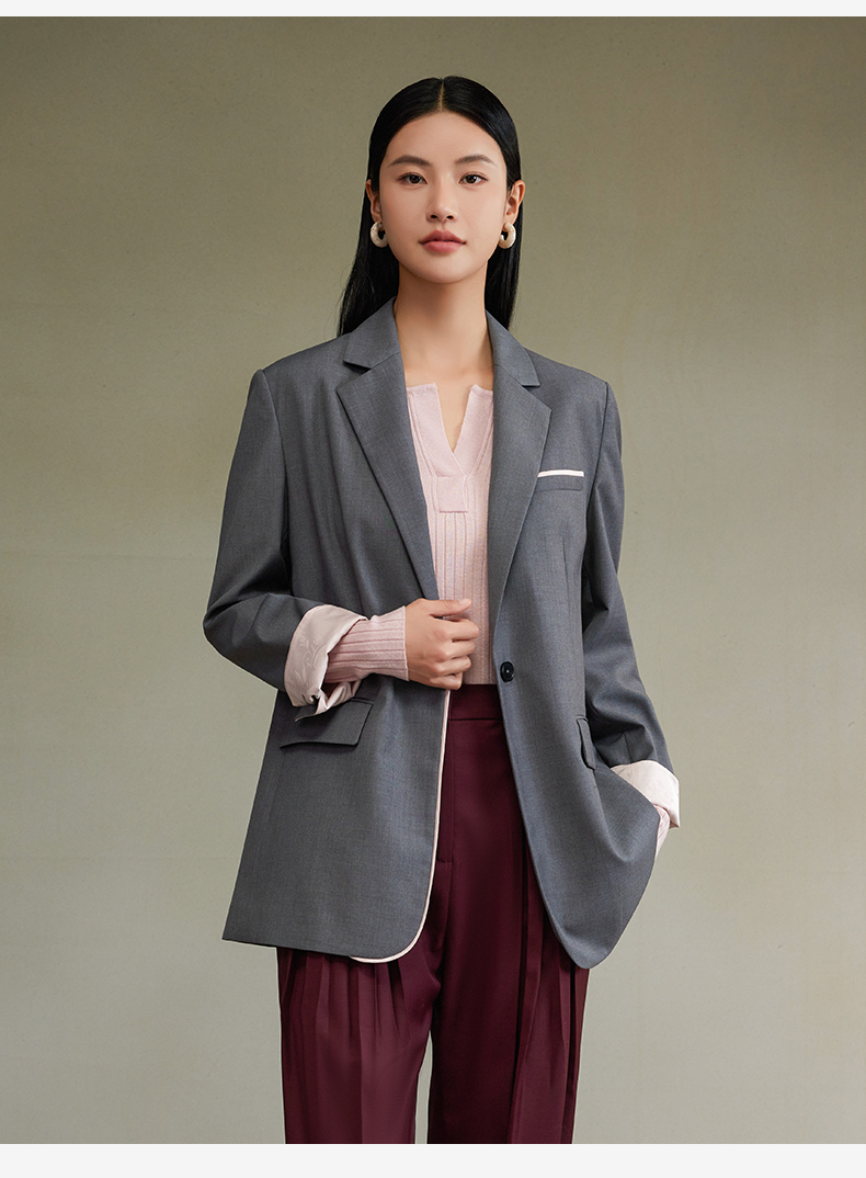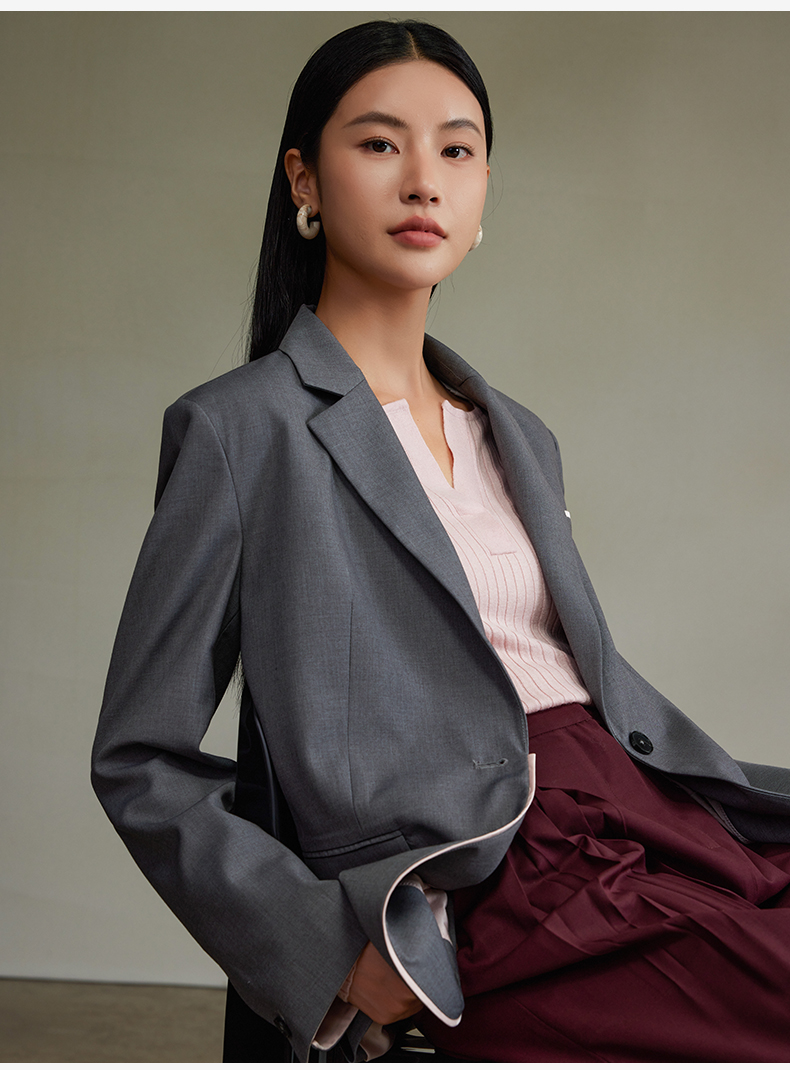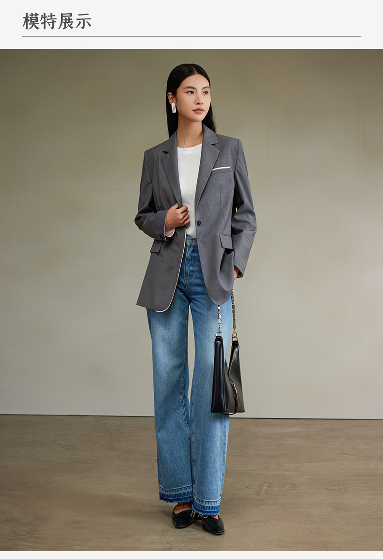 西嘉经典格雷灰轻中式气质拼接撞色设计感西装