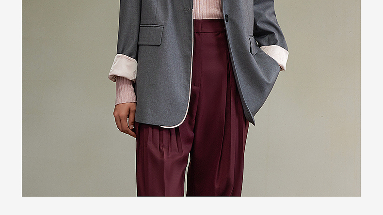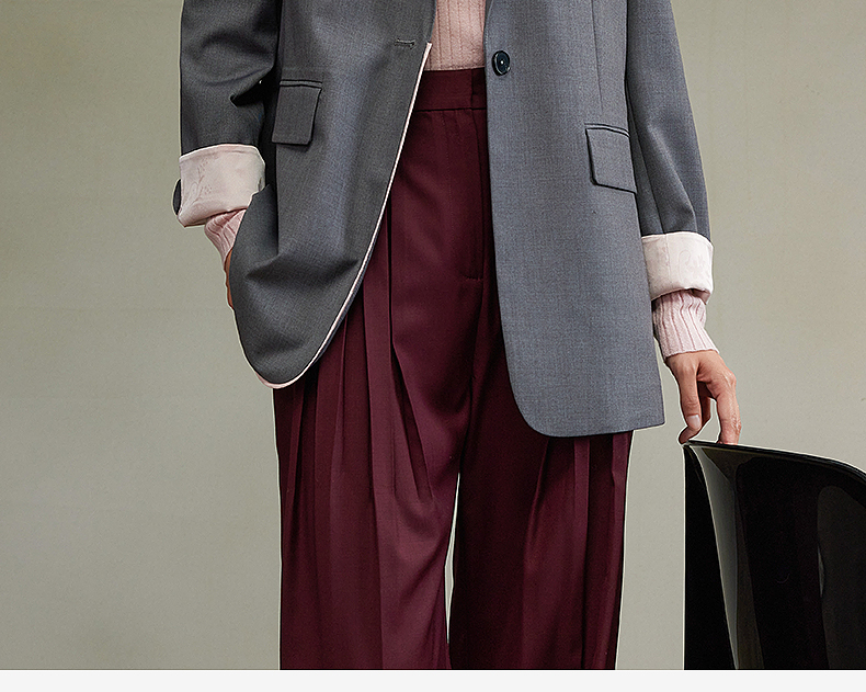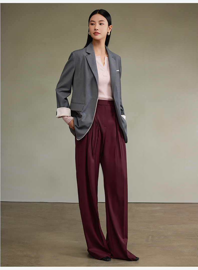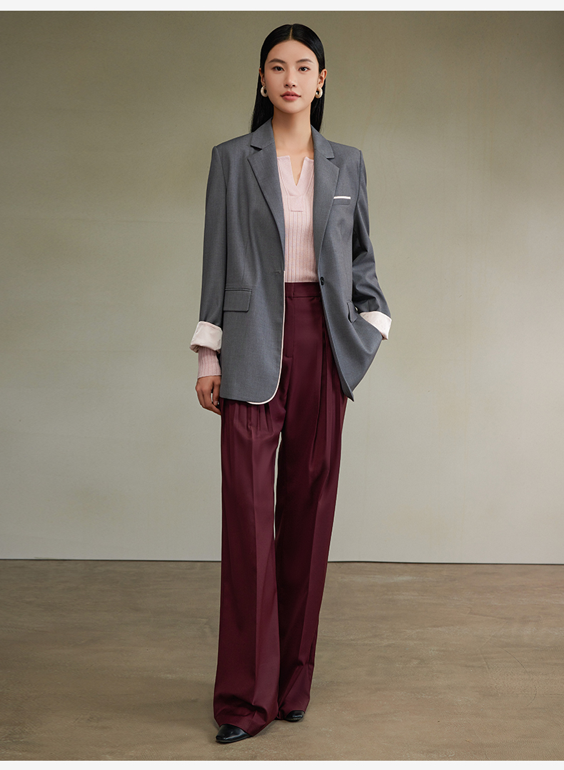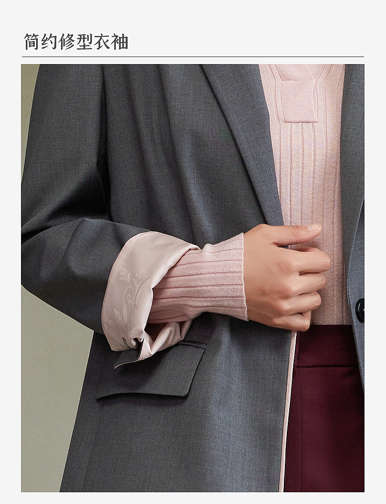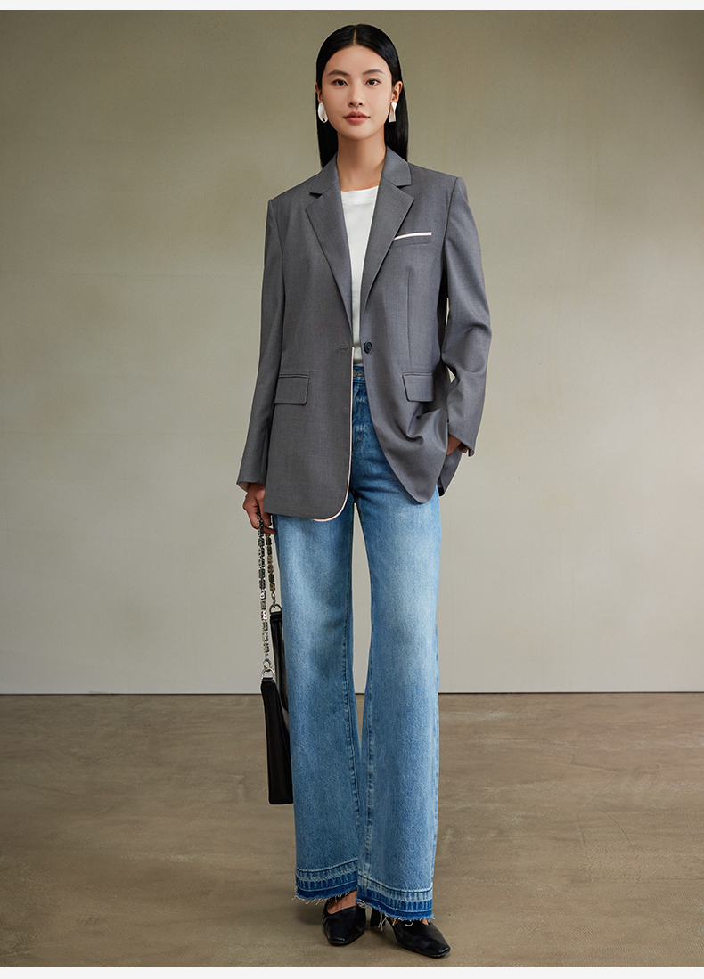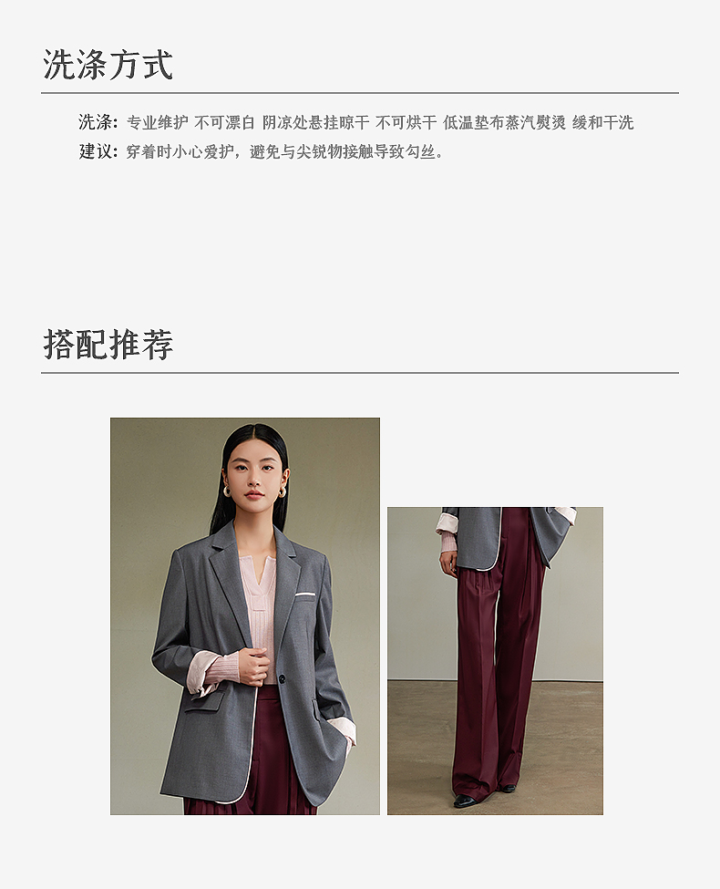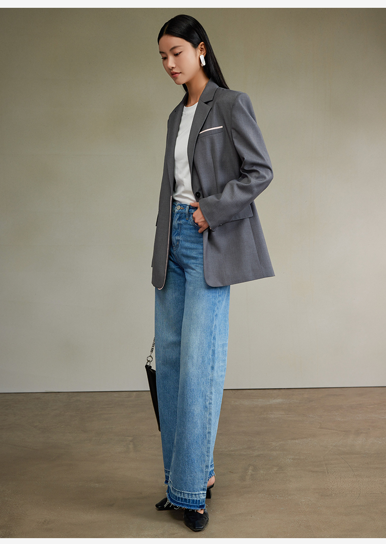 西嘉经典格雷灰轻中式气质拼接撞色设计感西装