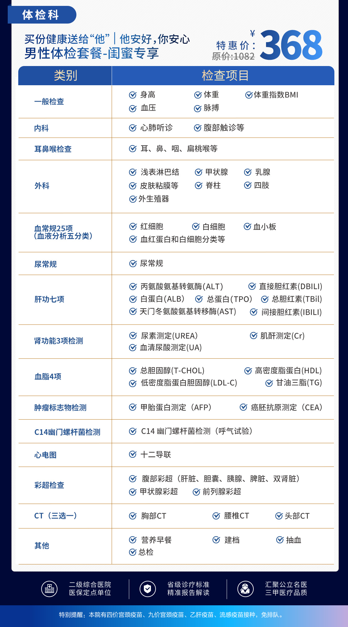 全身综合体检套餐