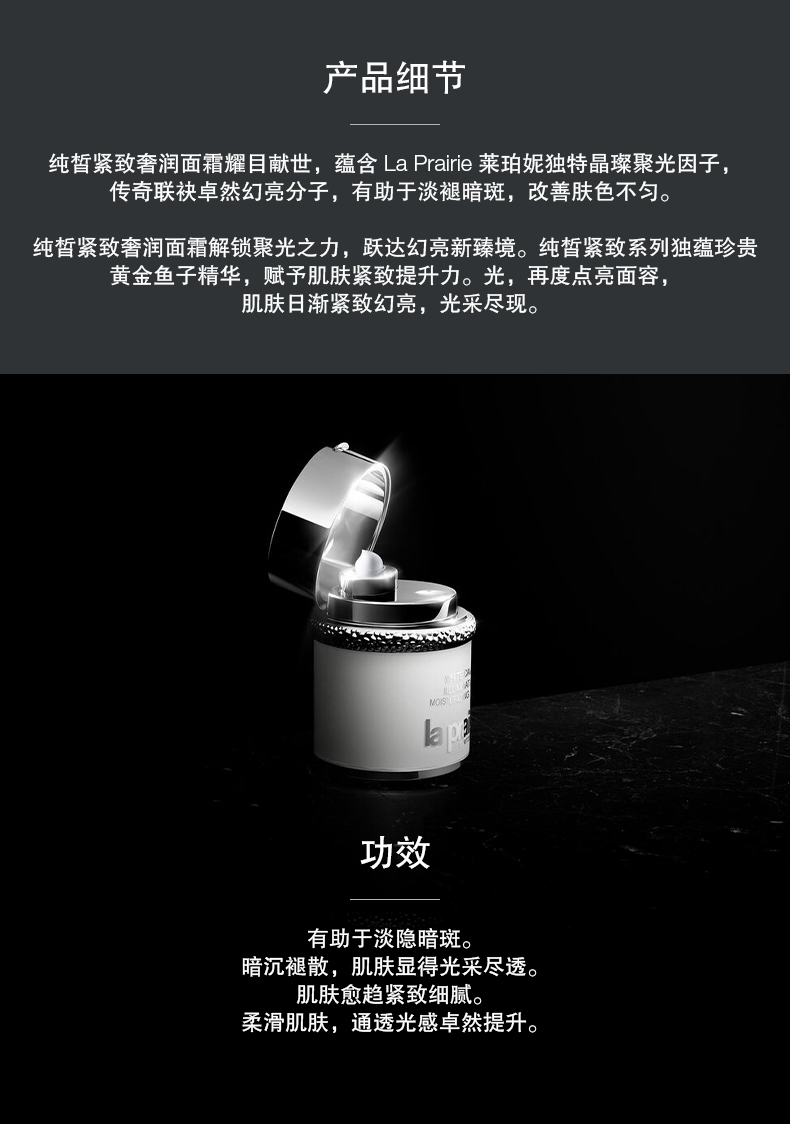 LA PRAIRIE莱伯妮 莱珀妮白鱼子纯皙紧致奢润面霜60ml 润泽 提亮肤色