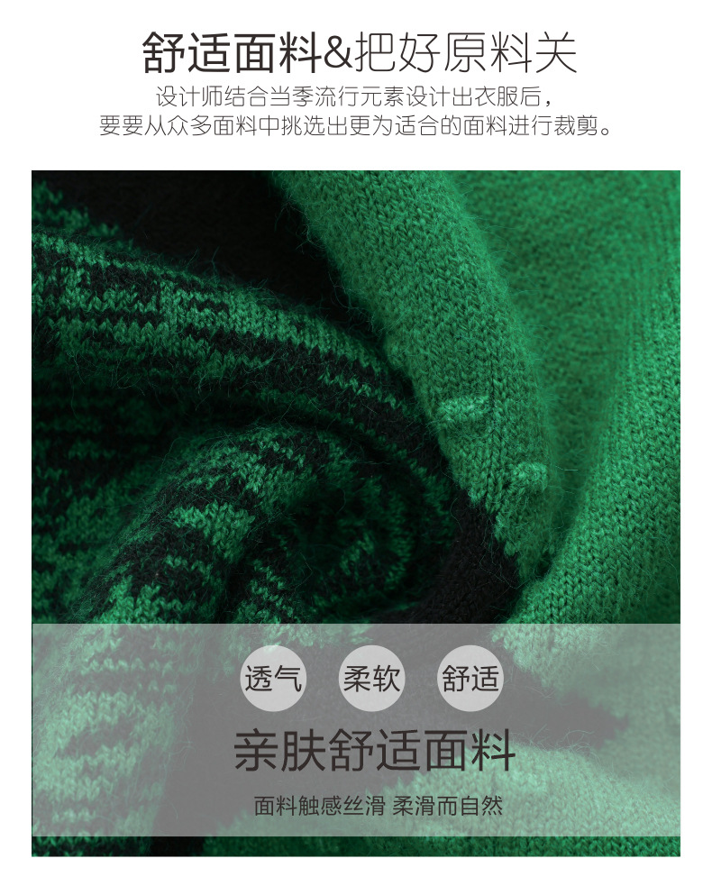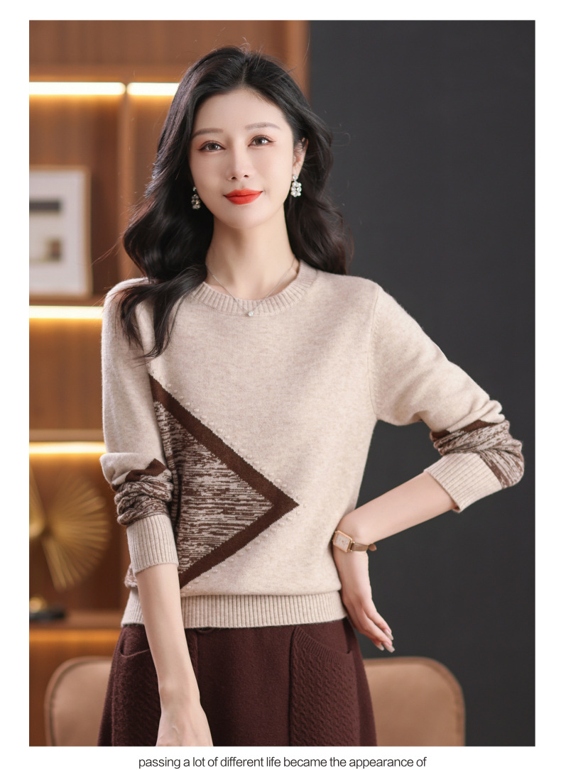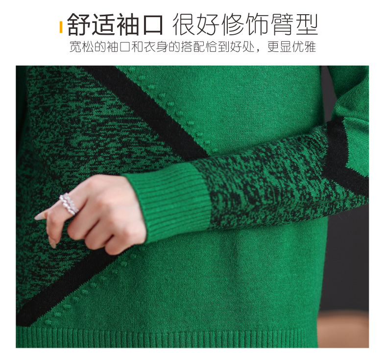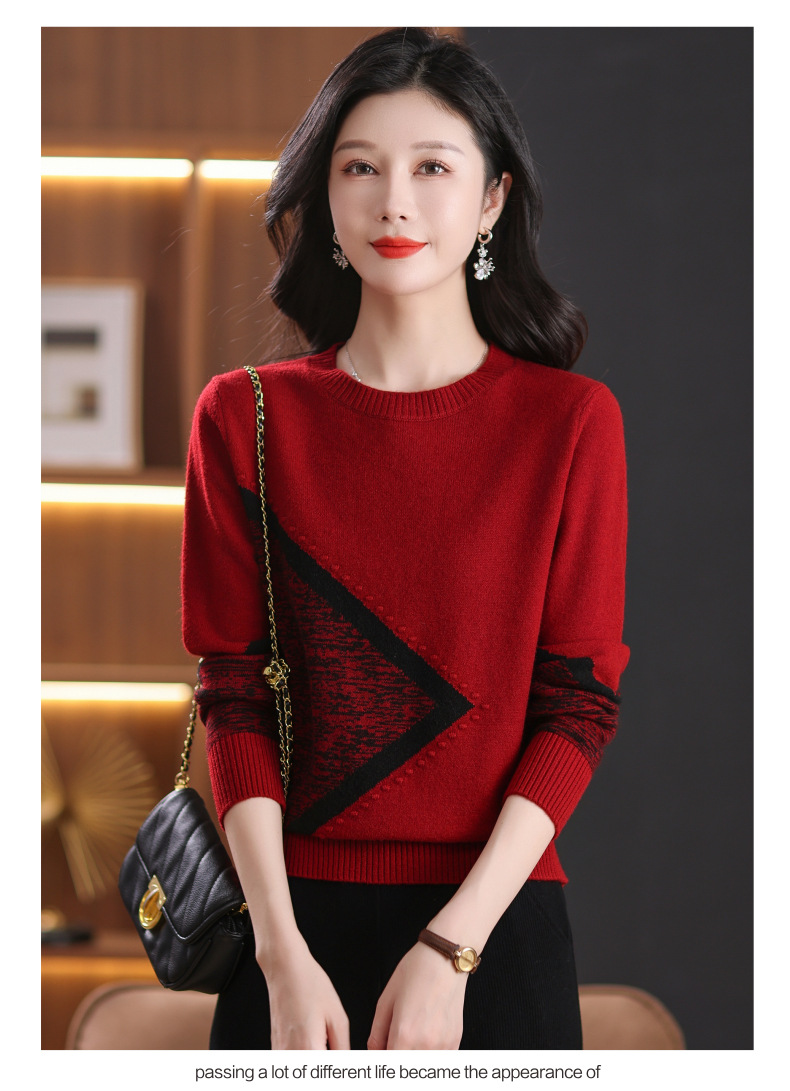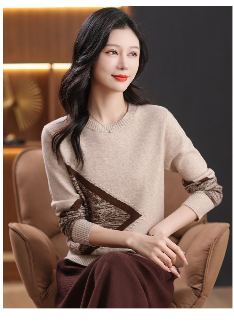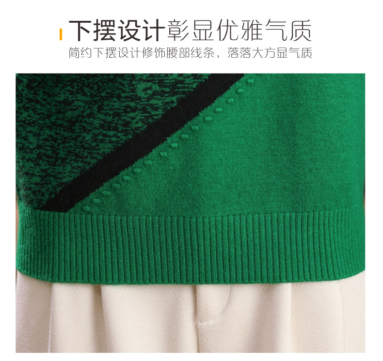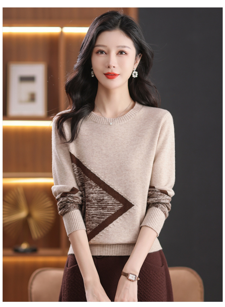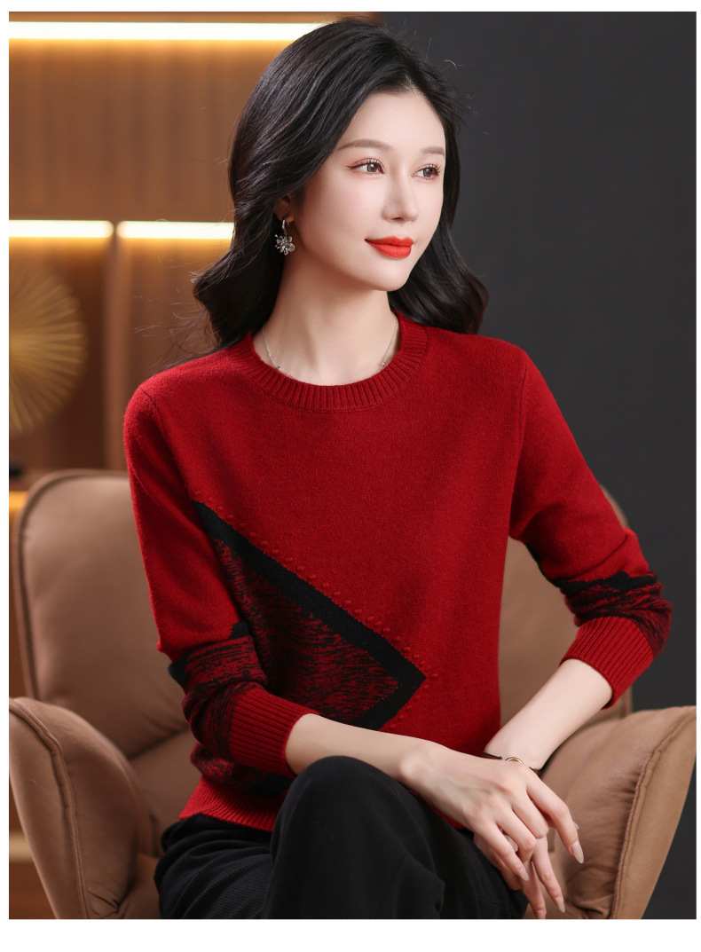 CC-89-726圆领拼色针织衫毛衣女装长袖秋冬新款韩版小众宽松显瘦打底衫上衣