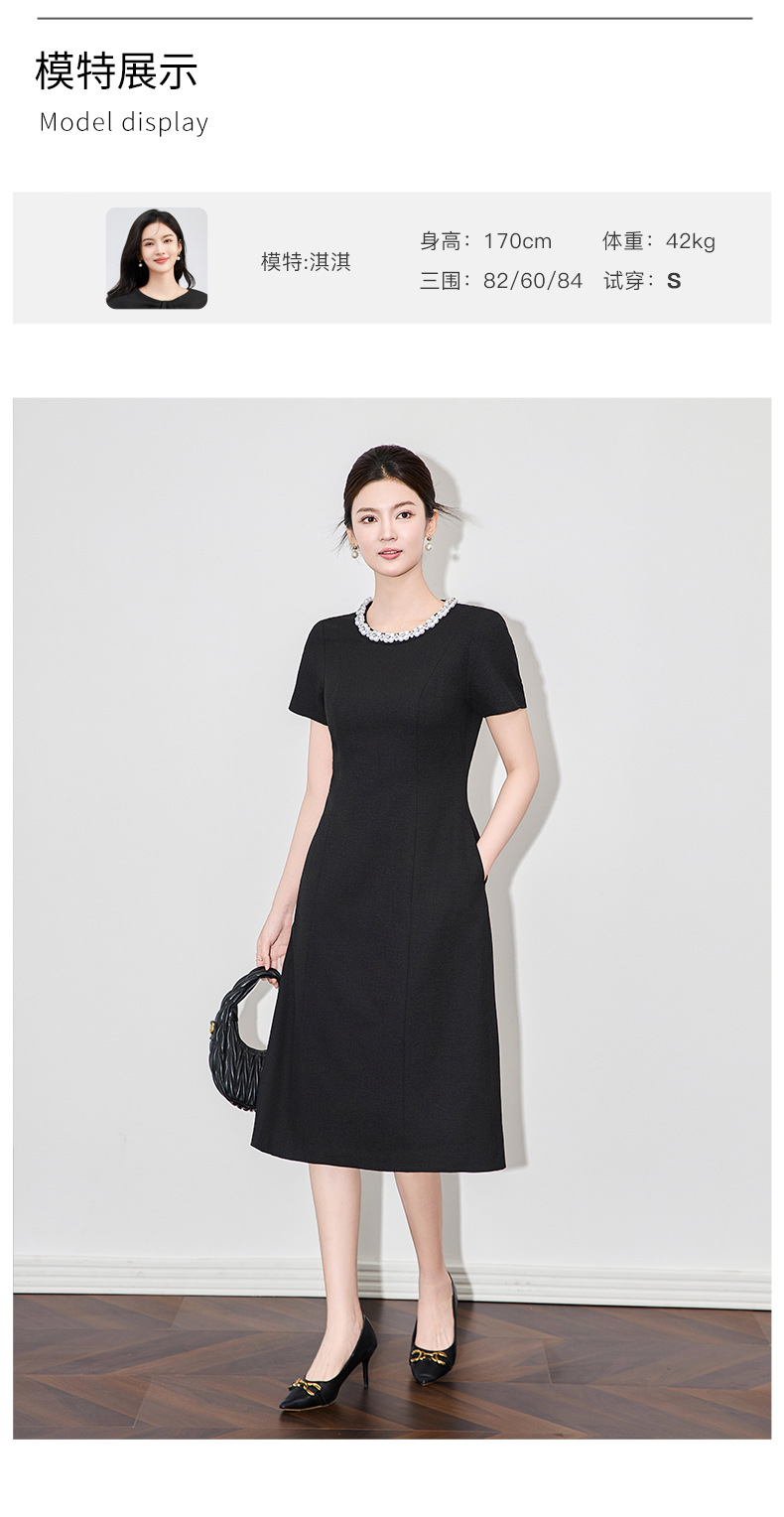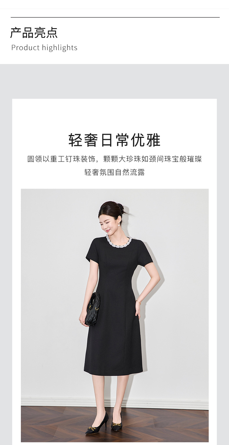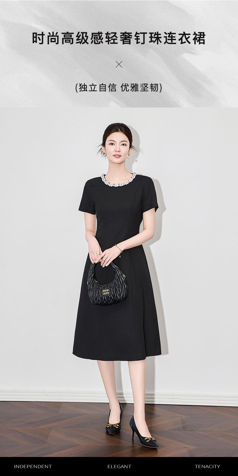 「高货wl」全新升级【铂金会员339/天猫459/差价120】(20047)洛诗琳轻奢重工钉珠连衣裙2025夏季气质肌理感收腰裙子女