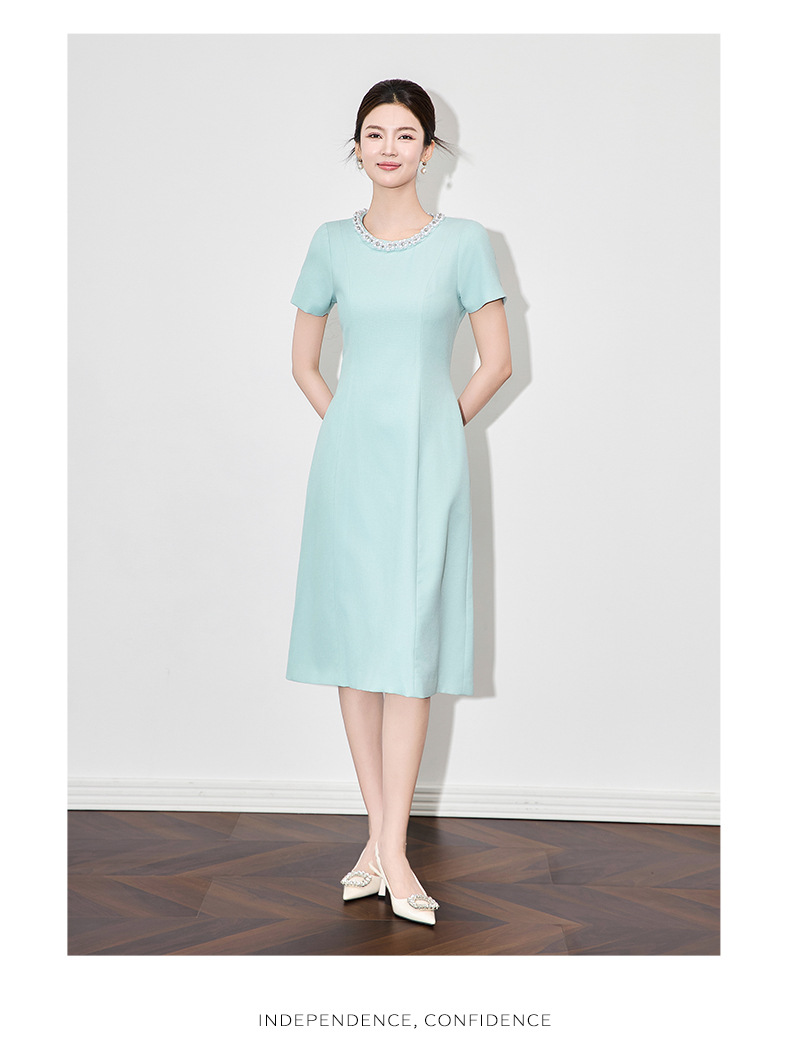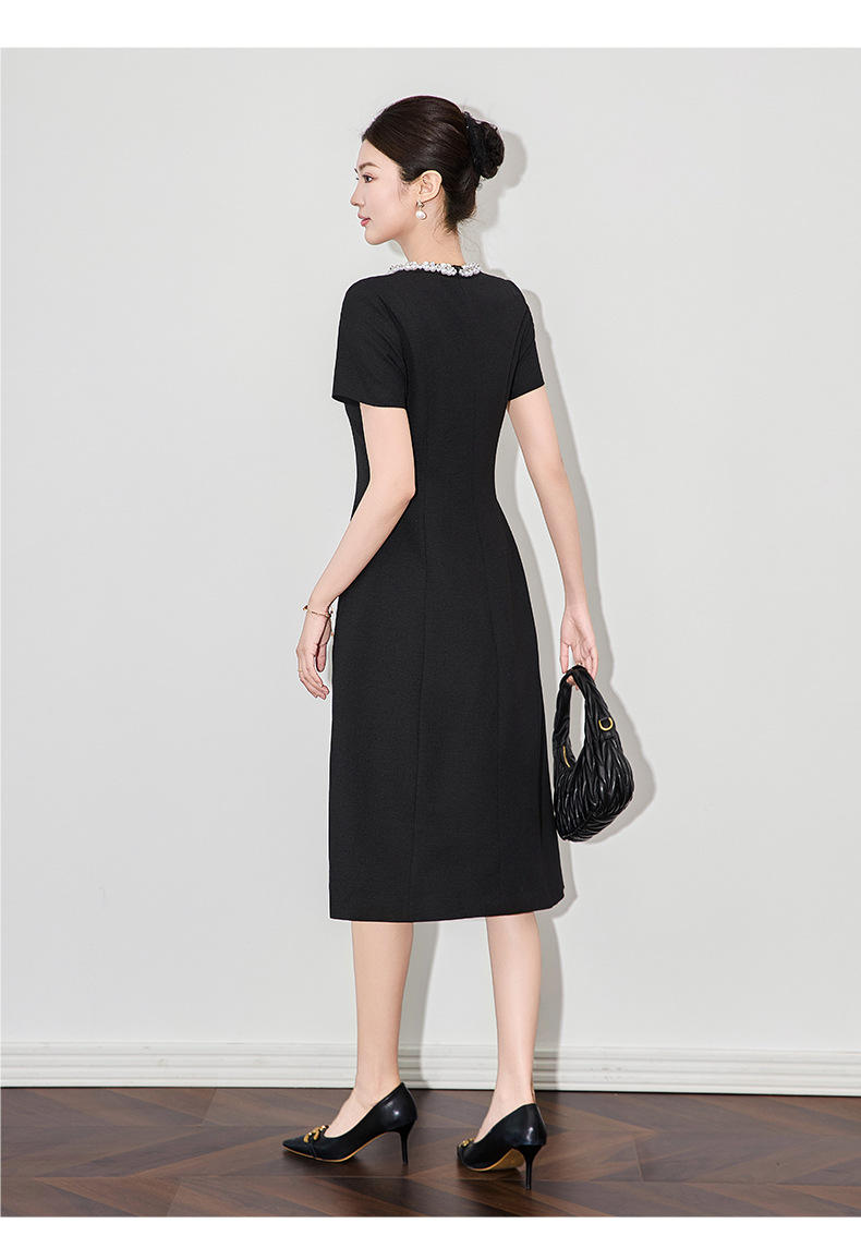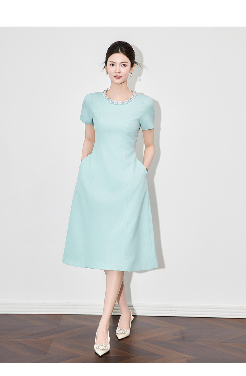 「高货wl」全新升级【铂金会员339/天猫459/差价120】(20047)洛诗琳轻奢重工钉珠连衣裙2025夏季气质肌理感收腰裙子女