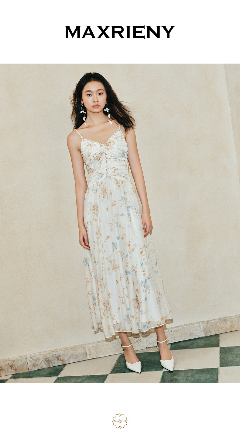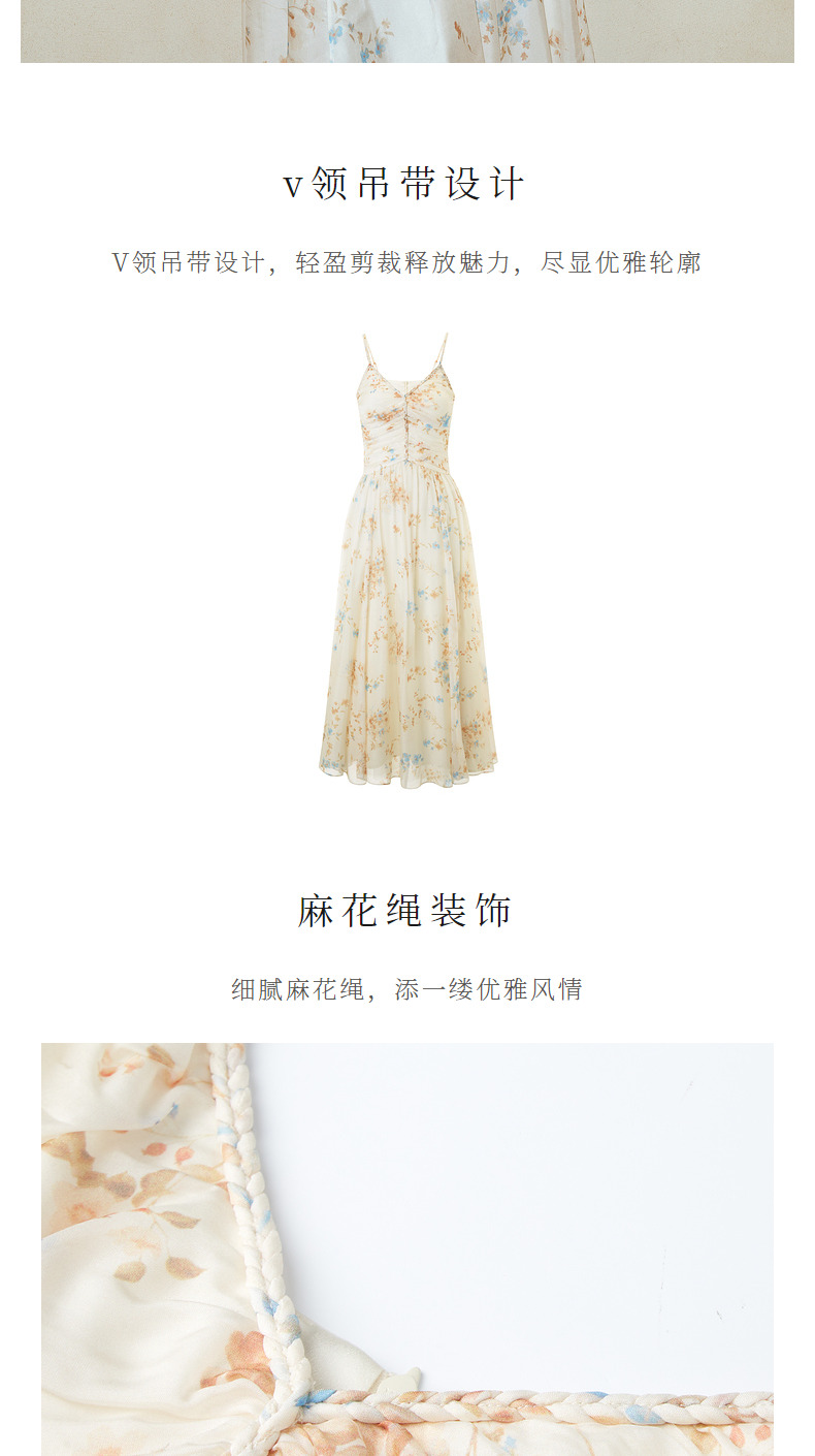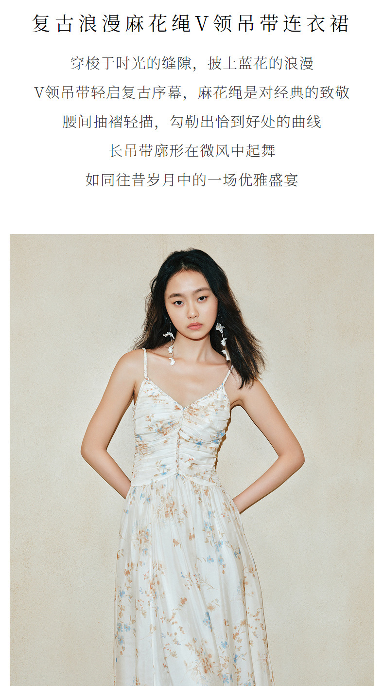 玛克门店发货:MAXRIENY复古浪漫麻花花绳V领吊带连衣裙(货号:MC85DR042)