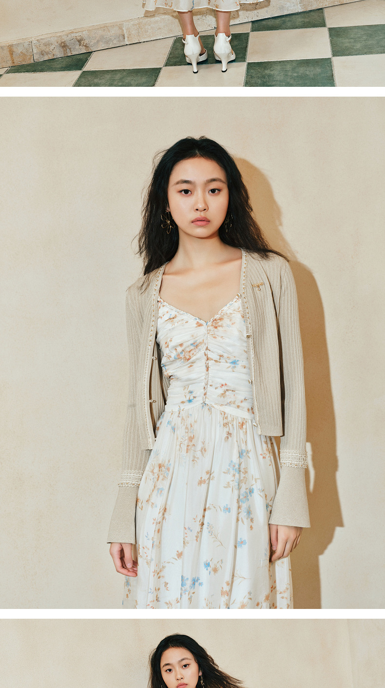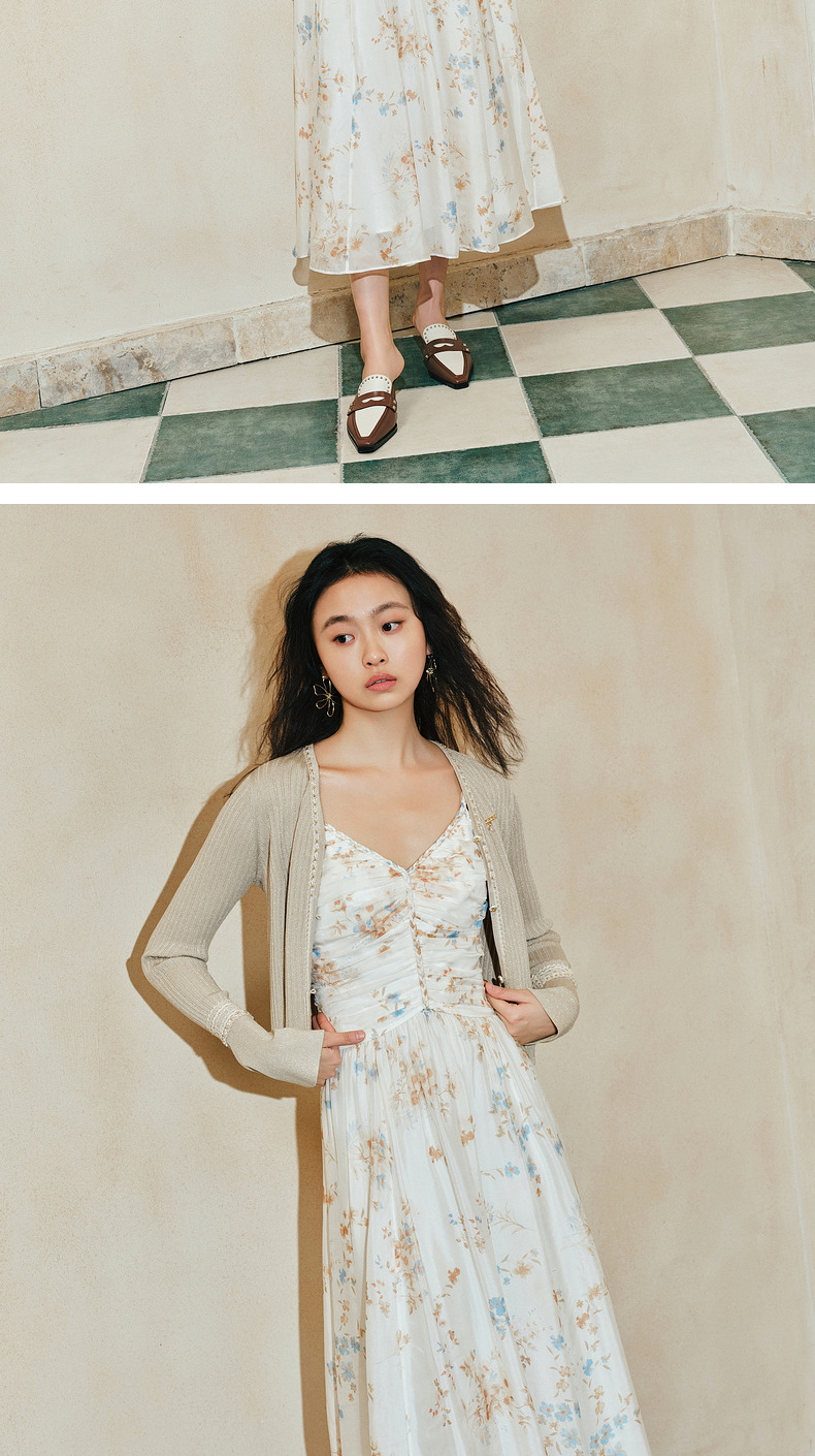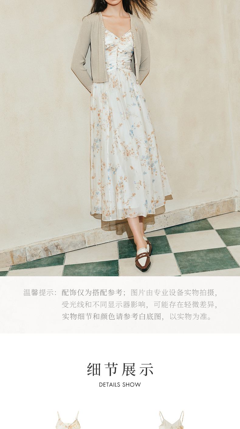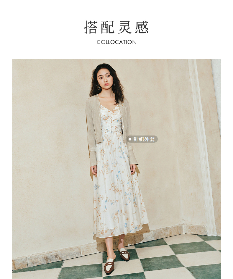 玛克门店发货:MAXRIENY复古浪漫麻花花绳V领吊带连衣裙(货号:MC85DR042)