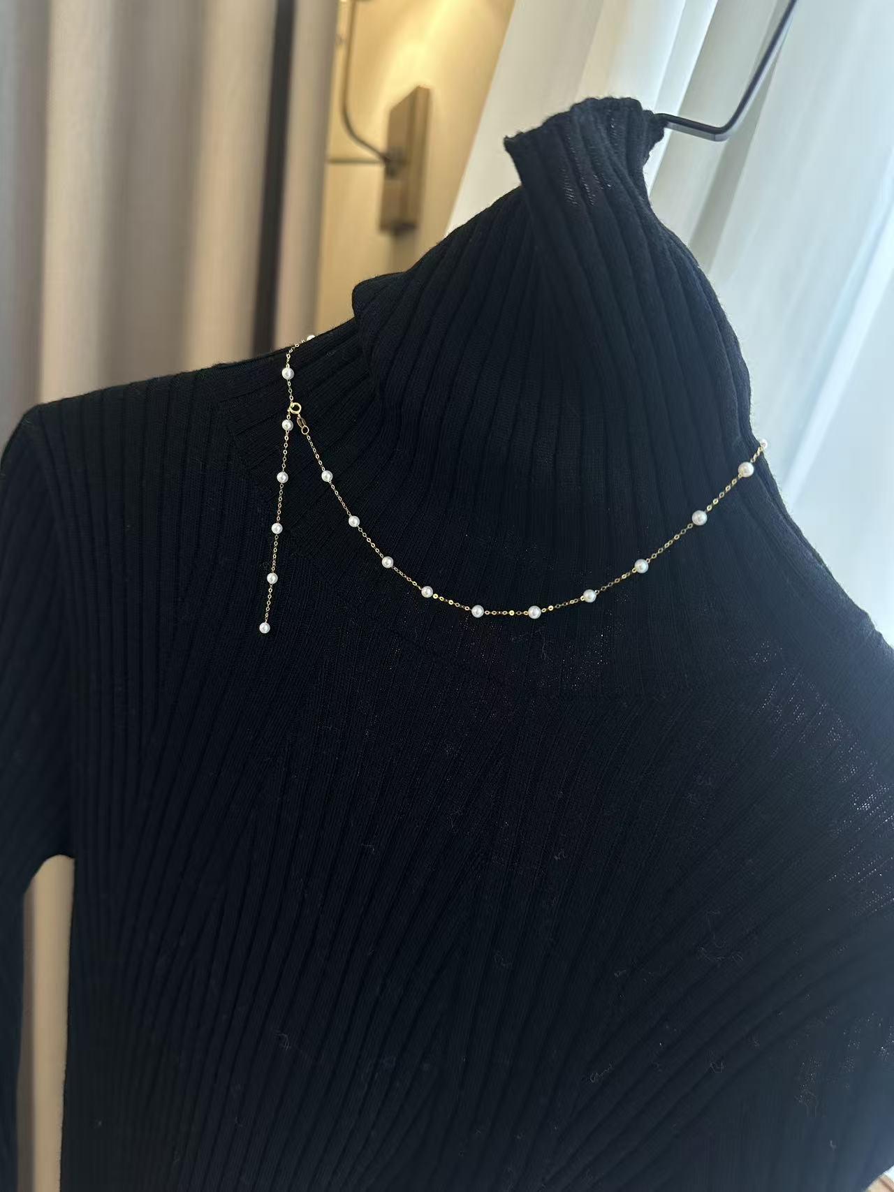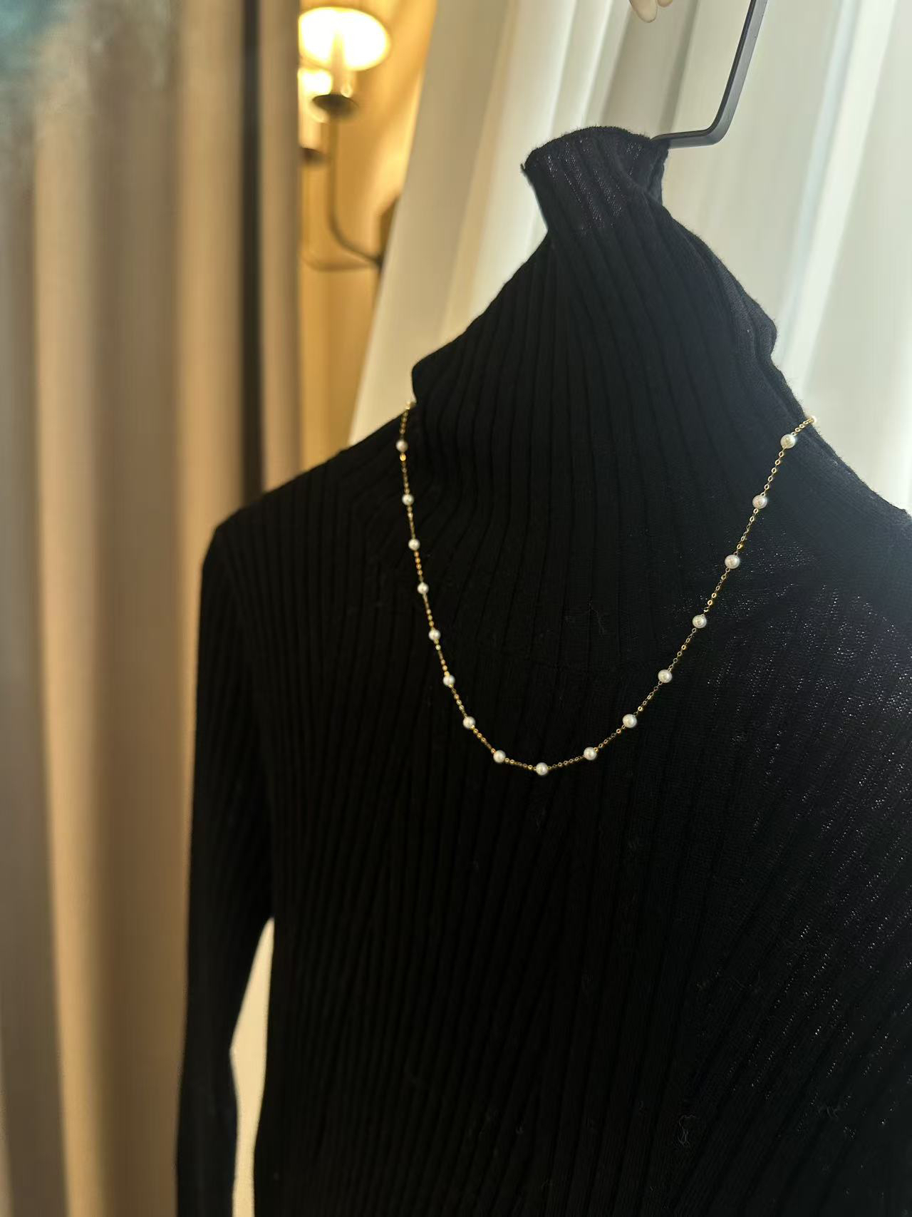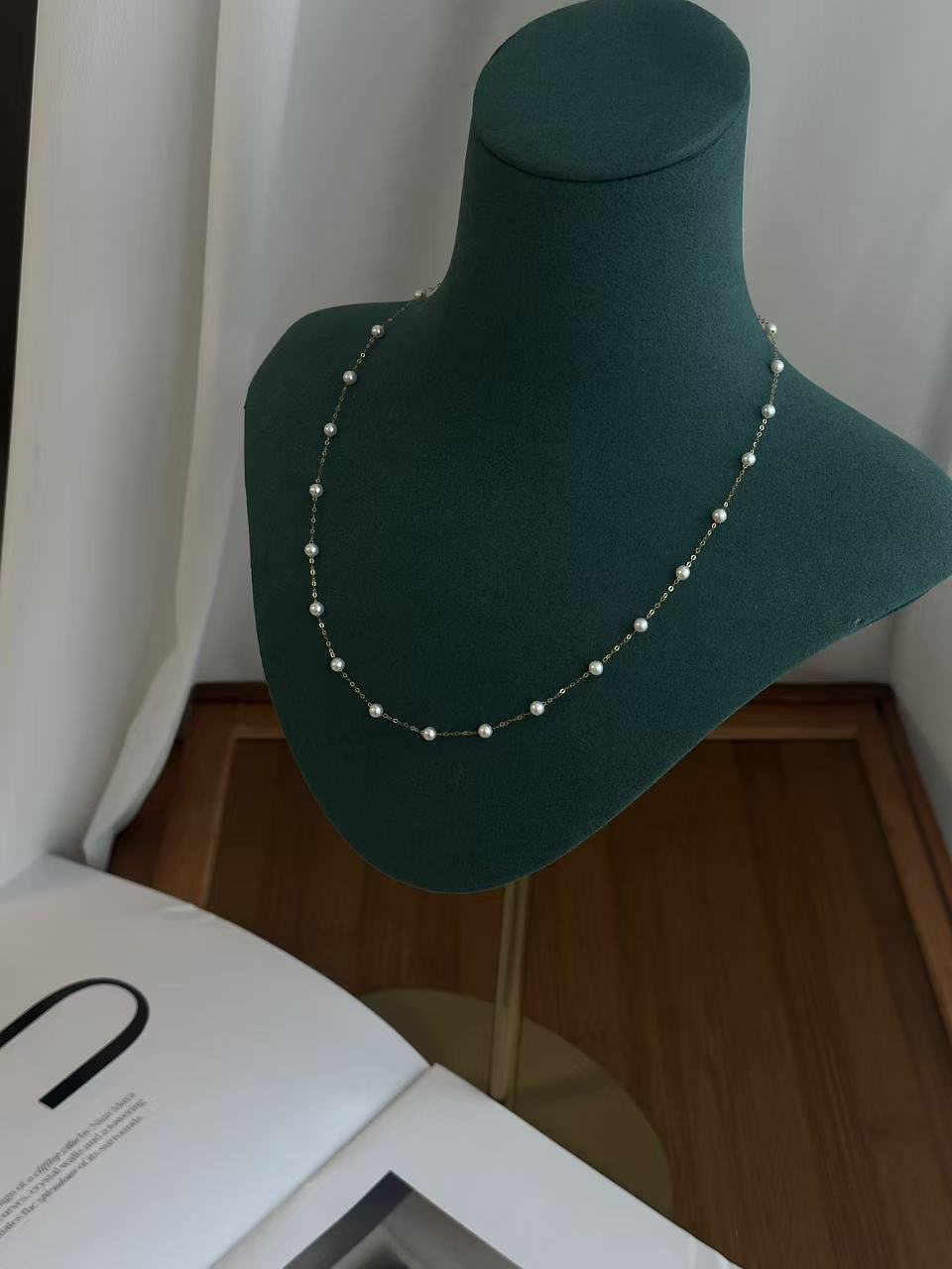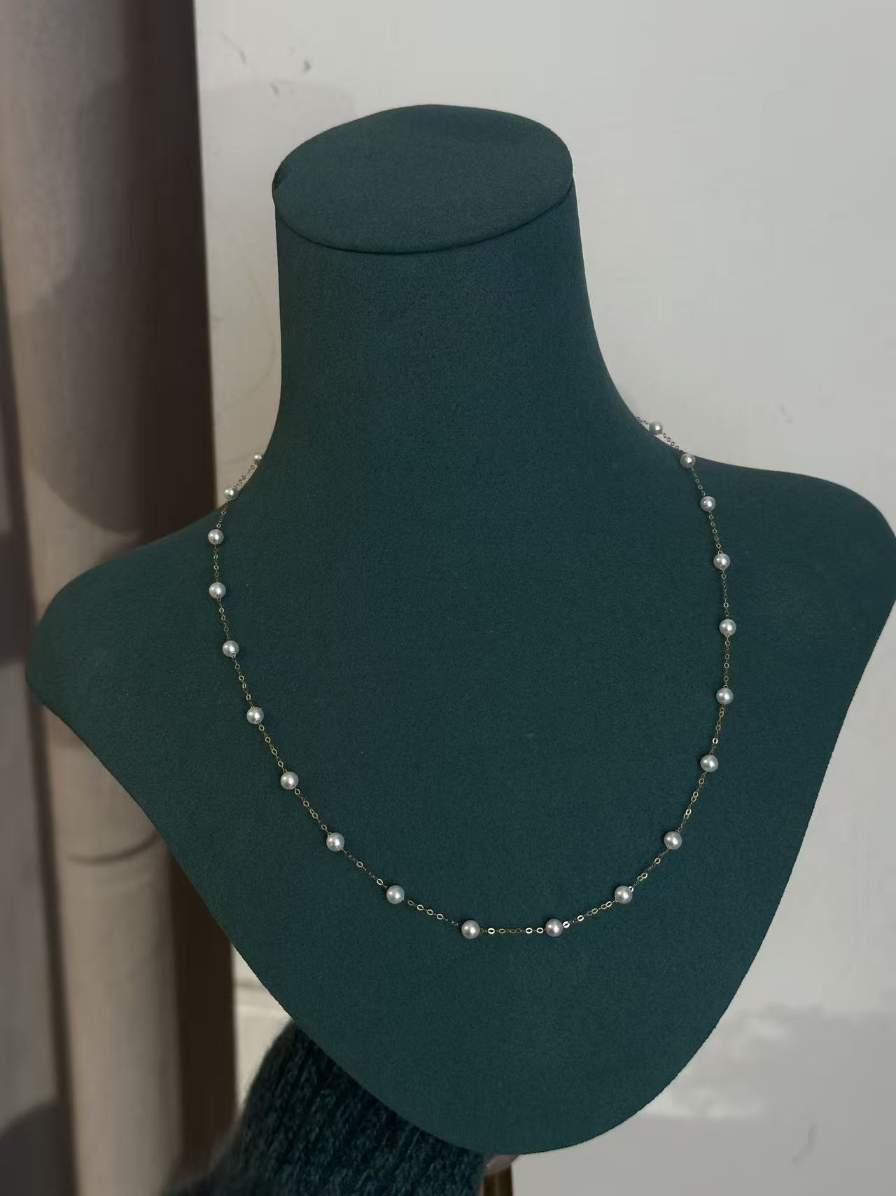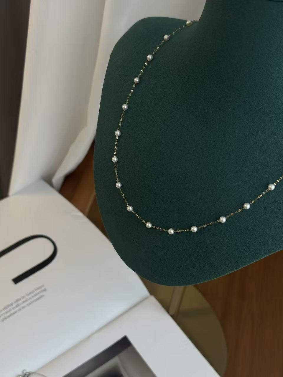18K 金满天星珍珠锁骨链 | 3-4mm 正圆强光无瑕 颈间的低调奢华