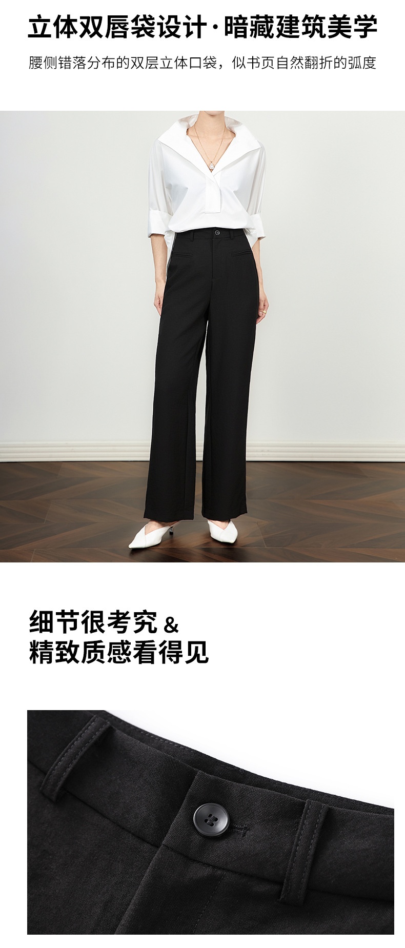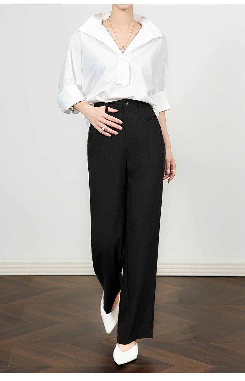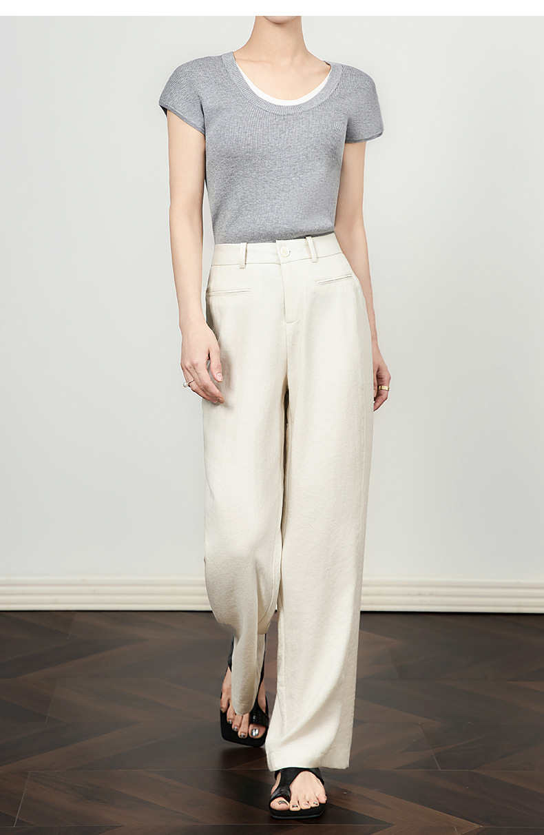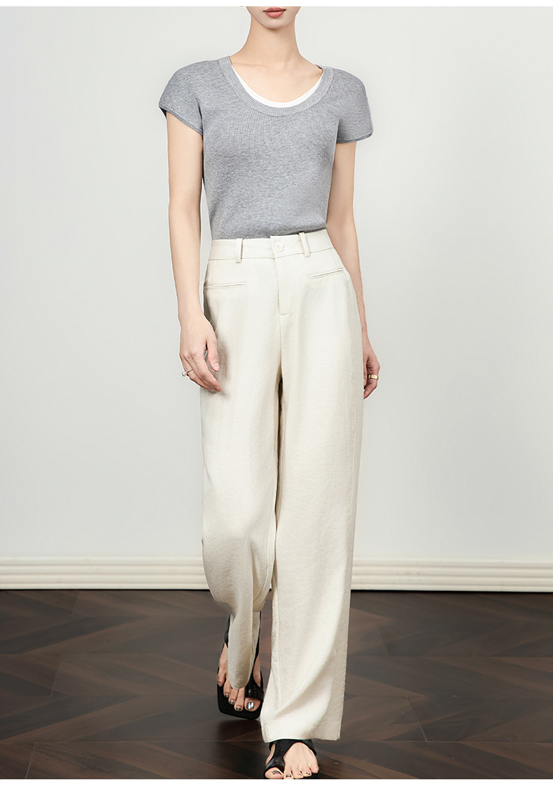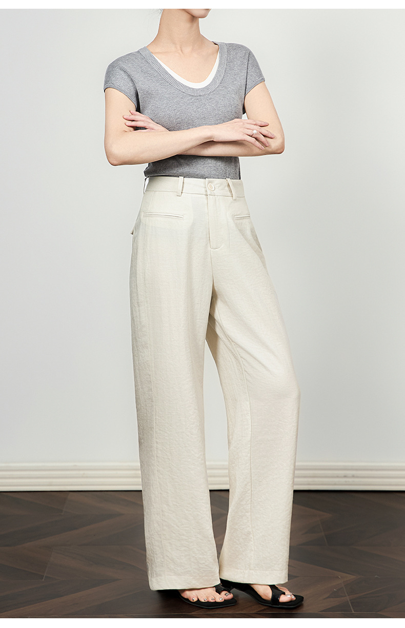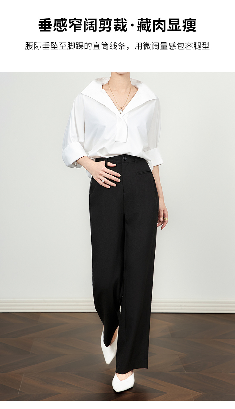 「高货wl」全新升级【铂金会员220/天猫289/差价69】(21456)洛诗琳薄款窄版阔腿裤2025夏季通勤百搭高腰显瘦直筒裤