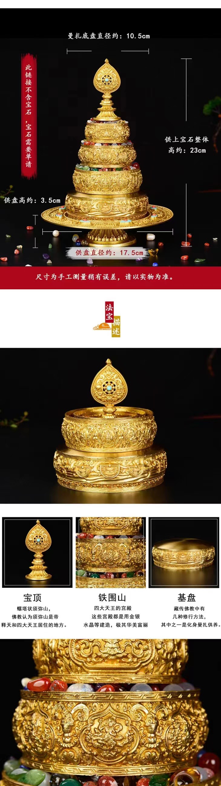 纯铜曼茶盘配托小号款如法37堆供曼扎 送天然玛瑙宝石