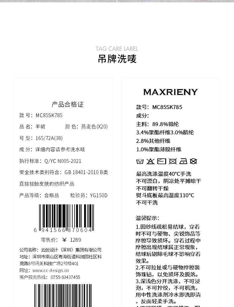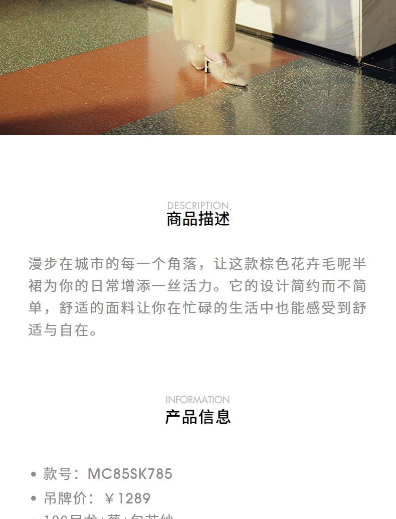 玛克门店发货:MAXRIENY精致日常感毛呢半裙长裙(货号:MC85SK785)