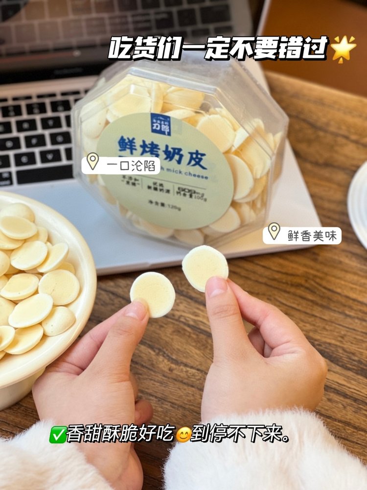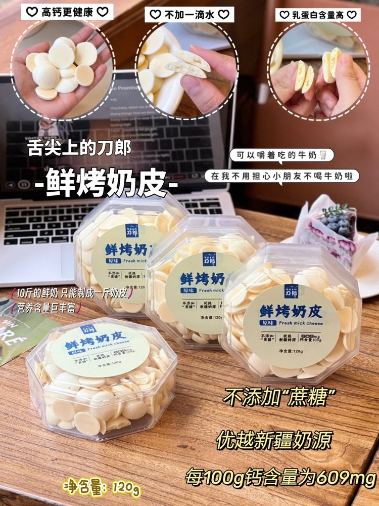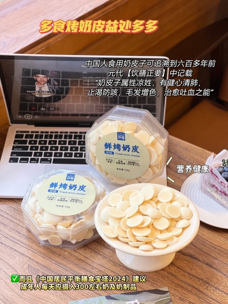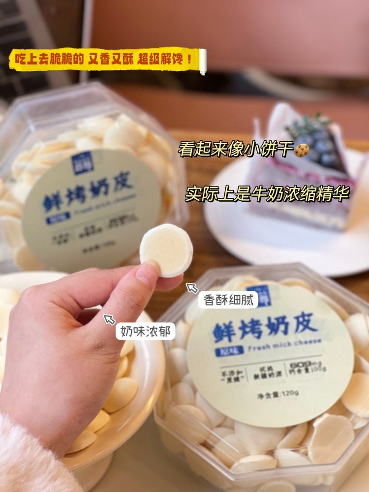 烤奶皮模样看起来像小饼干,实际上是浓缩的牛奶精华❗10斤的鲜奶🥛只能制作出一斤的奶皮,不添加一滴水生,乳蛋白含量超级高❗❗超级解馋贼上瘾🤤