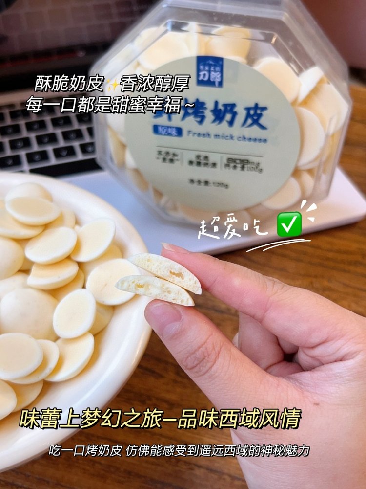 💖还在寻找美味与营养兼得的零食吗?🌈烤奶皮它来了,不加一滴水,无香精,无防腐剂,无色素。成分干净孩子可以放心吃,采用优质的牛奶作为原料❗确保每一片都能带给您纯正浓郁的奶香。