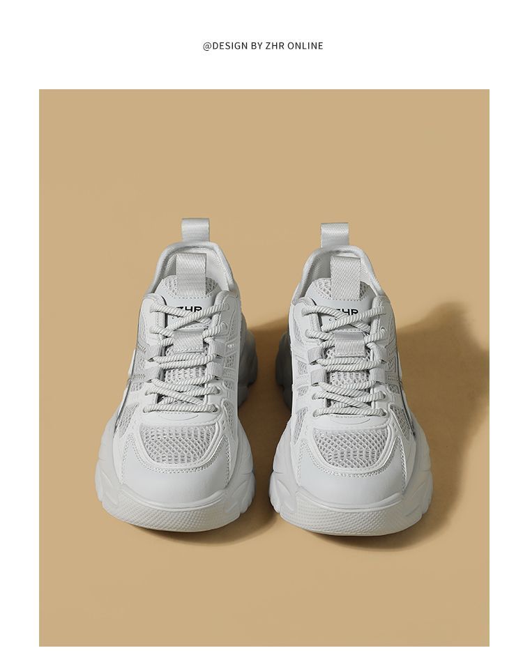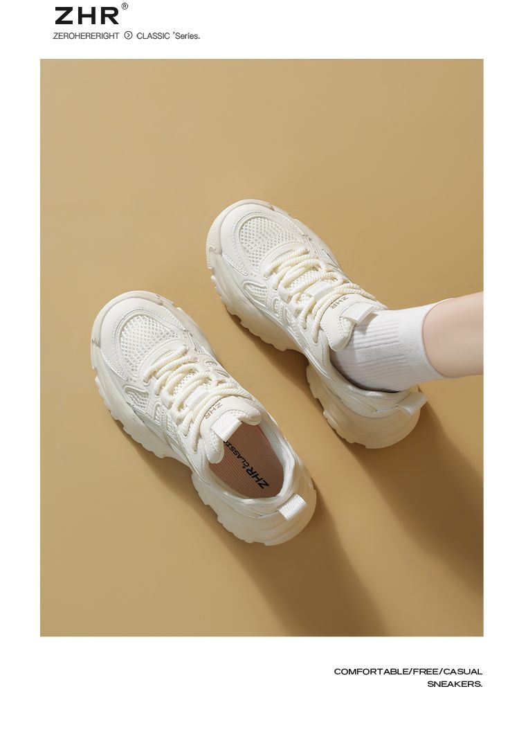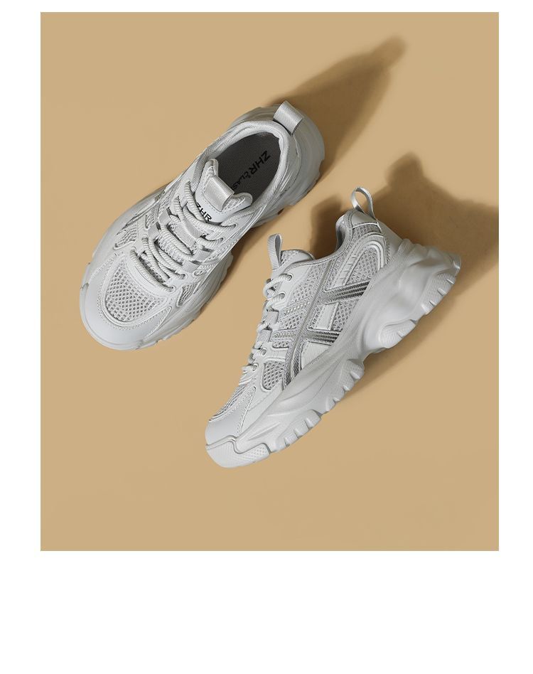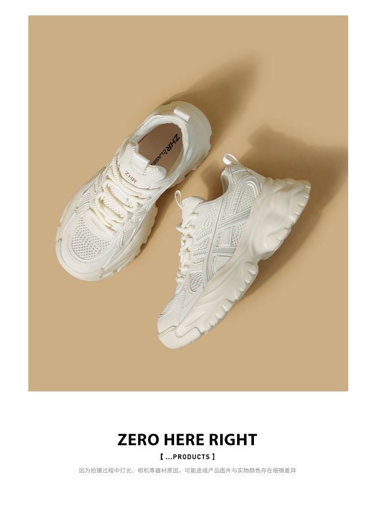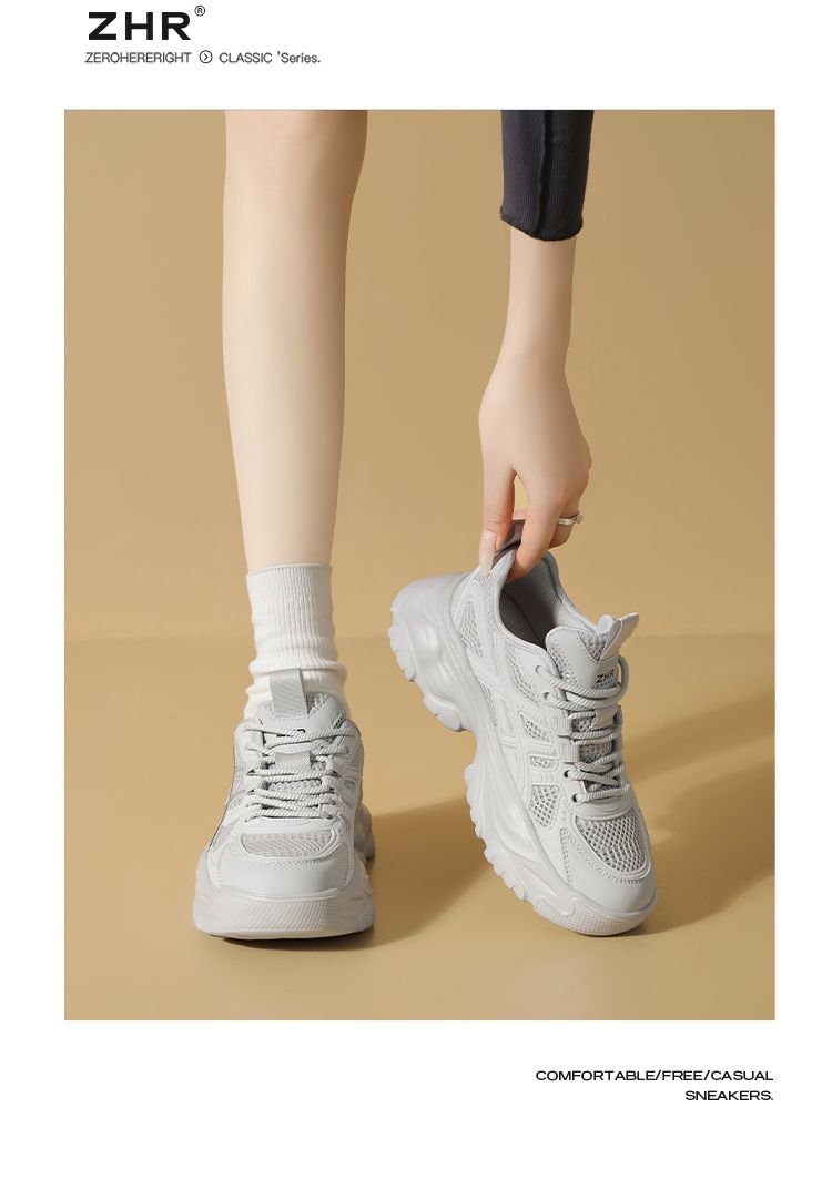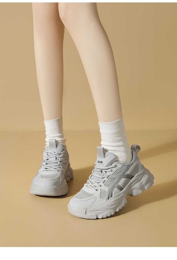 ZHR网面条纹老爹鞋透气厚底增高女鞋2025秋新款小个子运动休闲鞋