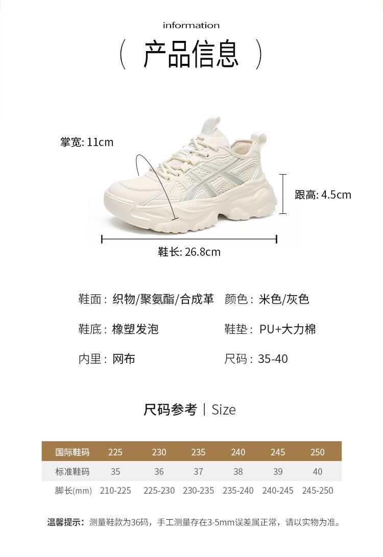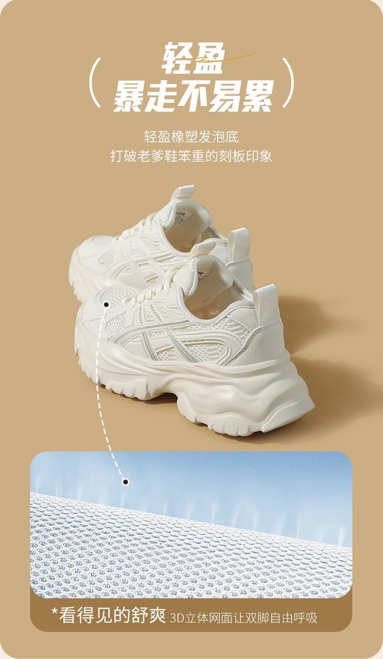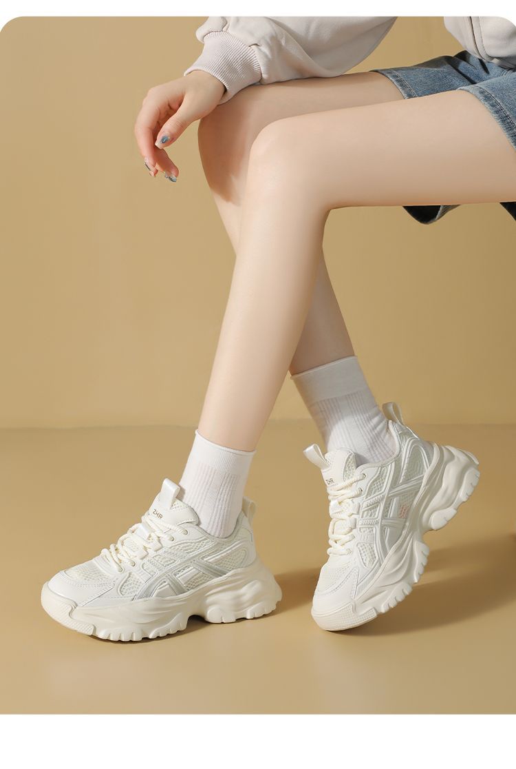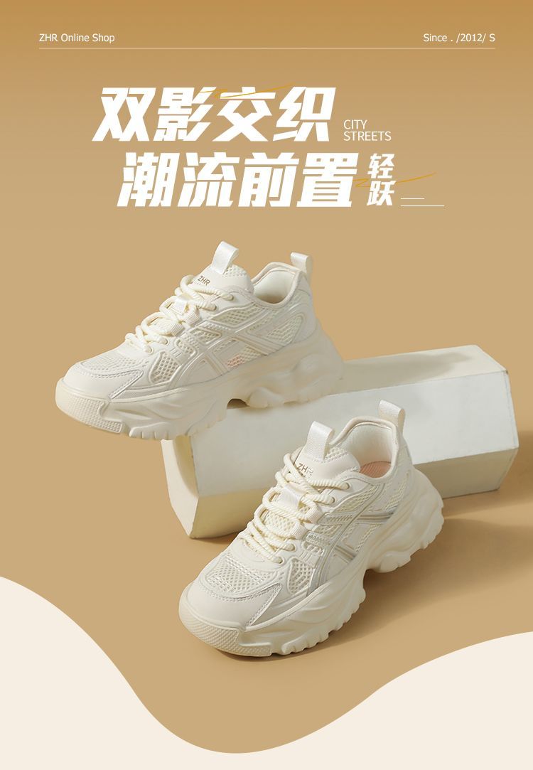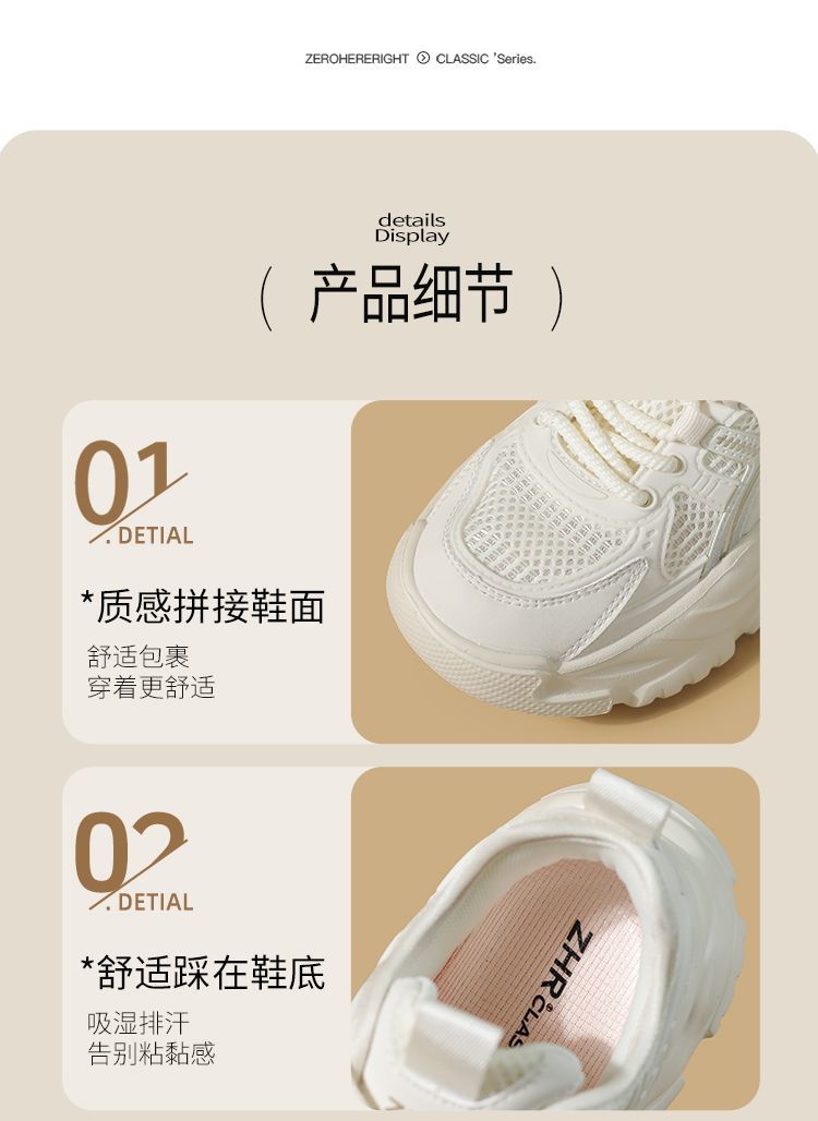 ZHR网面条纹老爹鞋透气厚底增高女鞋2025秋新款小个子运动休闲鞋