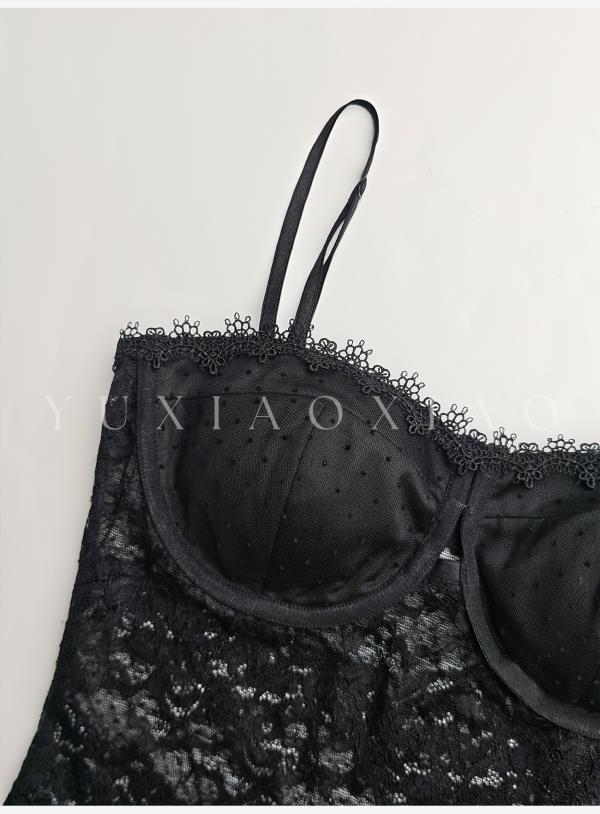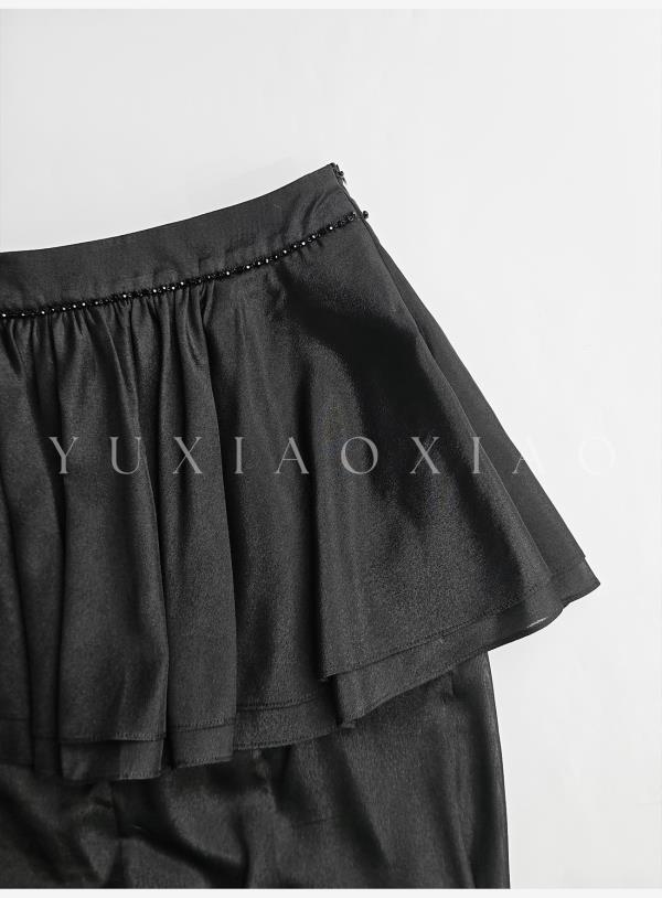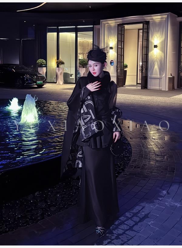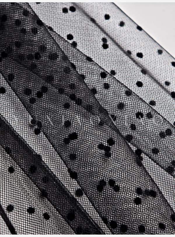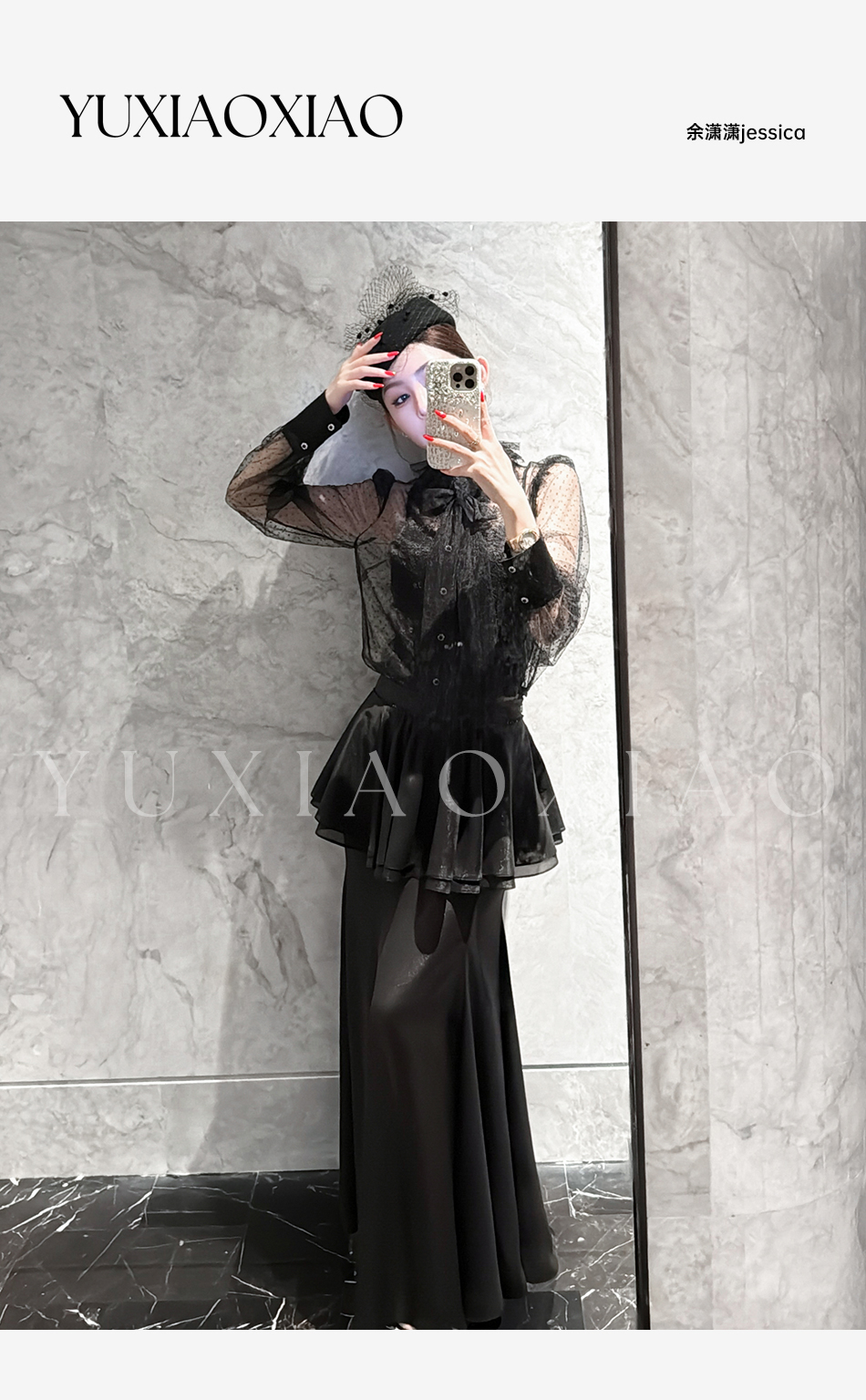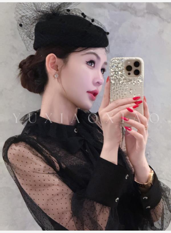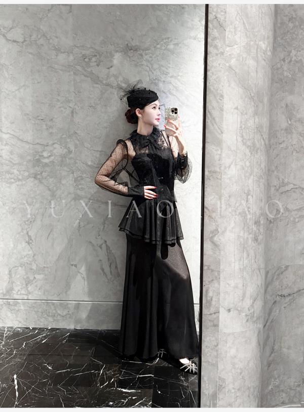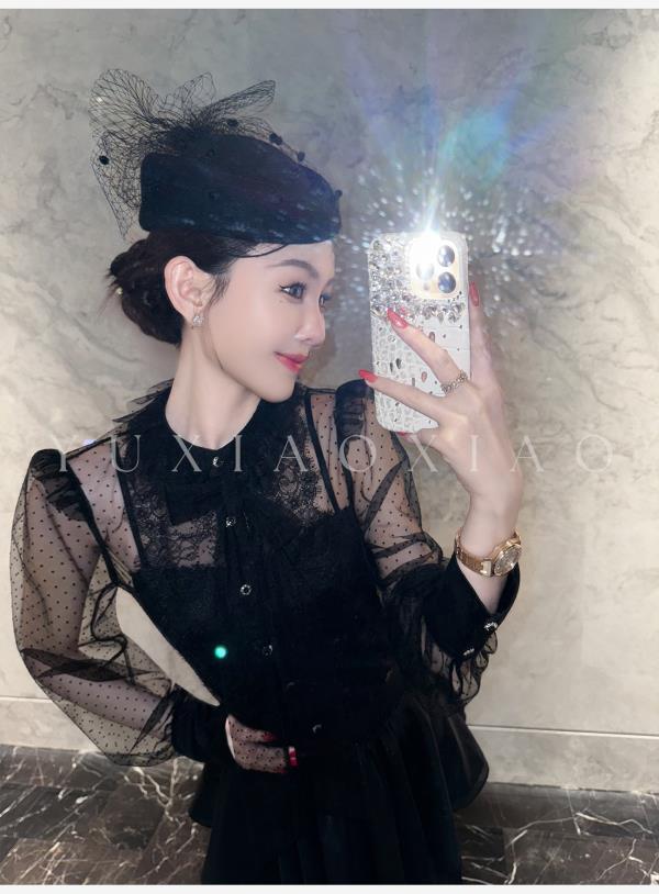 余潇潇【爱丽丝夜曲】蕾丝波点长袖镂空衬衣&高级层次感高腰半身裙