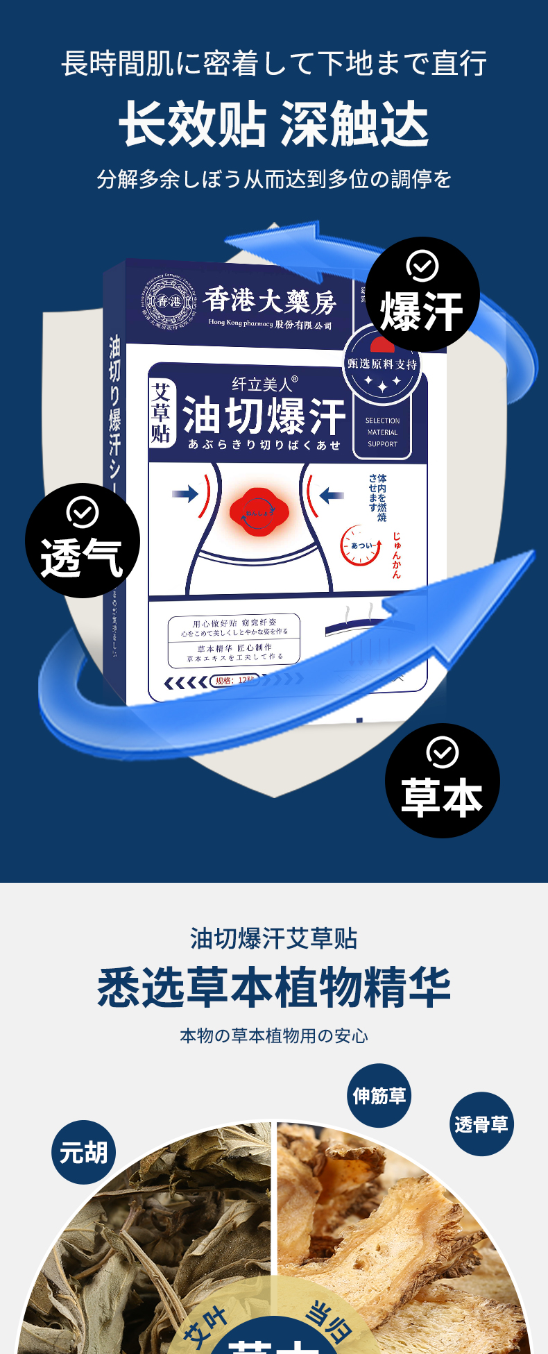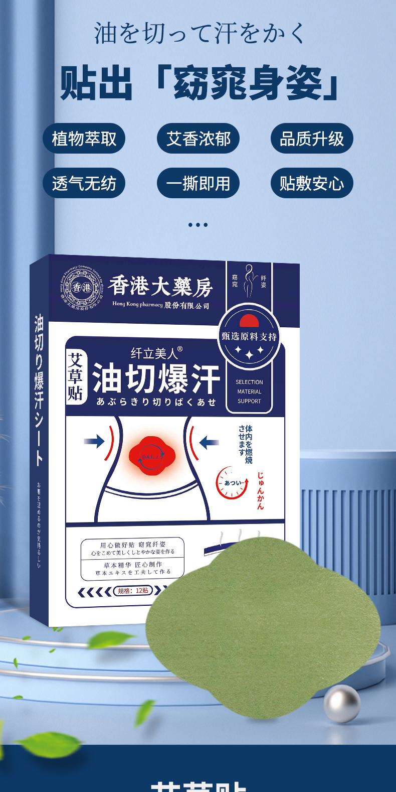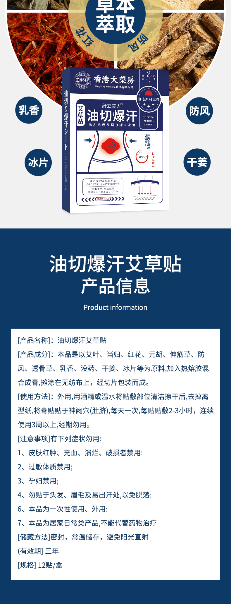 香港大药房油切暴汗贴 祛湿 贴去湿气艾草艾灸排毒排体内湿寒 12贴/盒