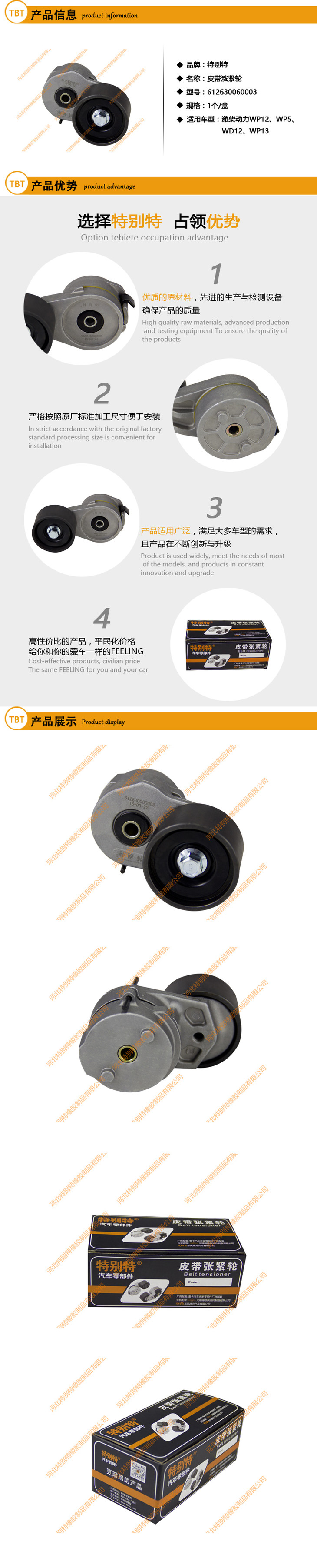 潍柴WP12皮带张紧编码:612630060003(0837)(适用10pk1451/101451)WP5、WD12、WP13皮带张紧轮/欧曼375马力、德龙375马力张紧轮/皮带涨紧轮(0003)