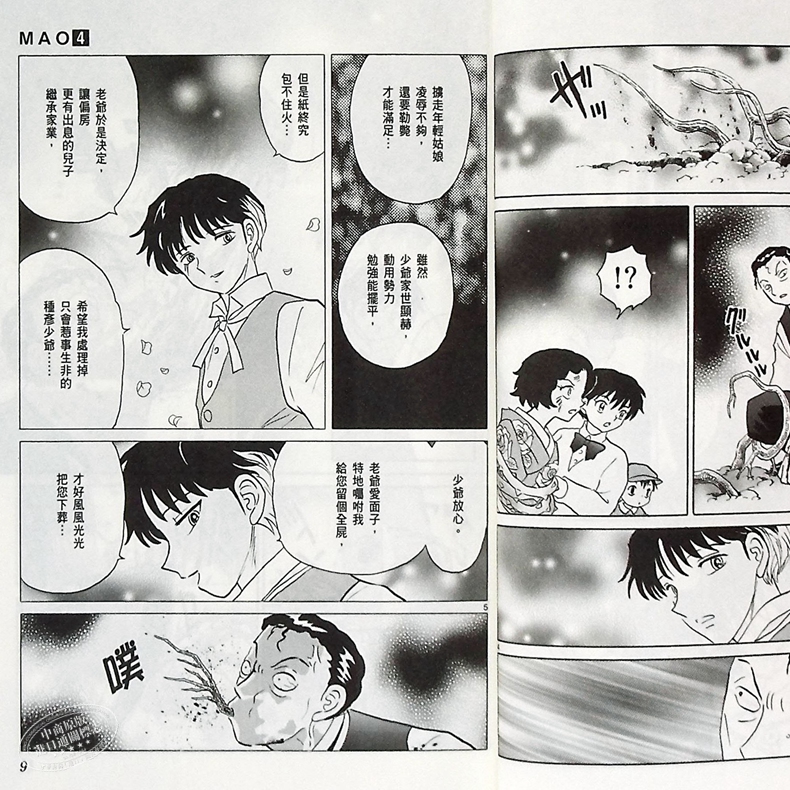 是湧太與真魚;解開貓鬼詛咒的主題,也與奈落、人魚肉的構圖相似,因此,身為