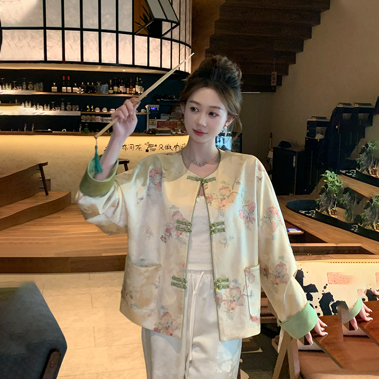 金蘑菇菇 陌上花开蝴蝶飞 / 新中式圆领提花盘扣国风外套