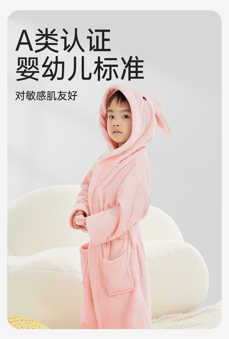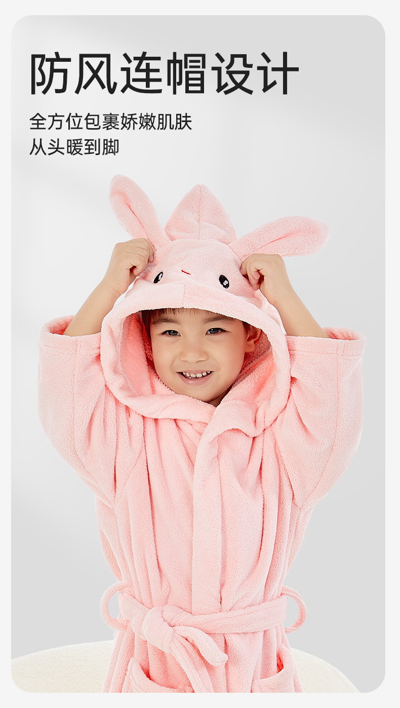 洁丽雅儿童浴袍儿童浴巾宝宝带帽斗篷浴袍裹巾可穿新生婴儿超软