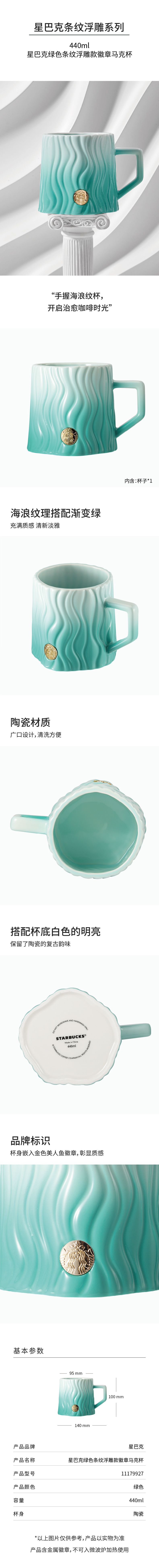 11179927 星巴克绿色条纹浮雕款徽章马克杯