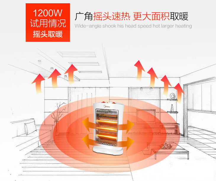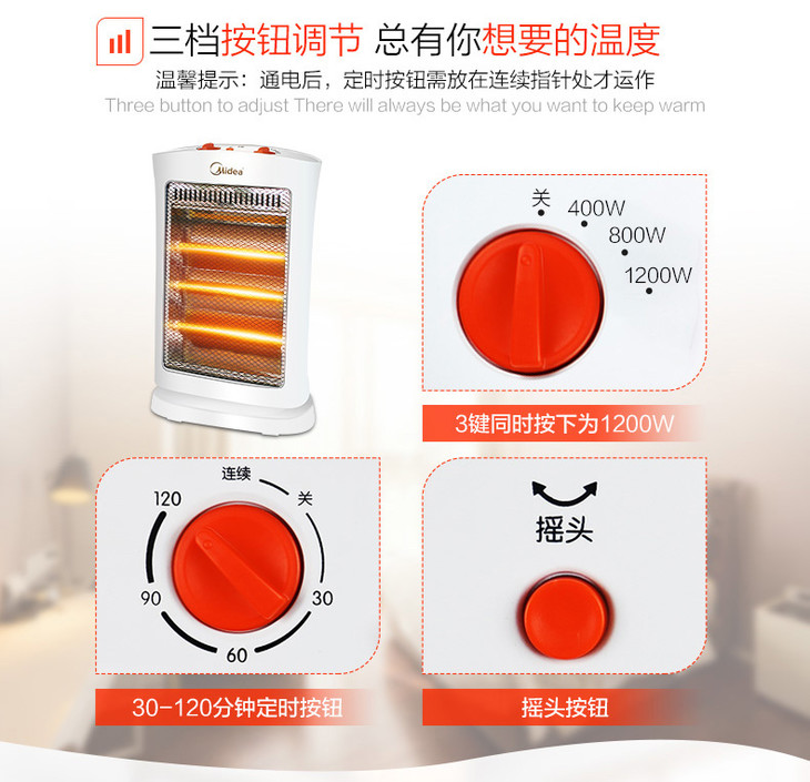 美的(Midea) 取暖器小太阳迷你暖风机家用立式摇头节能电暖气速热电暖器烤火炉 NS12-15B