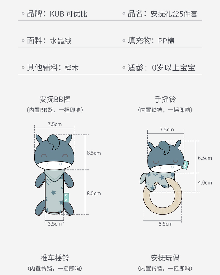 可优比安抚巾婴儿礼盒套装满月百天初生礼物可入口安抚玩偶礼盒