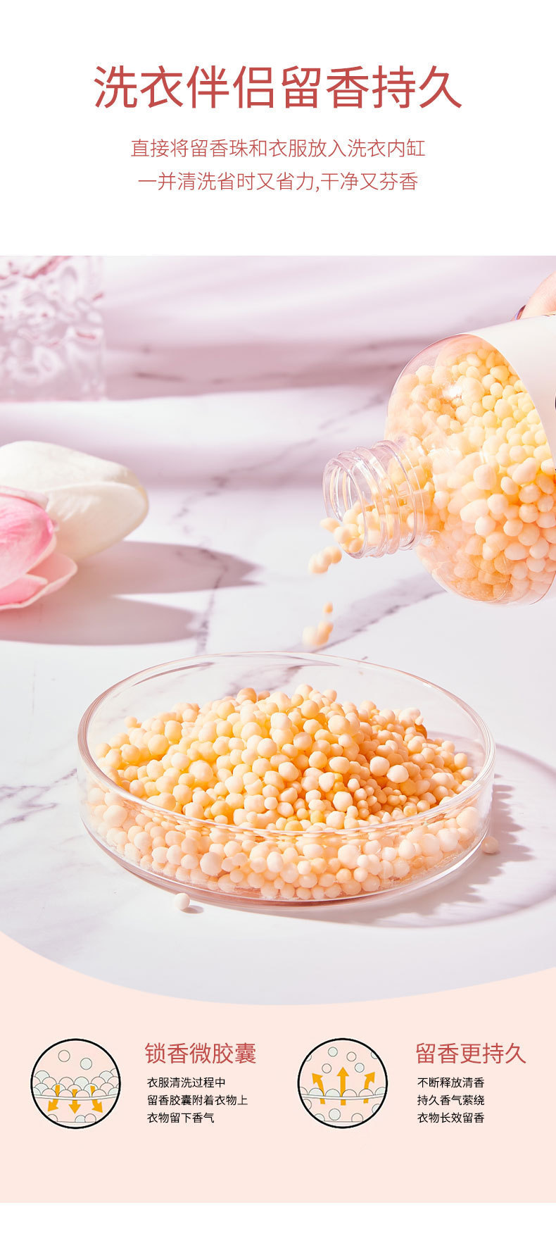 【随时随地,自带女神香】家用衣物护色护衣持久柔顺剂颗粒,其独特的香氛配方能够持久留香,让您的衣物散发出迷人的香气lm