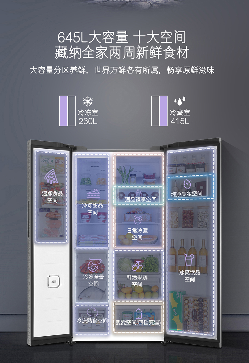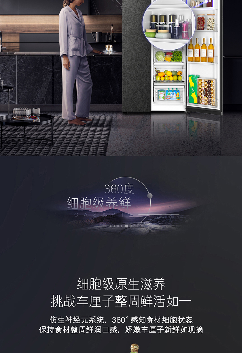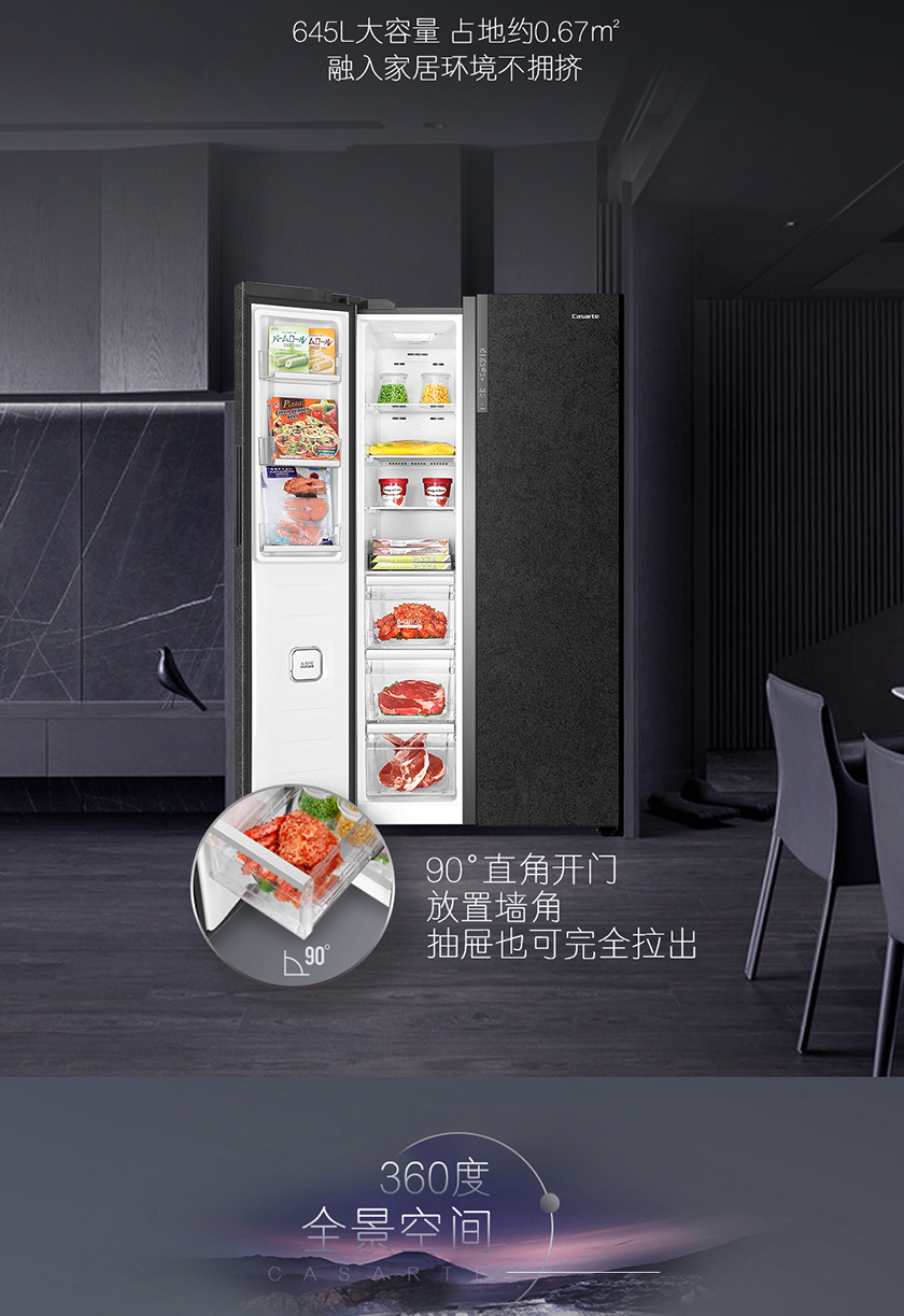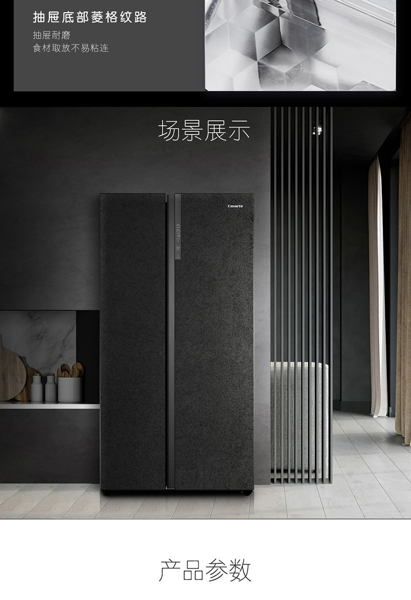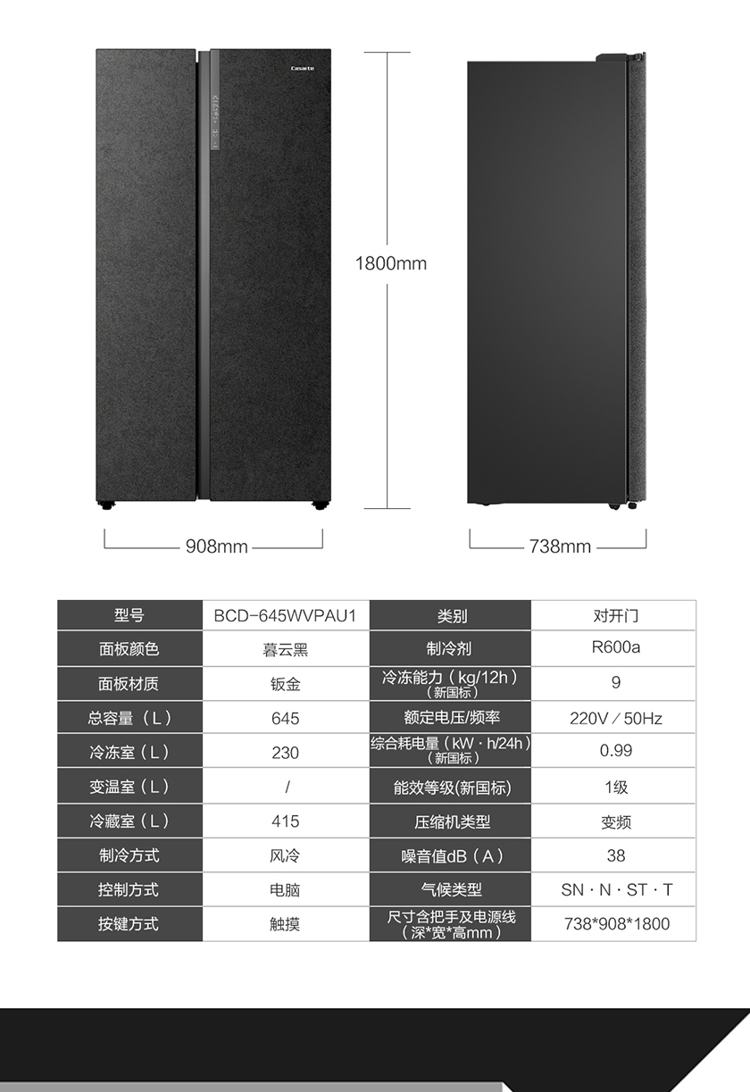 【品牌特价】卡萨帝 原石系列 645升双开对开门 细胞级保鲜 家用冰箱 变频一级 超大容量 暮云黑 BCD-645WVPAU1