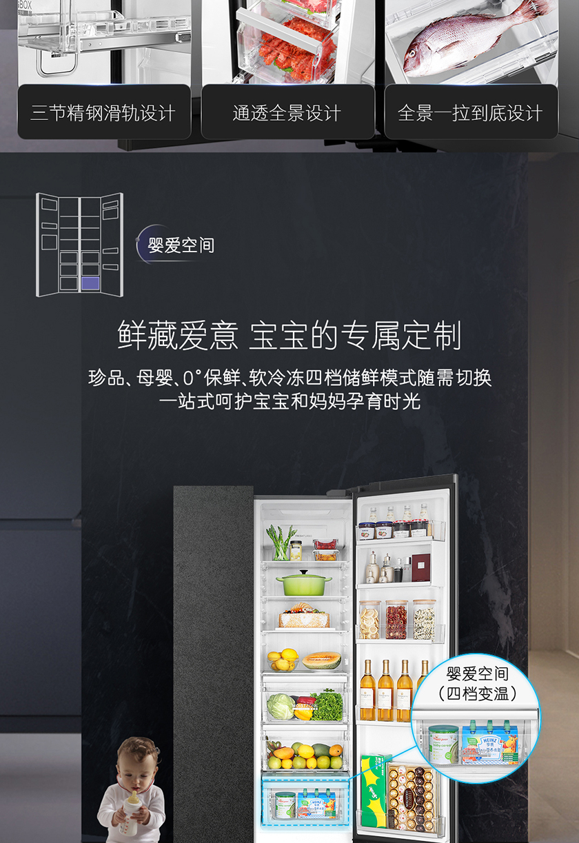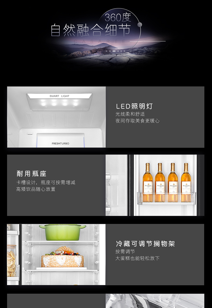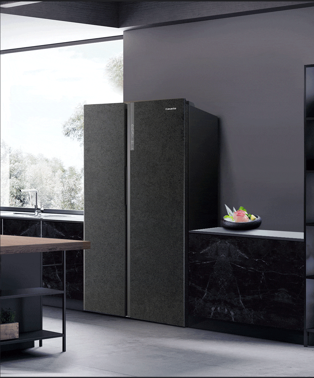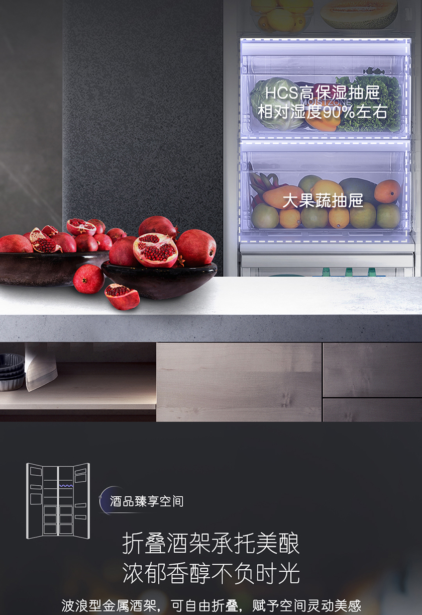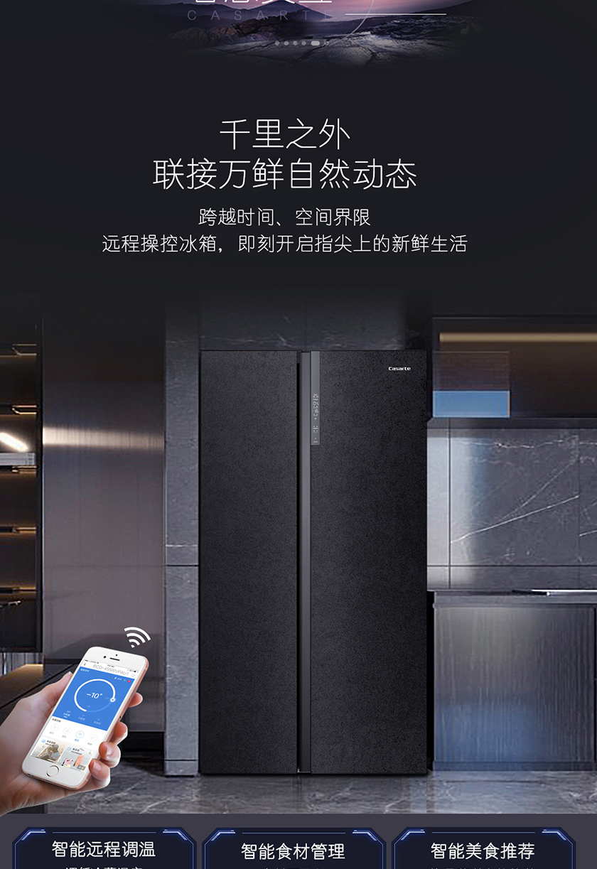 【品牌特价】卡萨帝 原石系列 645升双开对开门 细胞级保鲜 家用冰箱 变频一级 超大容量 暮云黑 BCD-645WVPAU1