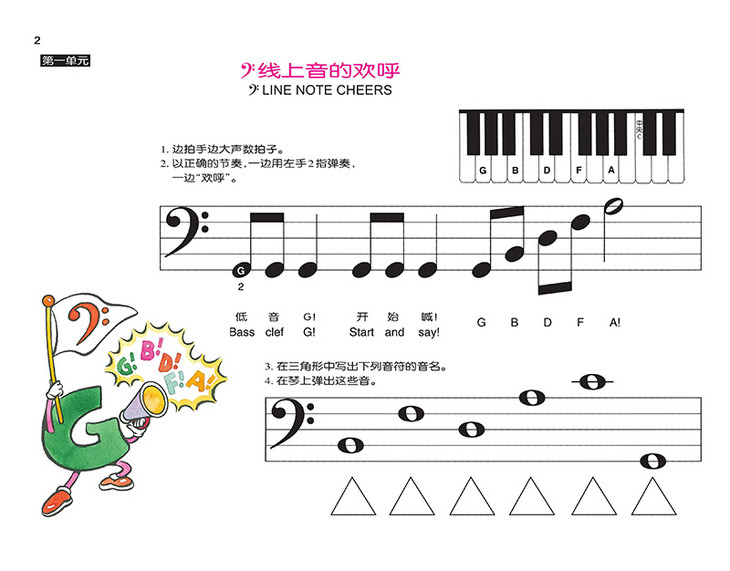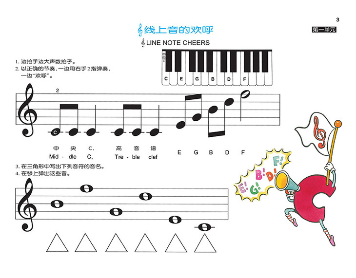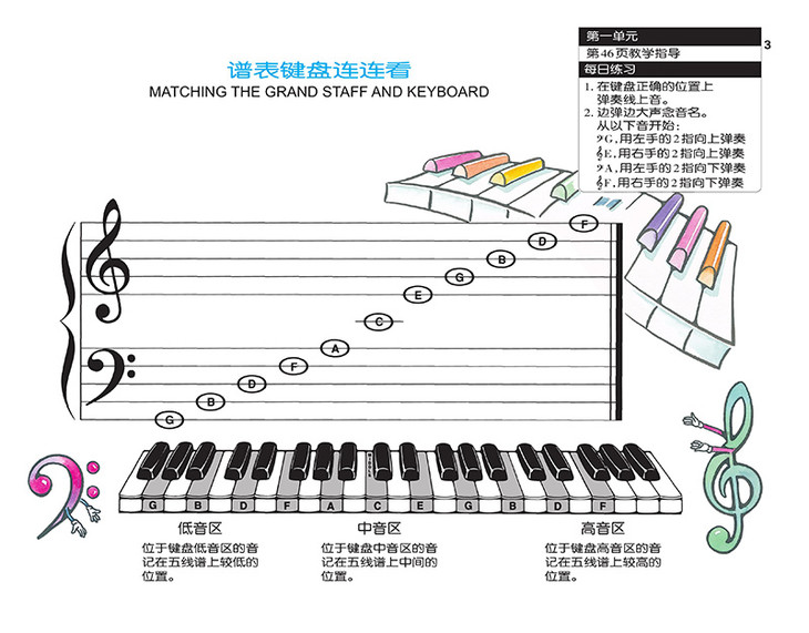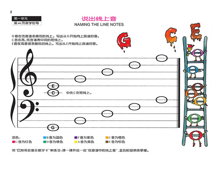 整体上来说,这是一套以音乐启蒙为目标编著的钢琴教程,而在音乐启蒙教育这一领域,这套教程可以说把巴斯蒂安家族独特的教育理念体现得淋漓尽致。与当前大多数“就音乐论音乐”的钢琴启蒙教程不同,它所运用的是一种从综合早教的背景下激发孩子兴趣,并逐渐过度到音乐学习的引入式教学法。因此,这套教程一开始的内容是通过填色、绘画等游戏方式从认数字、认字母等方面,学习这些未来会演变为指法、音名等音乐元素的内容,从而解决了低领孩子对专业术语和概念难以理解的难题。