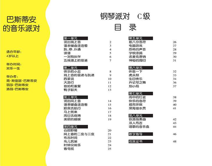 当前国内主流的低幼钢琴教程以引进版图书为主,这些图书的优势在于它们能把在国外起步较早、经过长期教学实践总结出的教学经验快速带给国内琴童,不过也有钢琴教师认为缺乏教学指导的教材在使用上有些困难,当前这套《巴斯蒂安的音乐派对》可谓漂亮地攻克了这一难题,它大量使用了文献著作的交互参照编著法,每一课的内容都配有简明实用的教学指导,它们既是对课程要点的提示,也是对琴童家长的帮助,在这样一种系统、精密的设计下,相信这套教程一定能使国内低幼琴童受益良多。